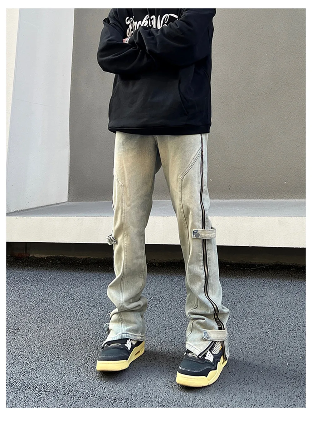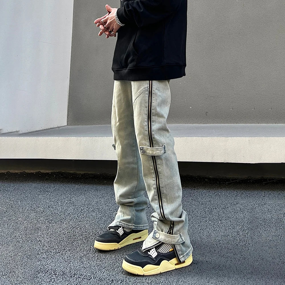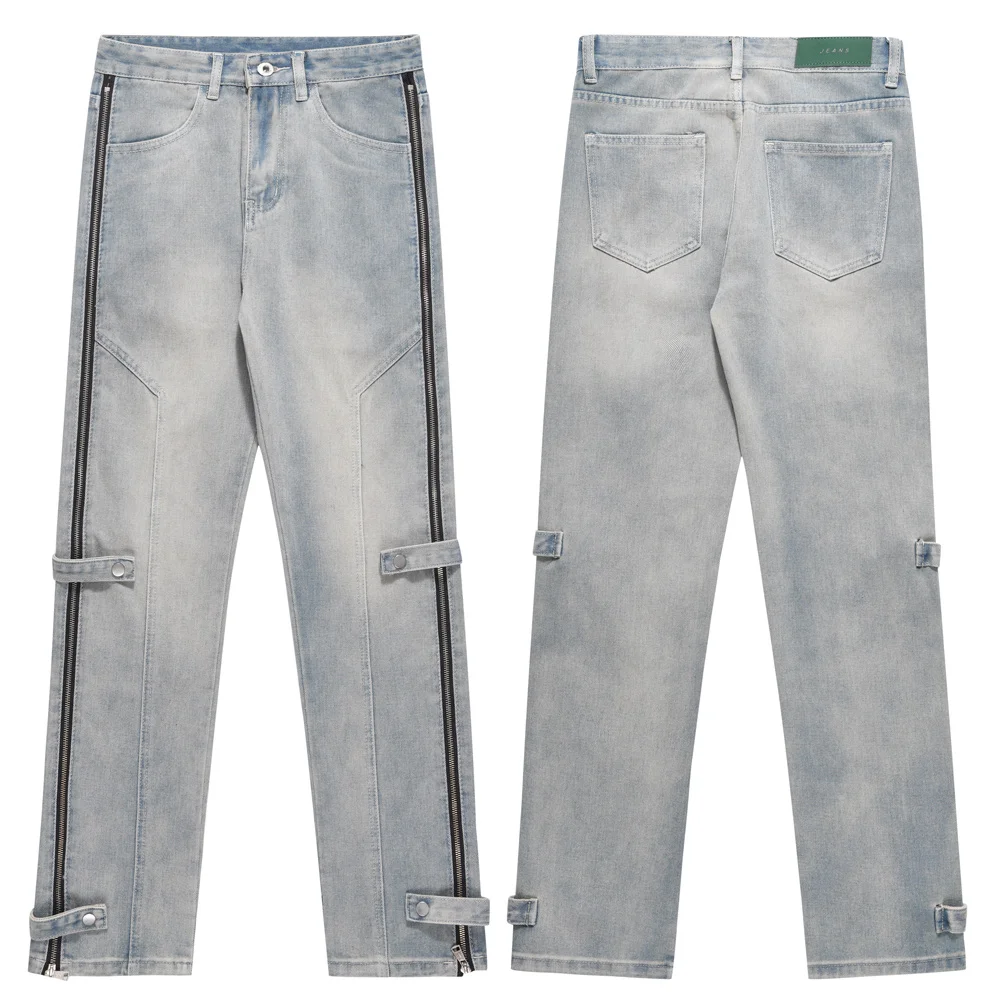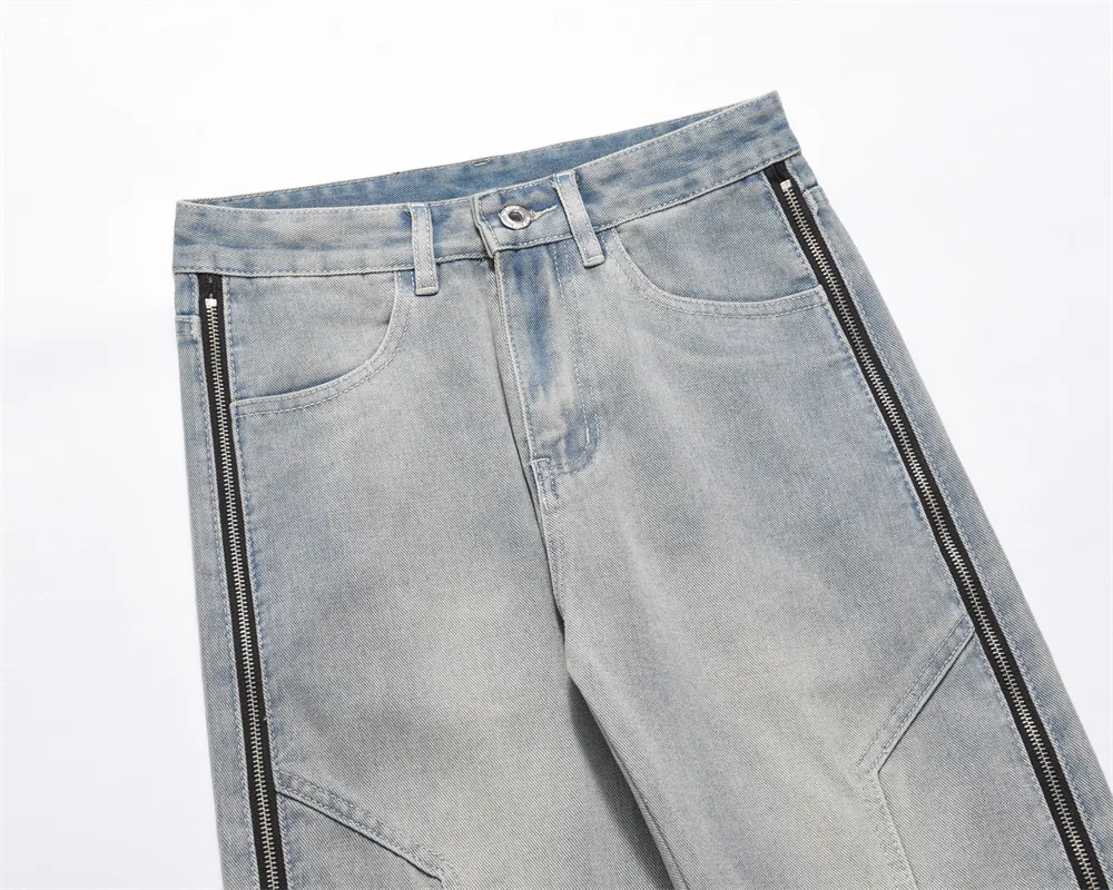 saferido Half Fake Zippers Jeans Men Slim Street Funny Punk Hip Hop Streetwear Denim Pants Summer Fashion Spliced Vintage Y2k Trousers