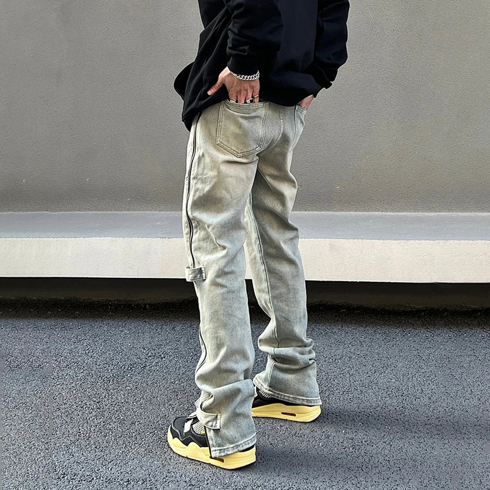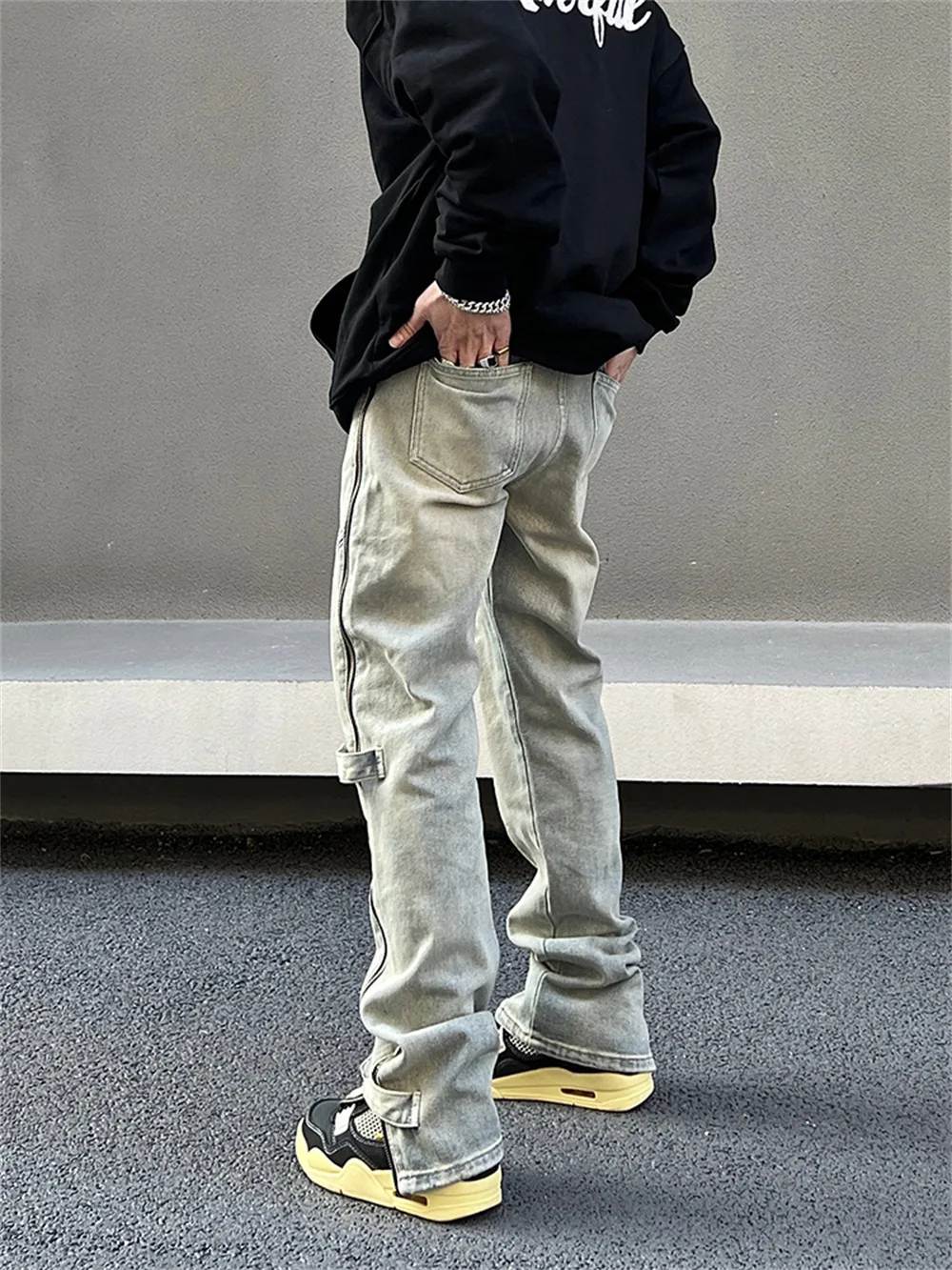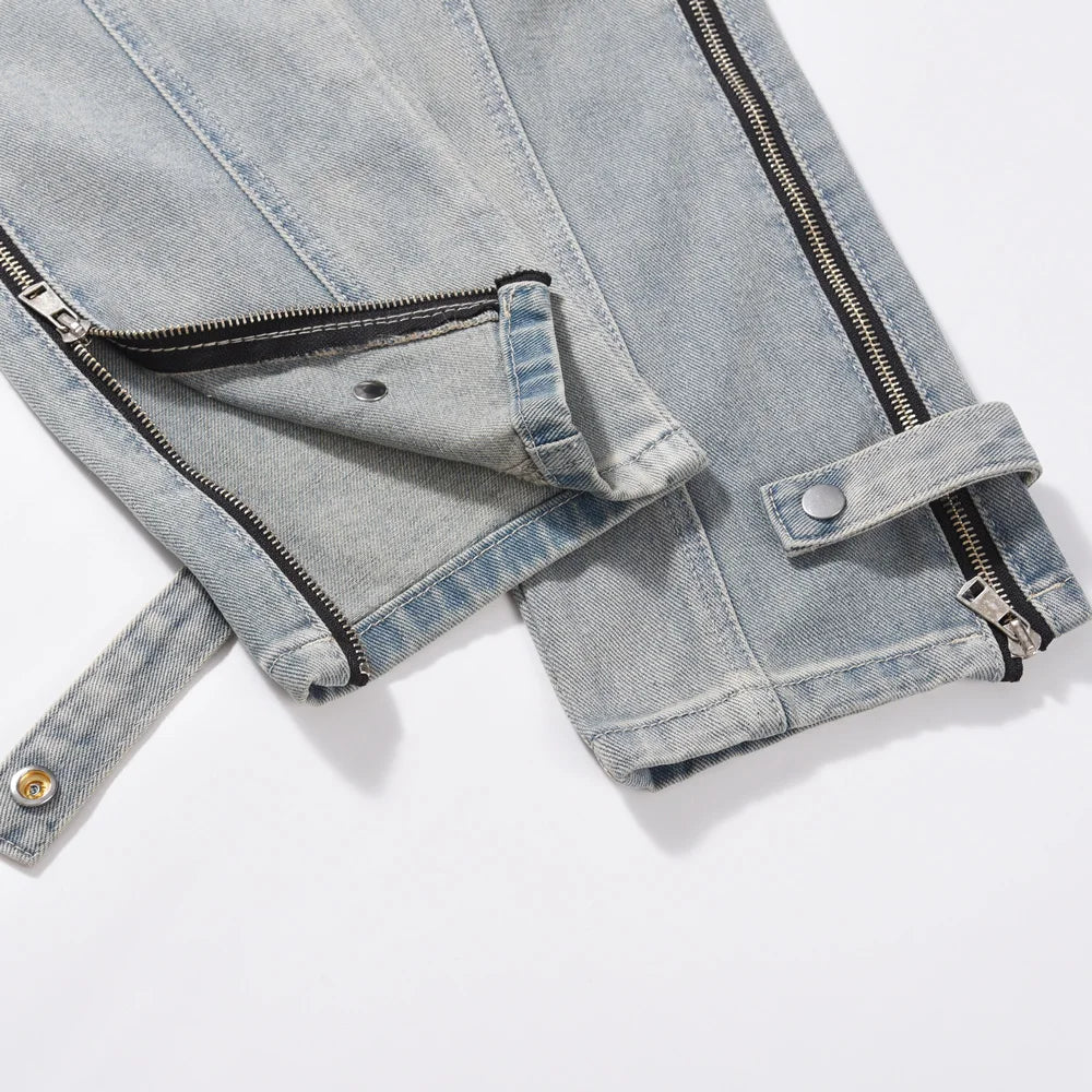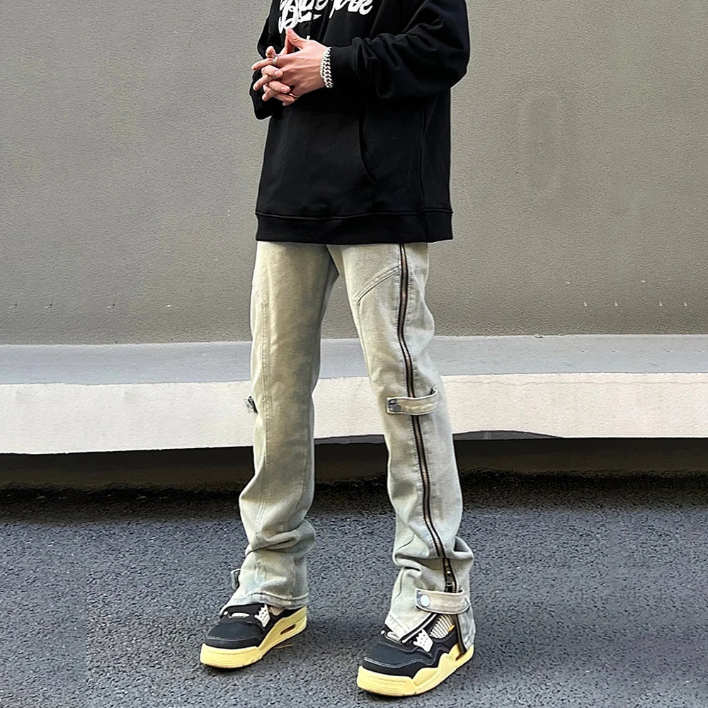 saferido Half Fake Zippers Jeans Men Slim Street Funny Punk Hip Hop Streetwear Denim Pants Summer Fashion Spliced Vintage Y2k Trousers