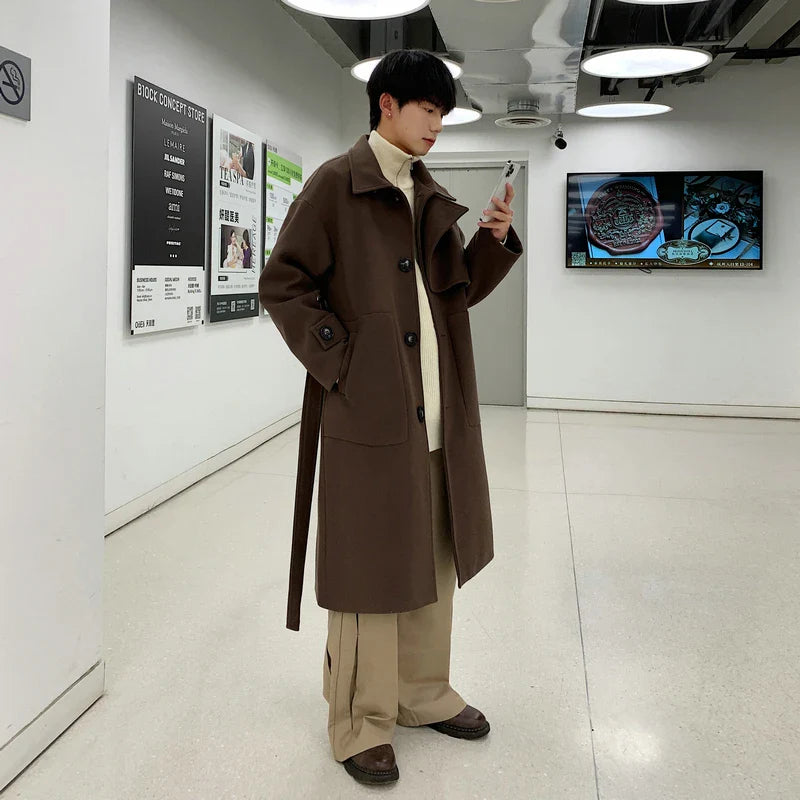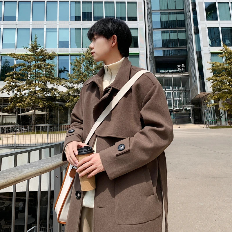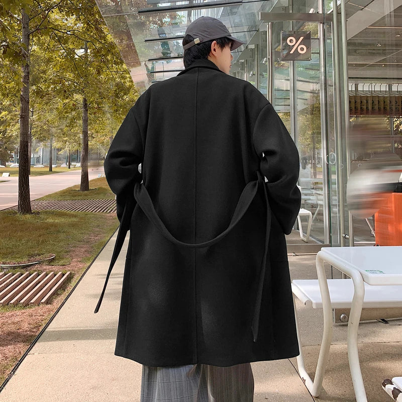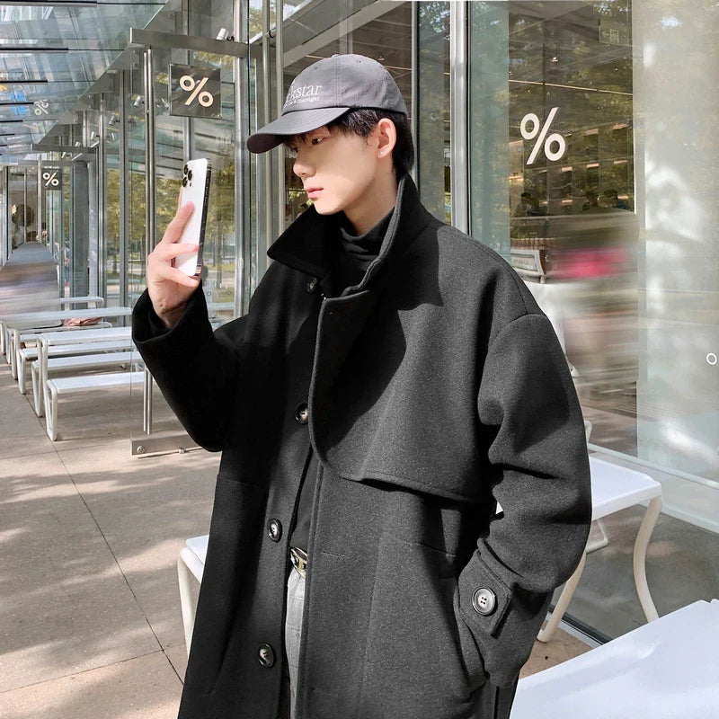 saferido Harajuku Streetwear Men Windbreaker Warm Casual Vintage Jackets Coats Winter Korean Fashion Woolen Long Trench Coat