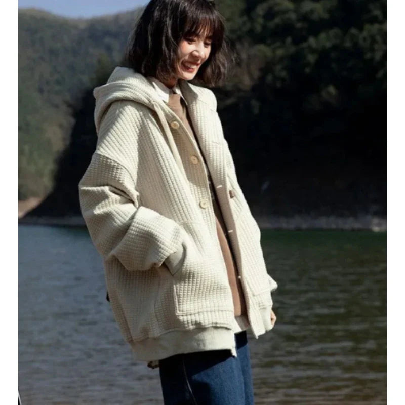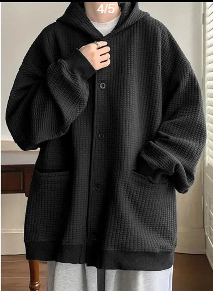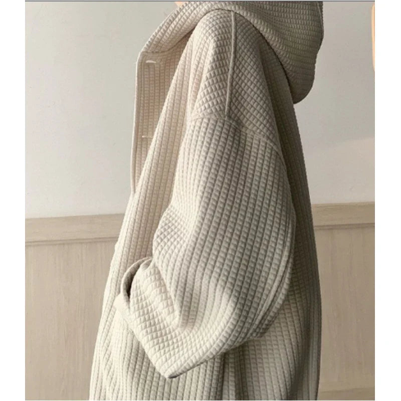 saferido High Quality Men's Waffle Sweatshirt Korea Version Hooded Couple Coat Ins Hop Thickened Harajuku Men Women Jacket Oversize M-3XL