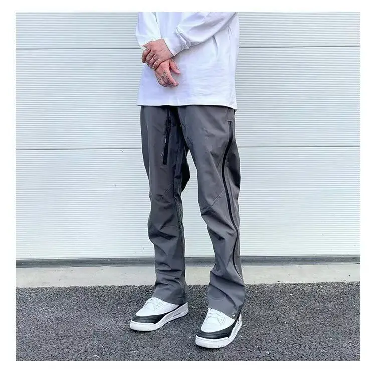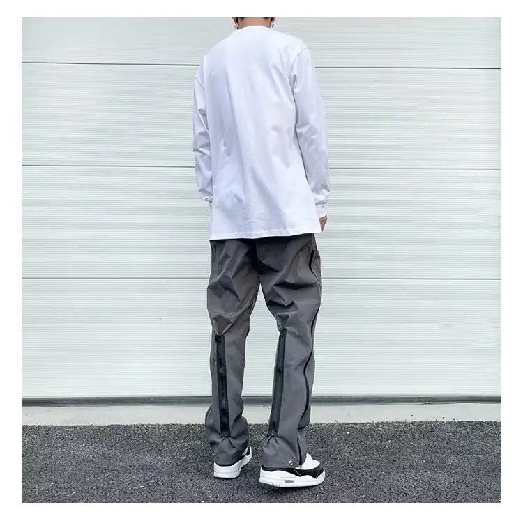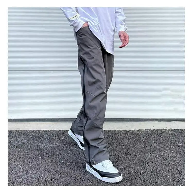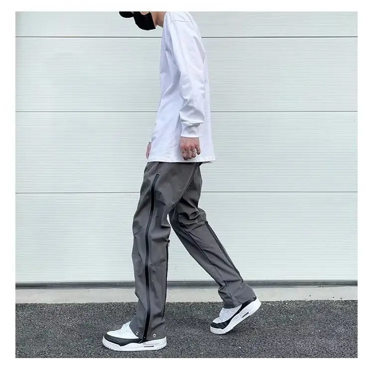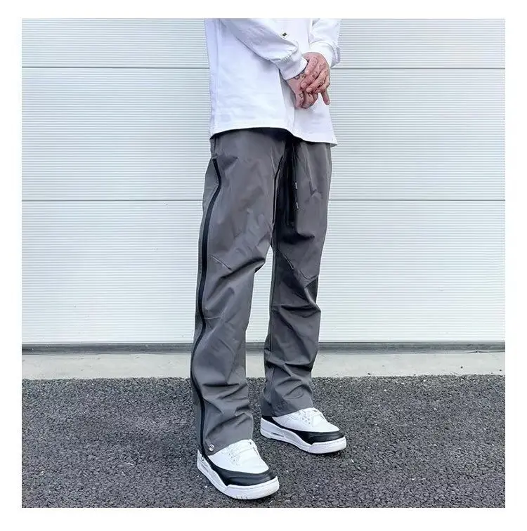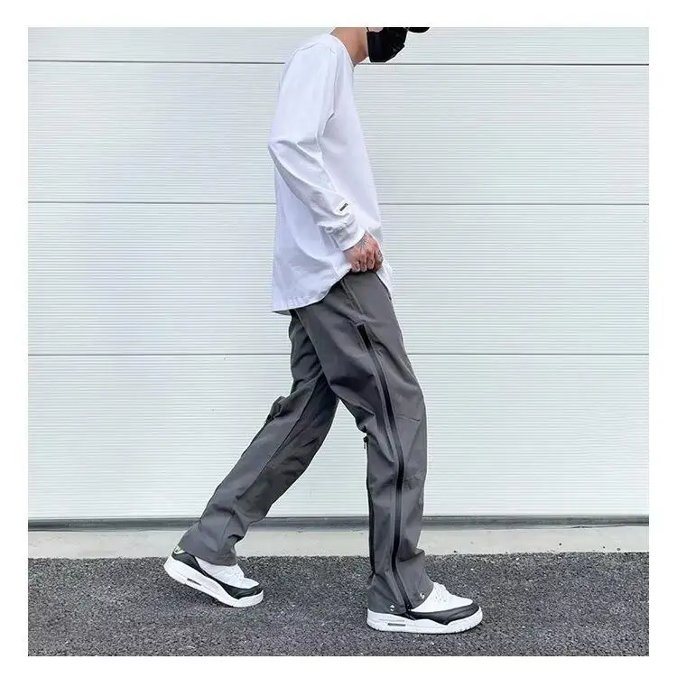 saferido High Street Korean Style Loose Open Casual Pants Men's Zipper Casual Straight Tube Waterproof Charge Pants