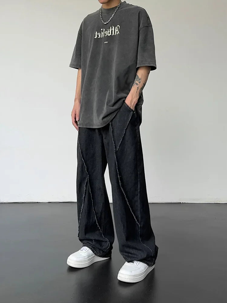 saferido Hip Hop Distressed Shabby Jeans Pants Men Ripped Patchwork Denim Trousers Male Oversize Loose Japanese Streetwear 5XL