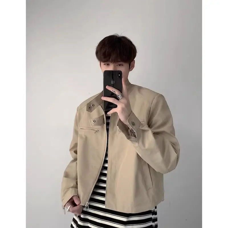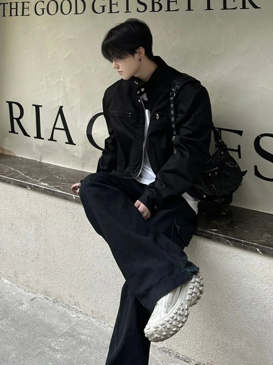 saferido Hip Hop Y2k American Retro Cargo Bomber Jacket Spring Autumn Thin Coat Cropped Casual Solid Outerwear Streetwear