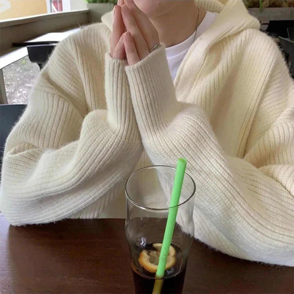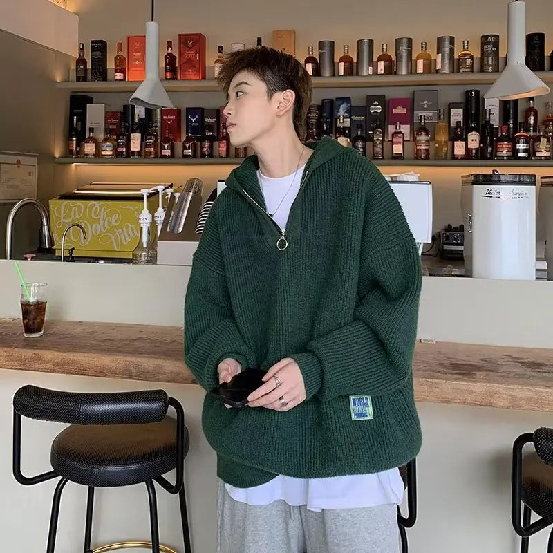 saferido Hooded Sweater Coat American Vintage Sweater Casual Knitted Sweaters Men Pullover Jumpers Men Fashion Clothing Streetwear Tops