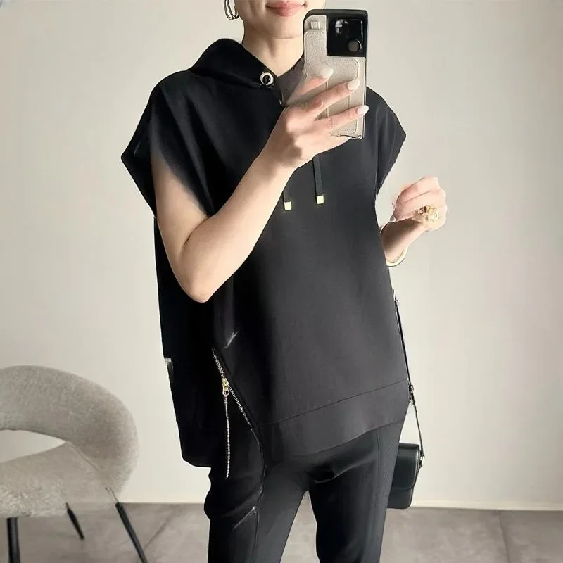 • Japanese Summer Collection :This hooded side zipper short sleeve top is part of the Japanese 2024 Summer Collection, offering a trendy and fresh look for the season.