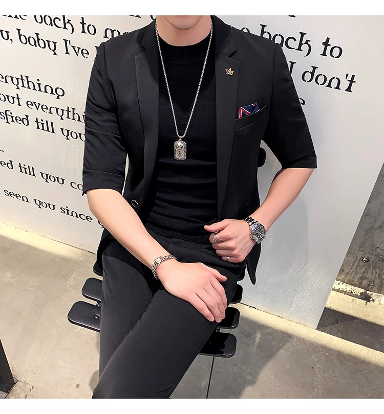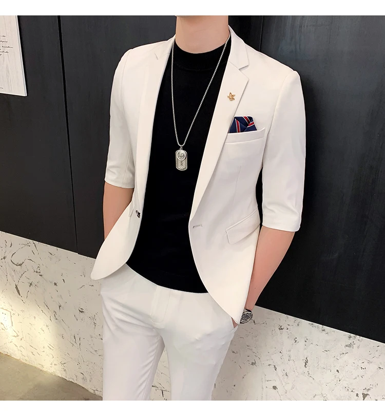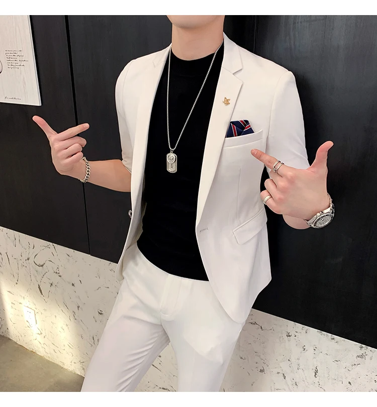 saferido (Jackt+Pant) 2 Pcs Set Men Suits Half Sleeve Spring Summer Slim British Short Sleeve Blazer Coat Trend Male Designer Tuxedo