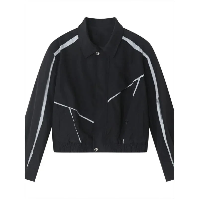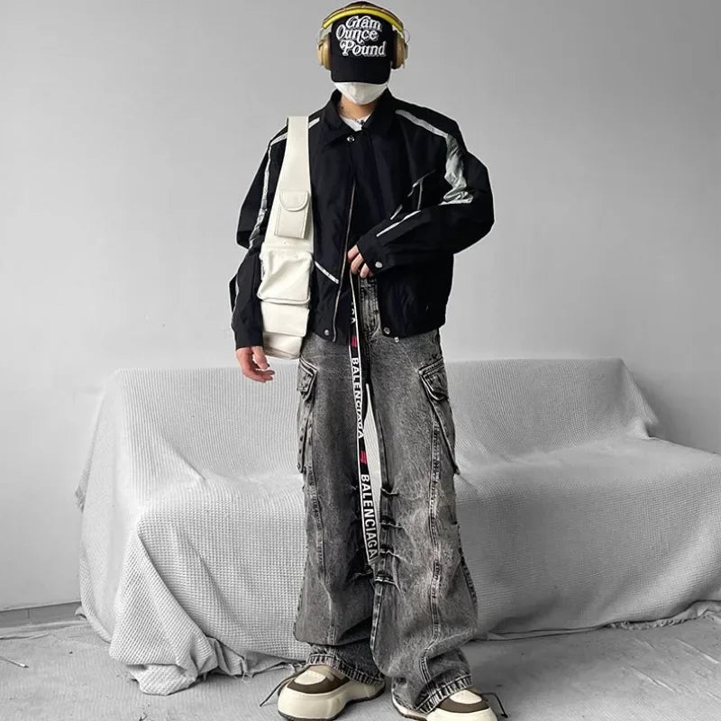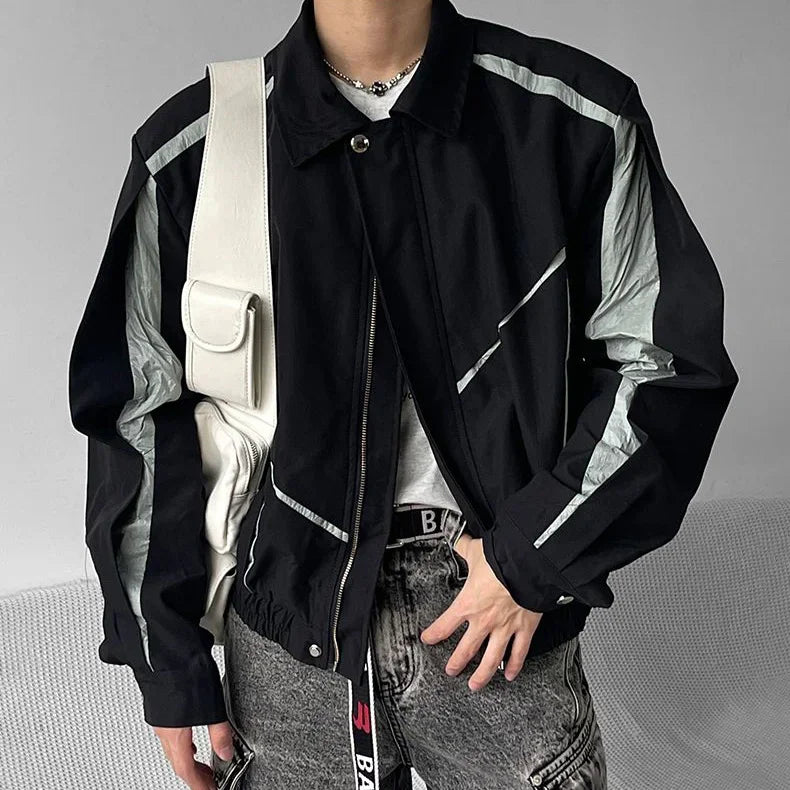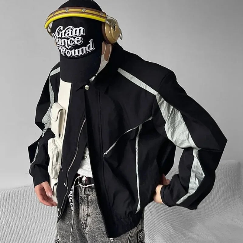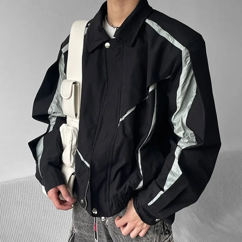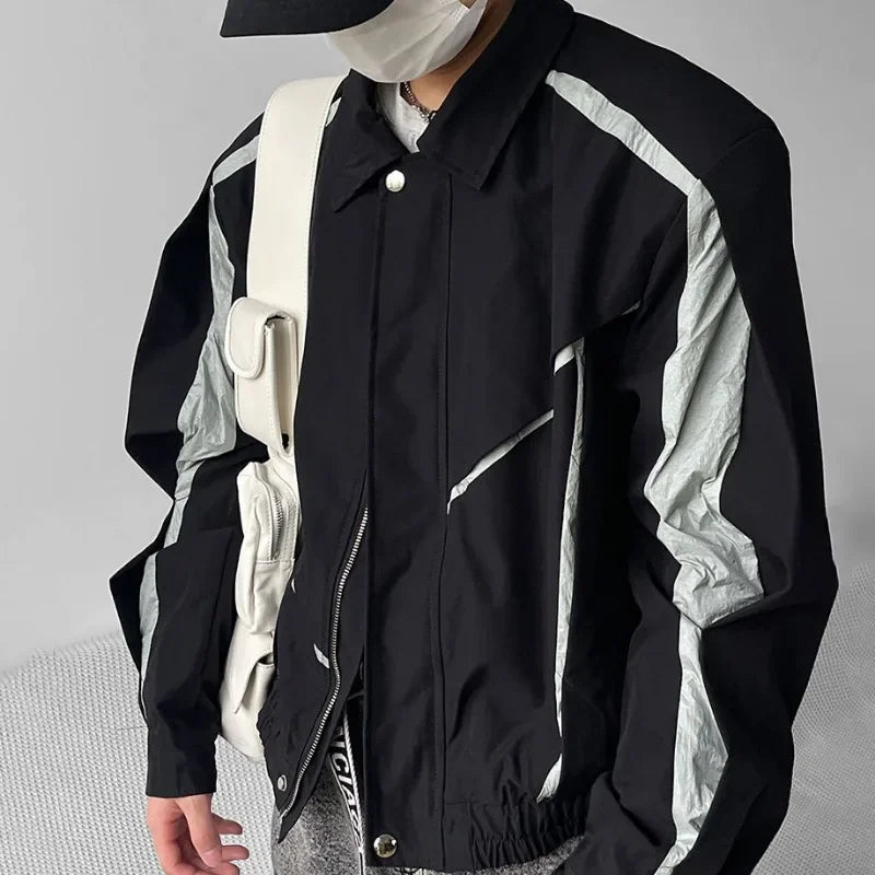 saferido Japanese Niche Patchwork Jacket Autumn Thin Lapel Zippered Coats for Men Loose High Streetwear Black Couple Motorcycle Outwear