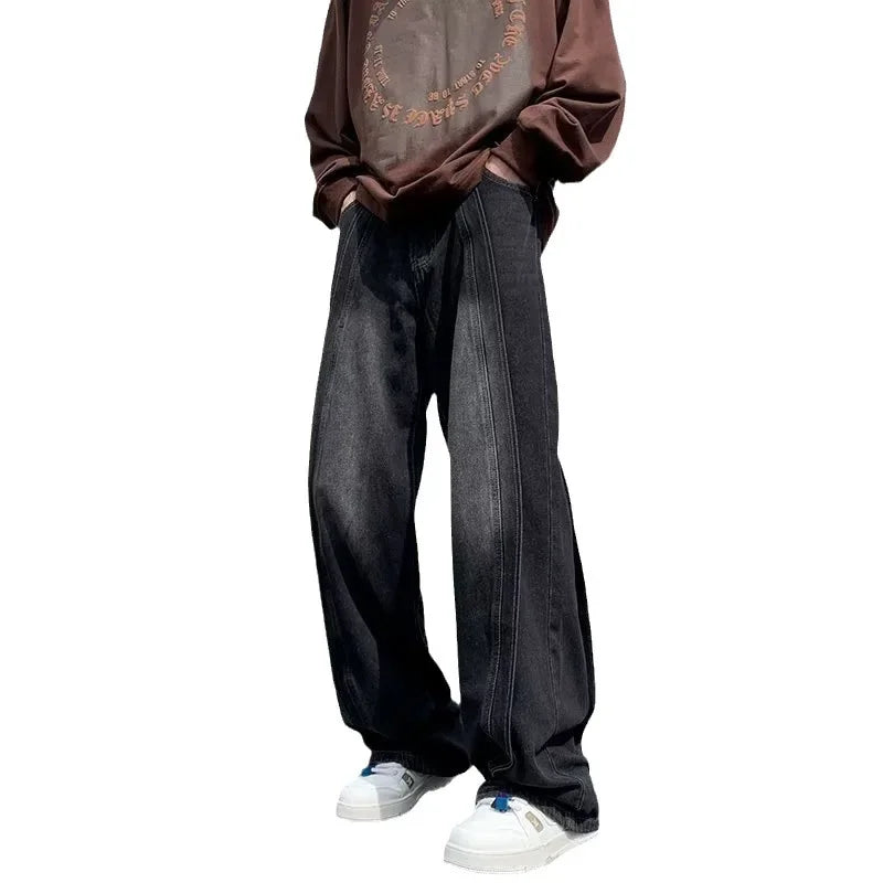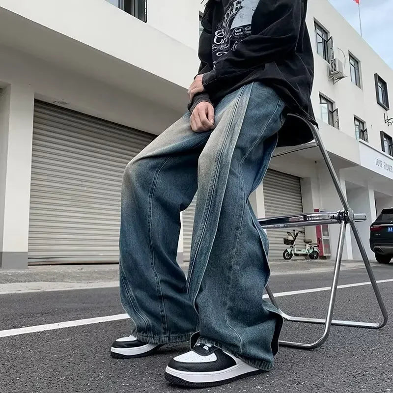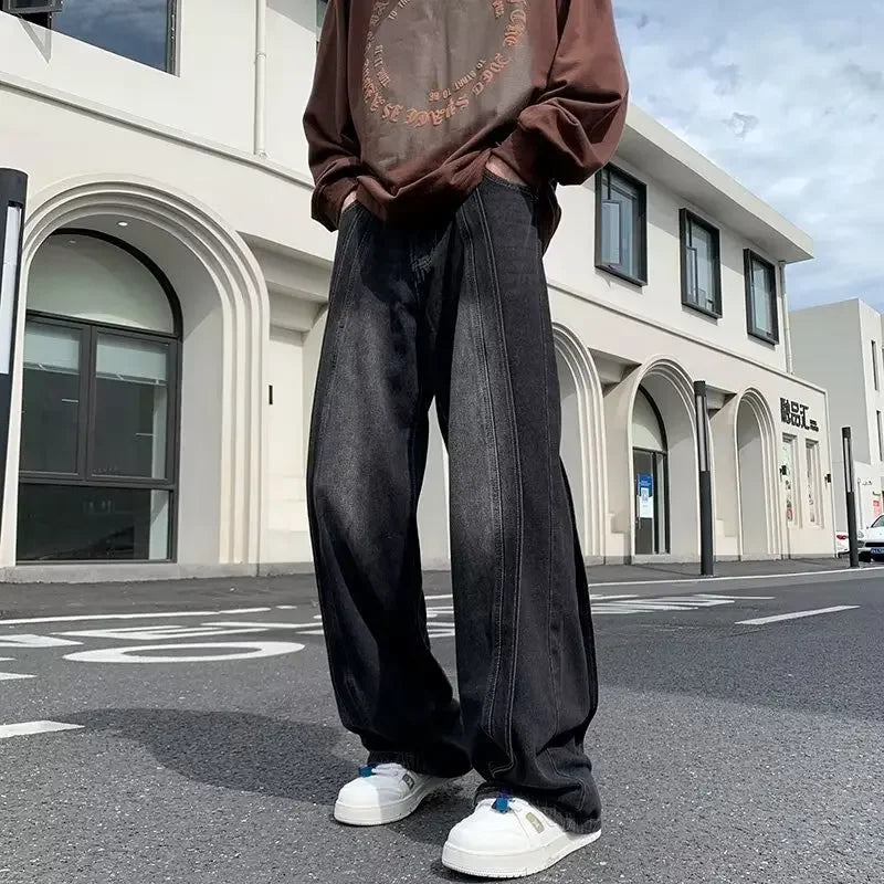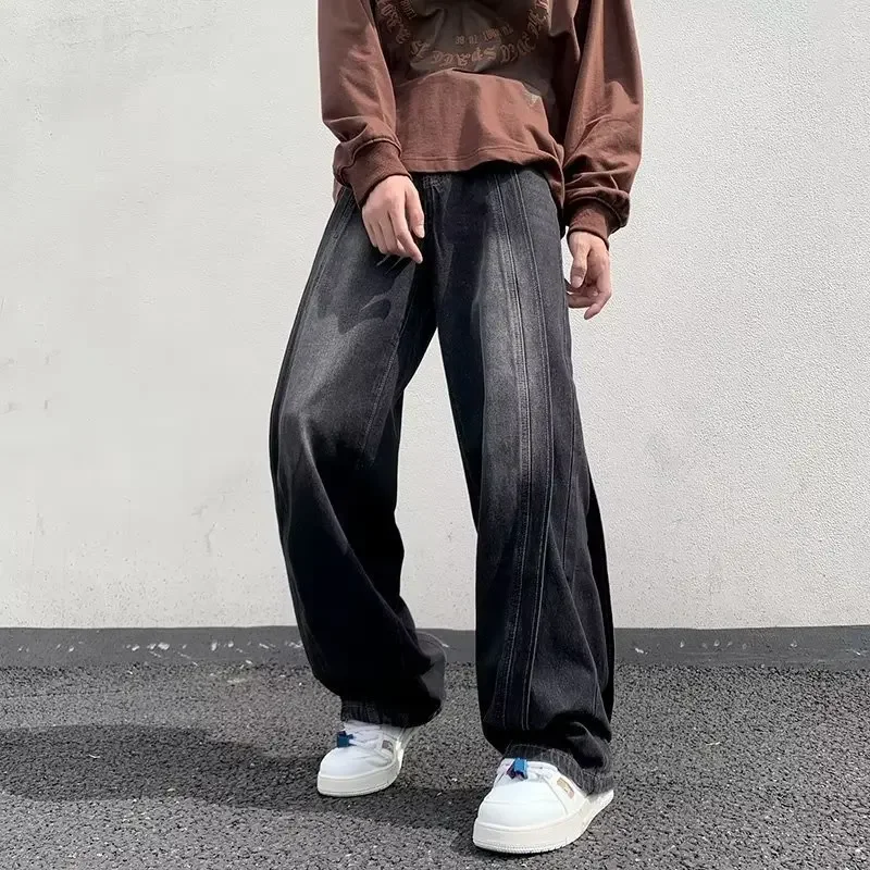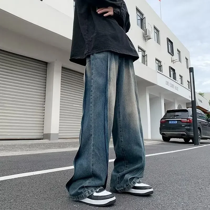 saferido Japanese Style Patchwork Jeans Men's Straight Tube Loose Casual Long Pants Korean Version Large Size Autumn and Winter New Style