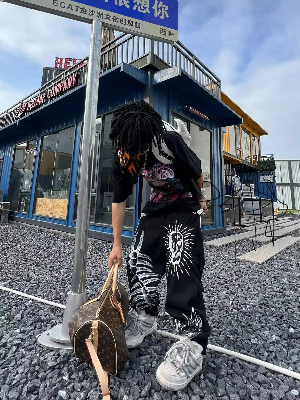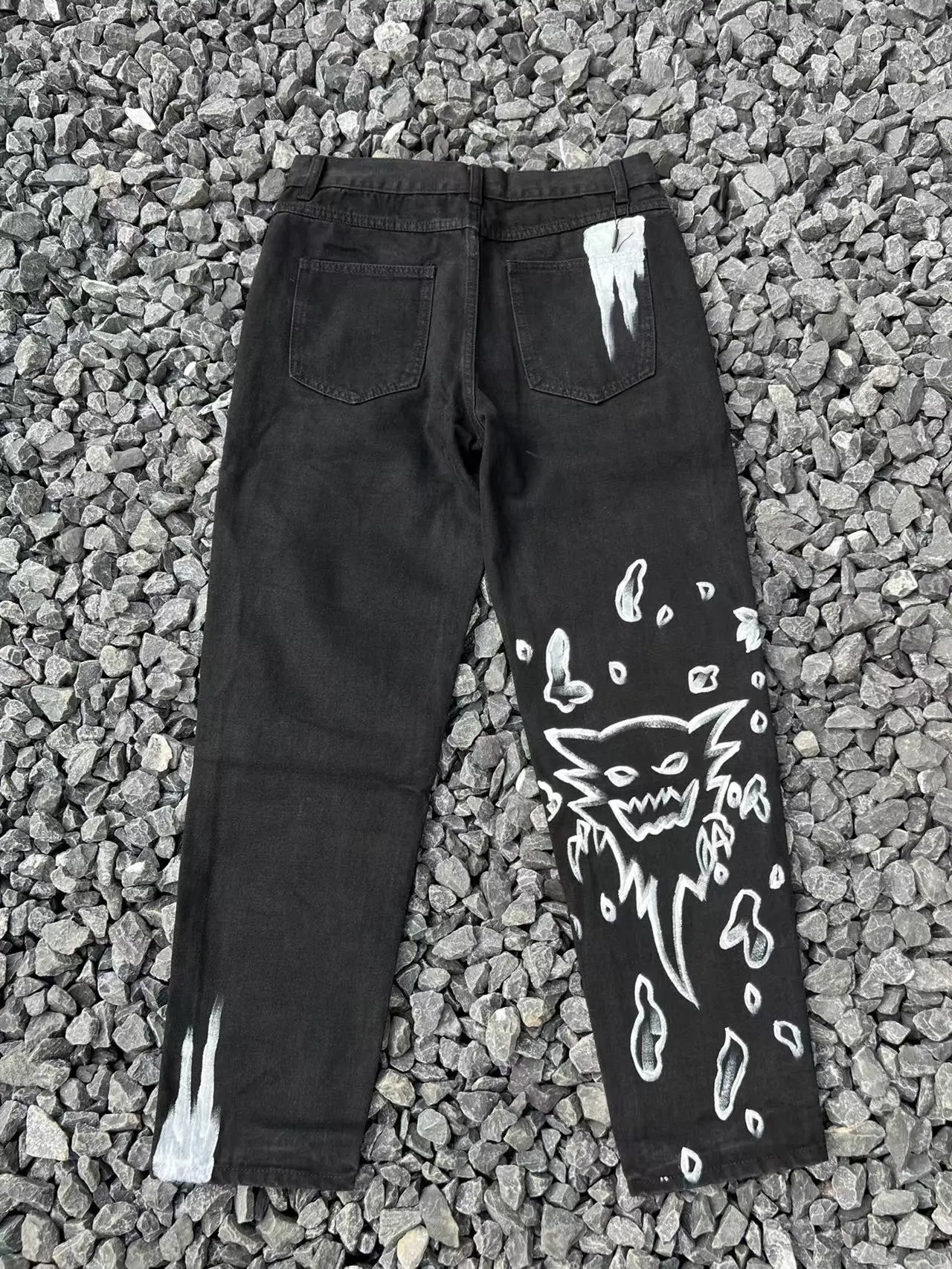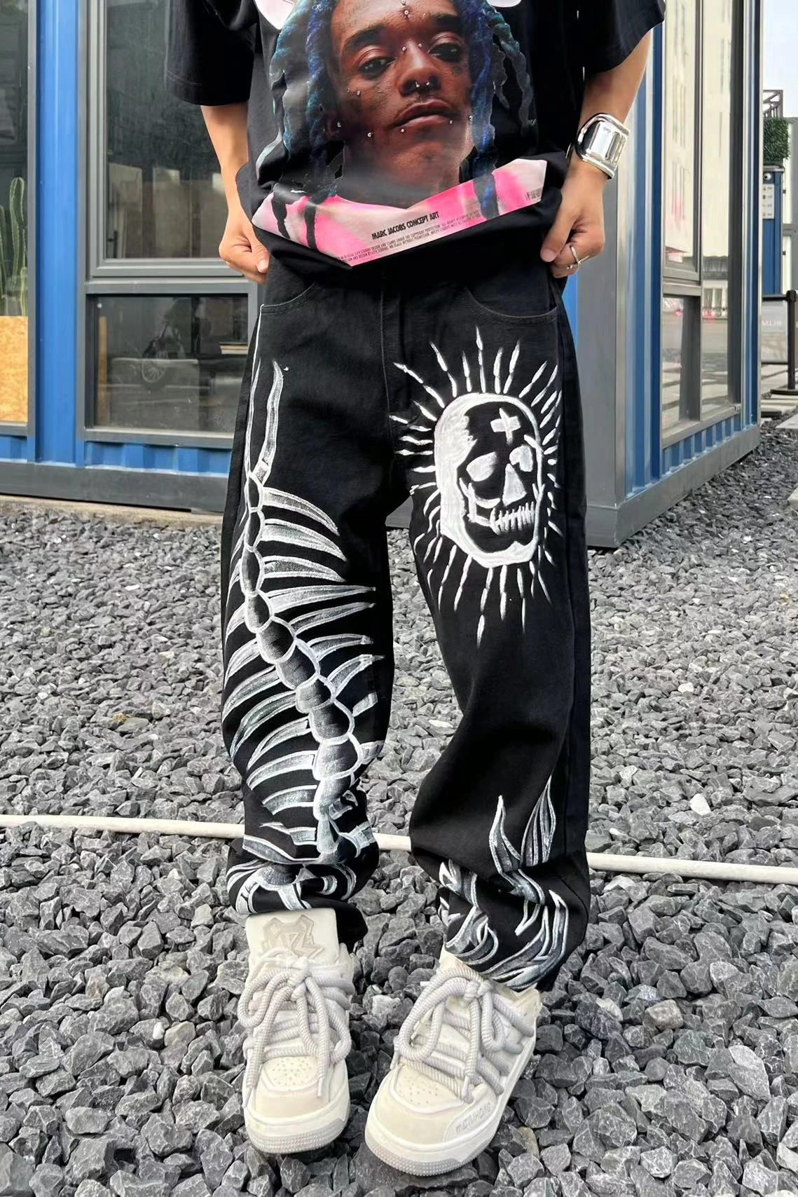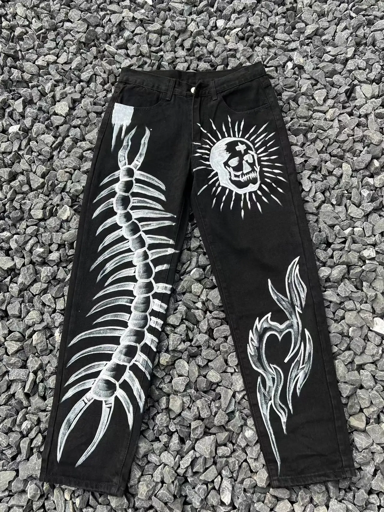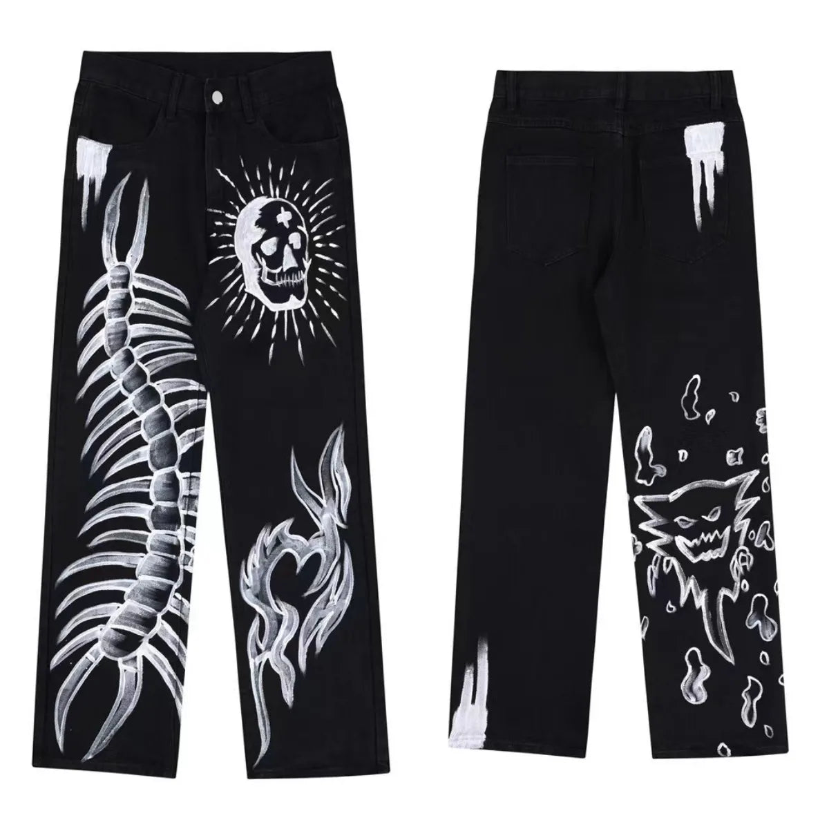 saferido Jeans With Print Straight Baggy Punk Men's Fashion Harajuku Pants Printed Oversize Streetwear Y2k Black Trendyol Hip Hop Man