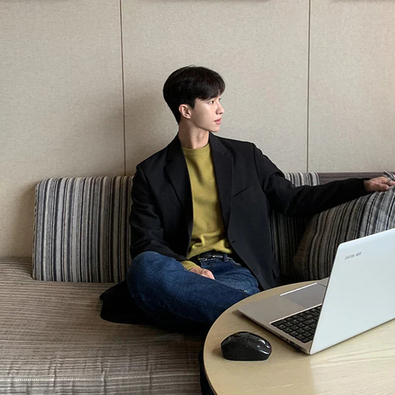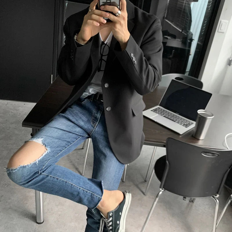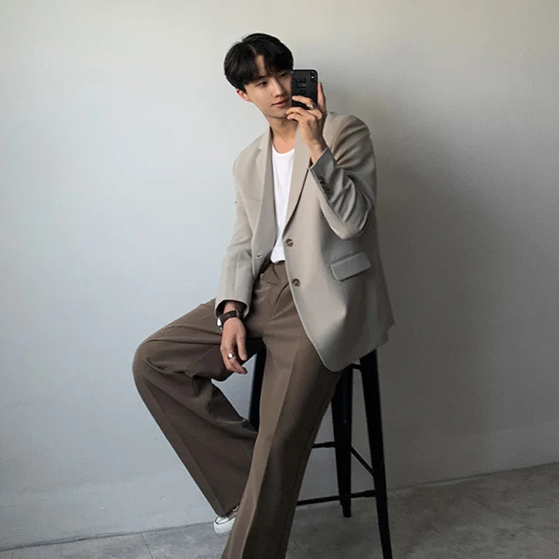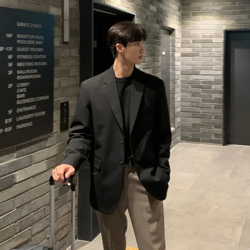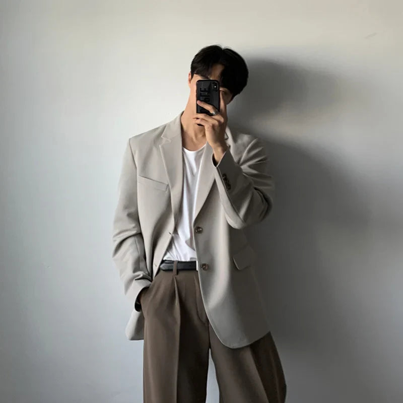 saferido Korean Casual Notched Collar Blazers Men Autumn Loose Solid Color Single Breasted Suit Jackets Office Popular Interview Suits