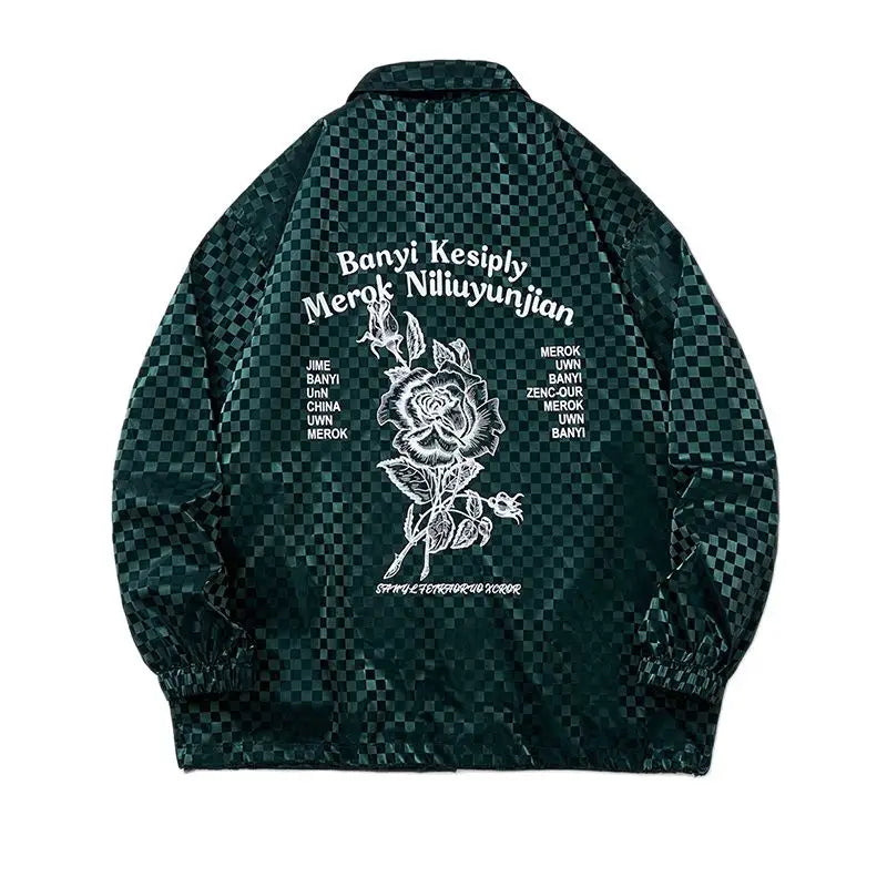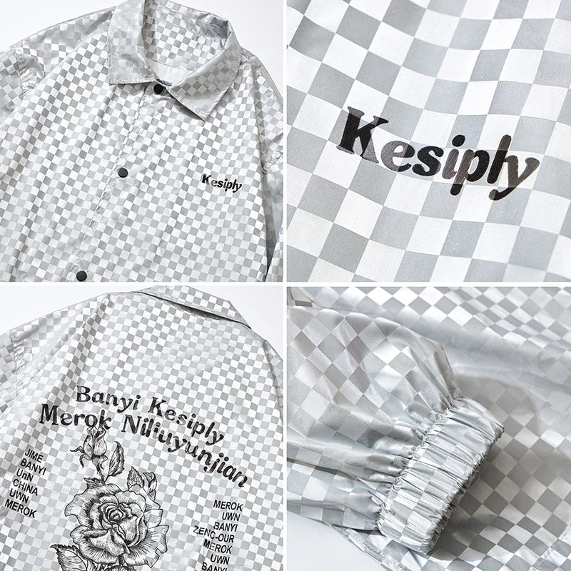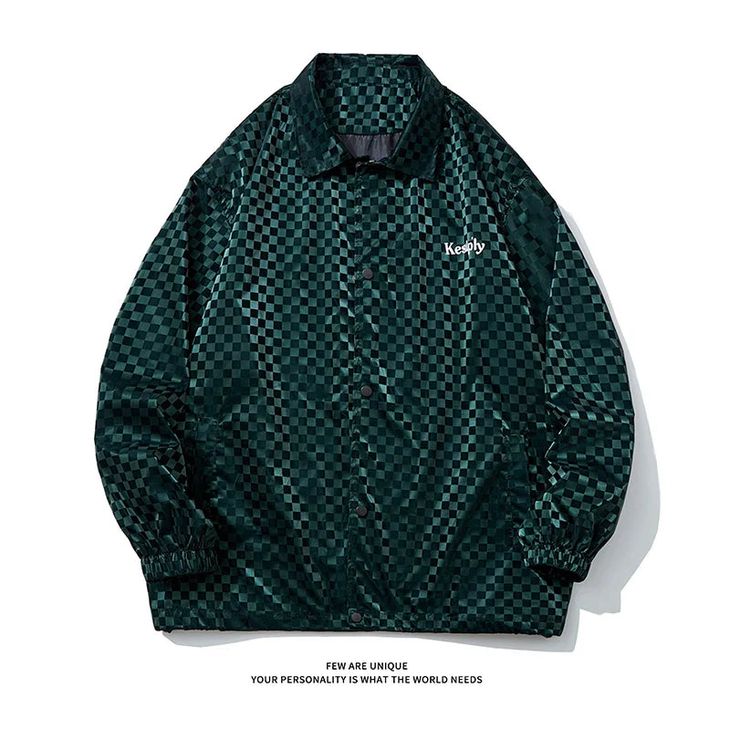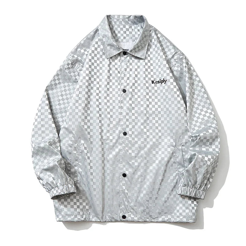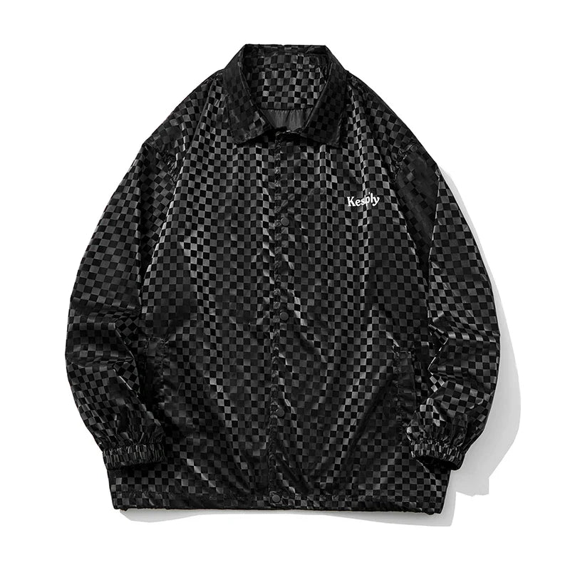 saferido Korean Checkerboard Pattern Jackets Quilted Embroidered Jacket Men Women Button Closure Coat Lightweight Windproof Jackets Teens