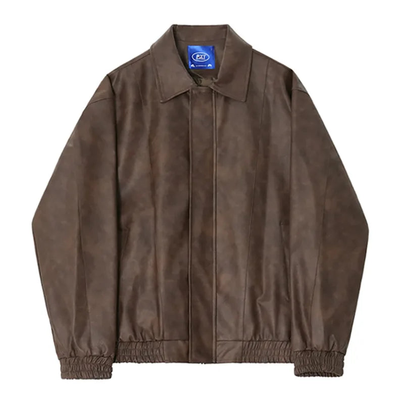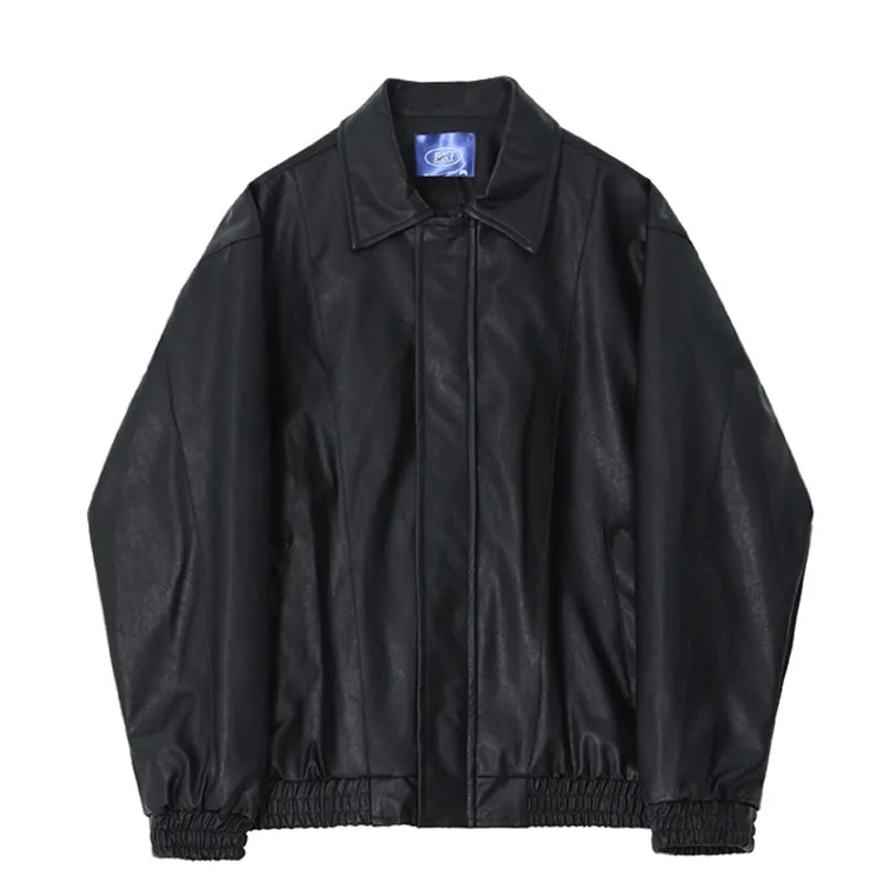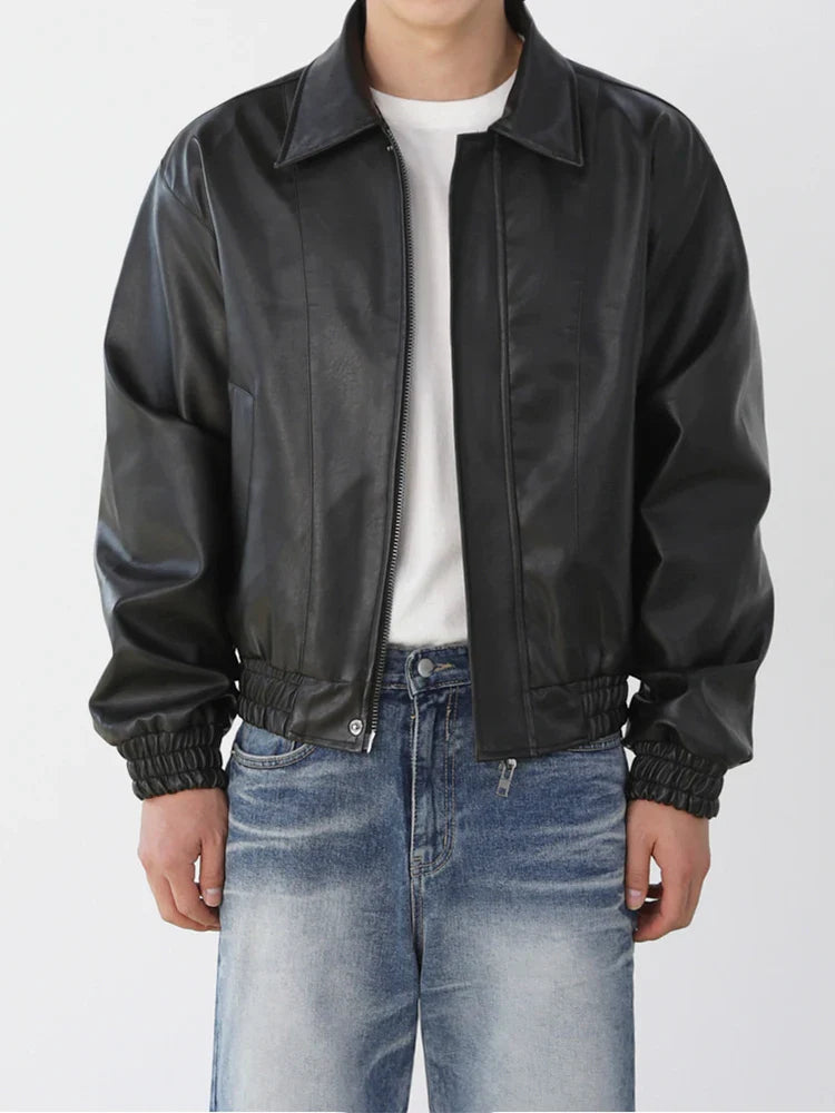 saferido Korean Men PU Leather Jackets High Street Turn-down Collar Zipper Pockets Solid Color Male Short Coat 2024 Spring New