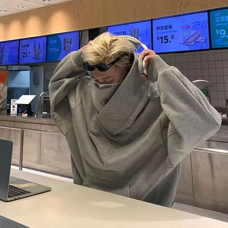 saferido Korean Street Style Solid Color High Collar Oversized Hoodie Men Fashion Loose Casual Hooded Top Harajuku New Sweatshirt Hoodie