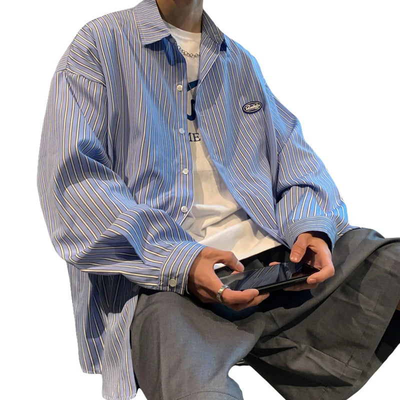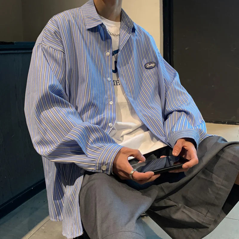 saferido Korean style casual Hawaiian shirt on long sleeve striped fashion streetwear shirts hombre shirt db60sh men's clothes