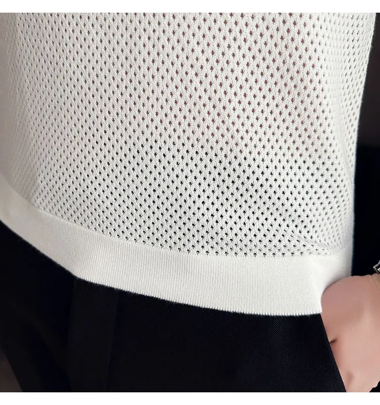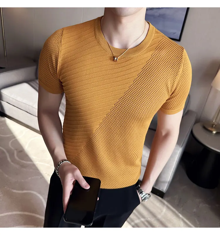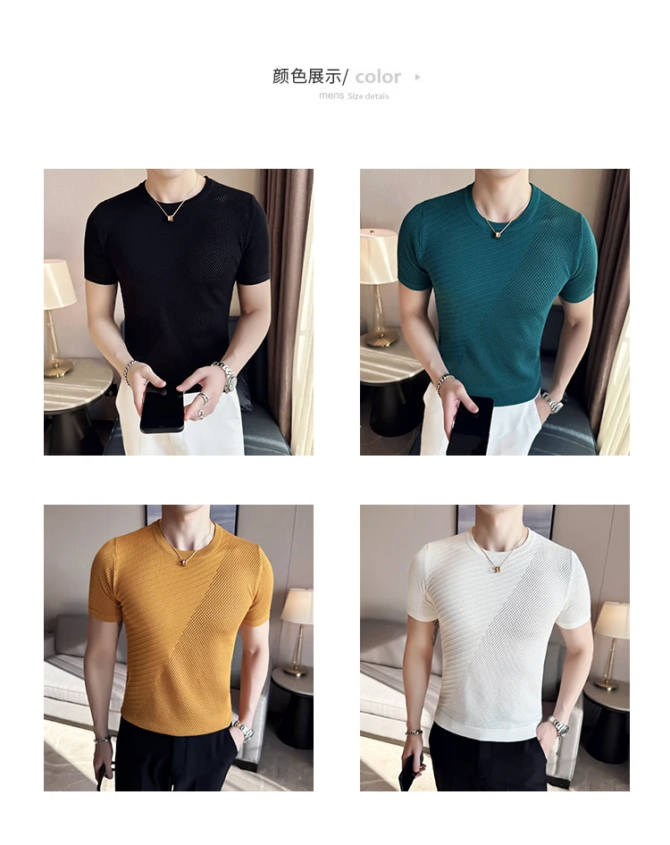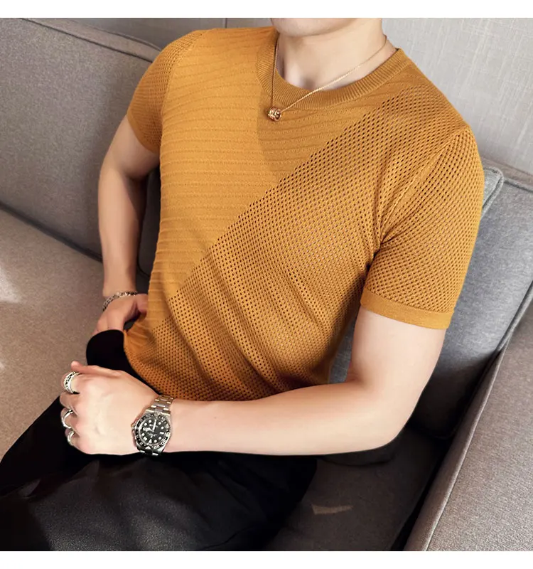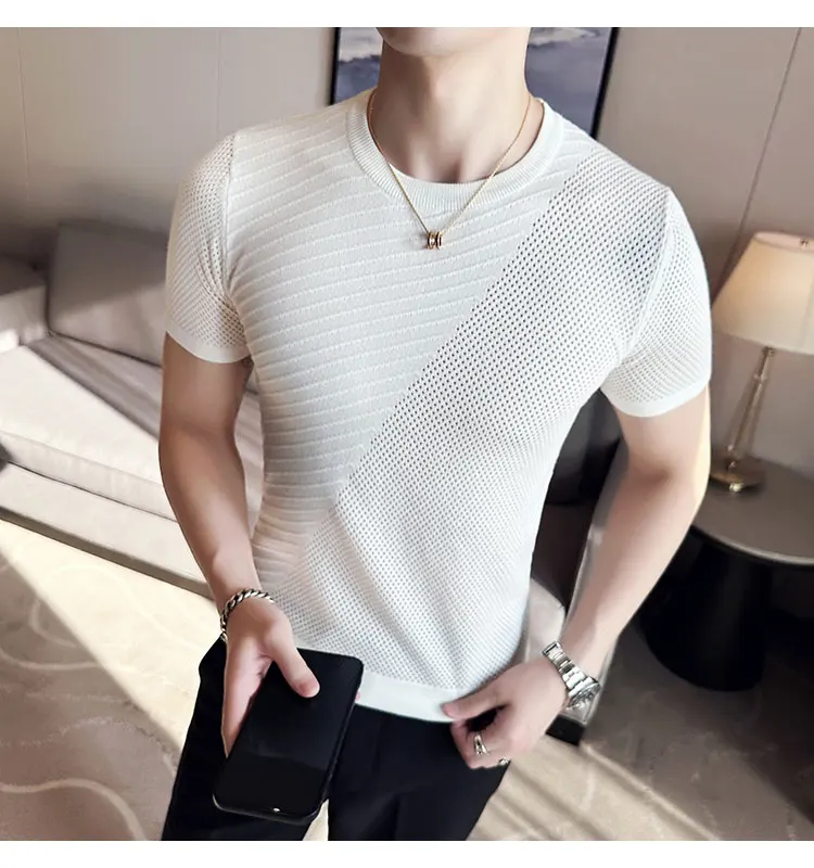 saferido Korean Style Men's Summer Casual Short Sleeve Knitted T-shirt/Male Ice Silk Hollow Out Round Neck T-shirt S-3XL