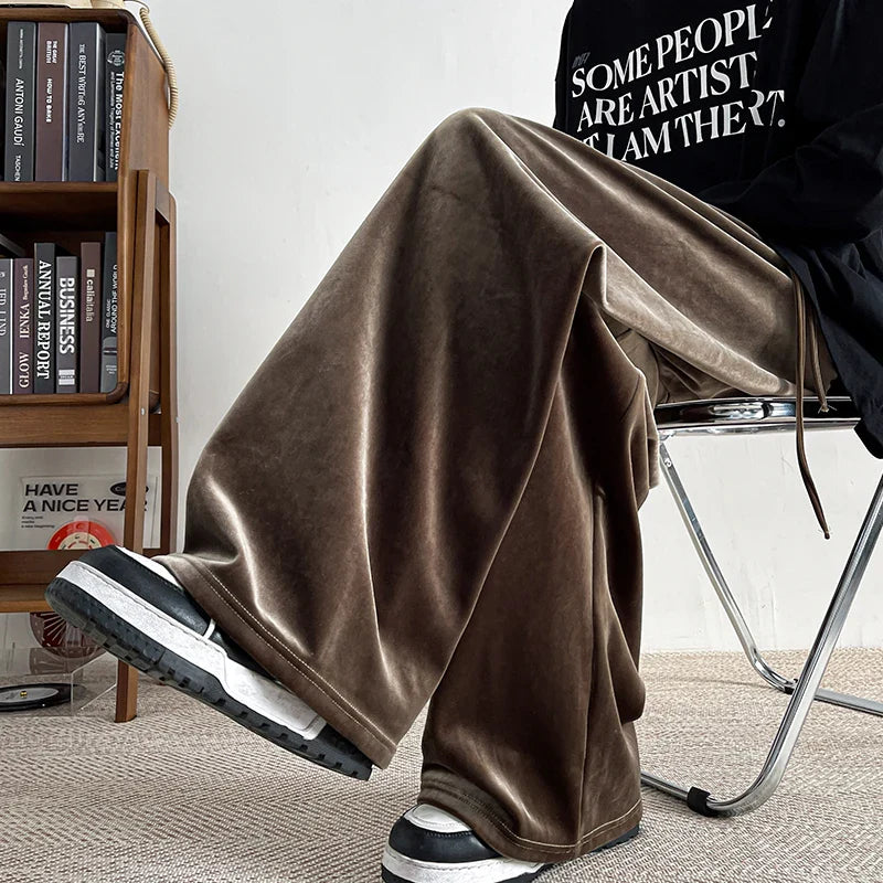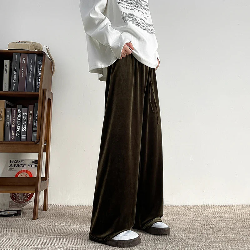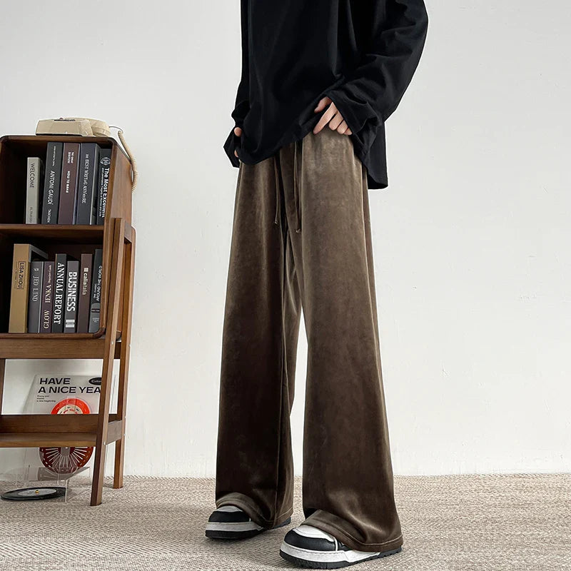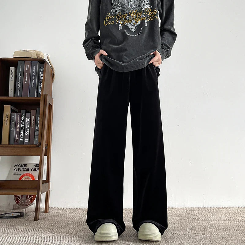 saferido Korean Style Pleuche Casual Pants Mens Fashion Wide-leg Mopping Trousers Male Oversize Straight Droop Pants Plus Size 8XL-M