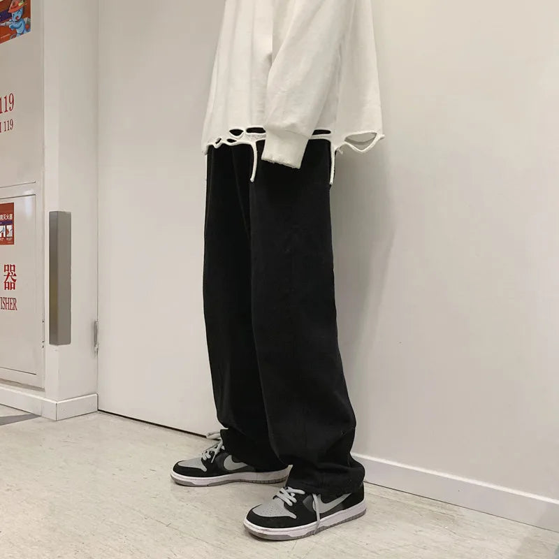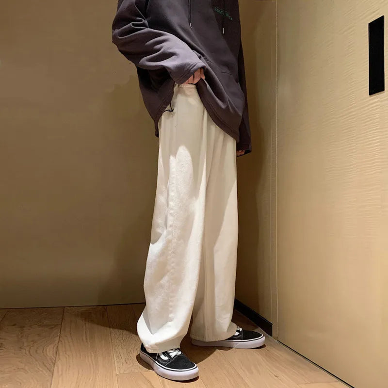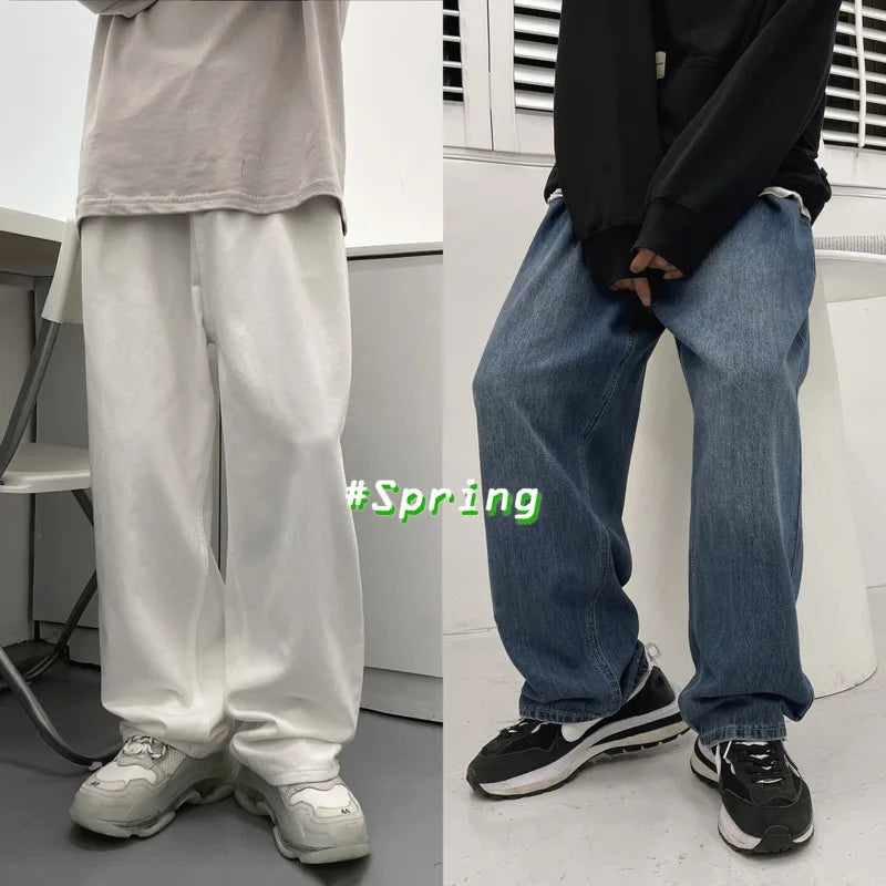 saferido Korean Wide-leg Jeans Men's Fashion Retro Casual Straight Jeans Men Streetwear Wild Loose Hip-hop Denim Trousers Mens S-XL