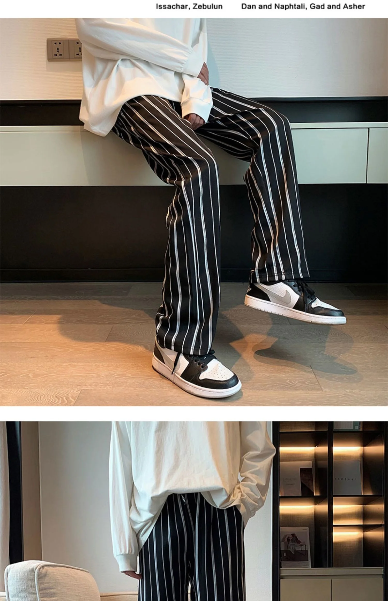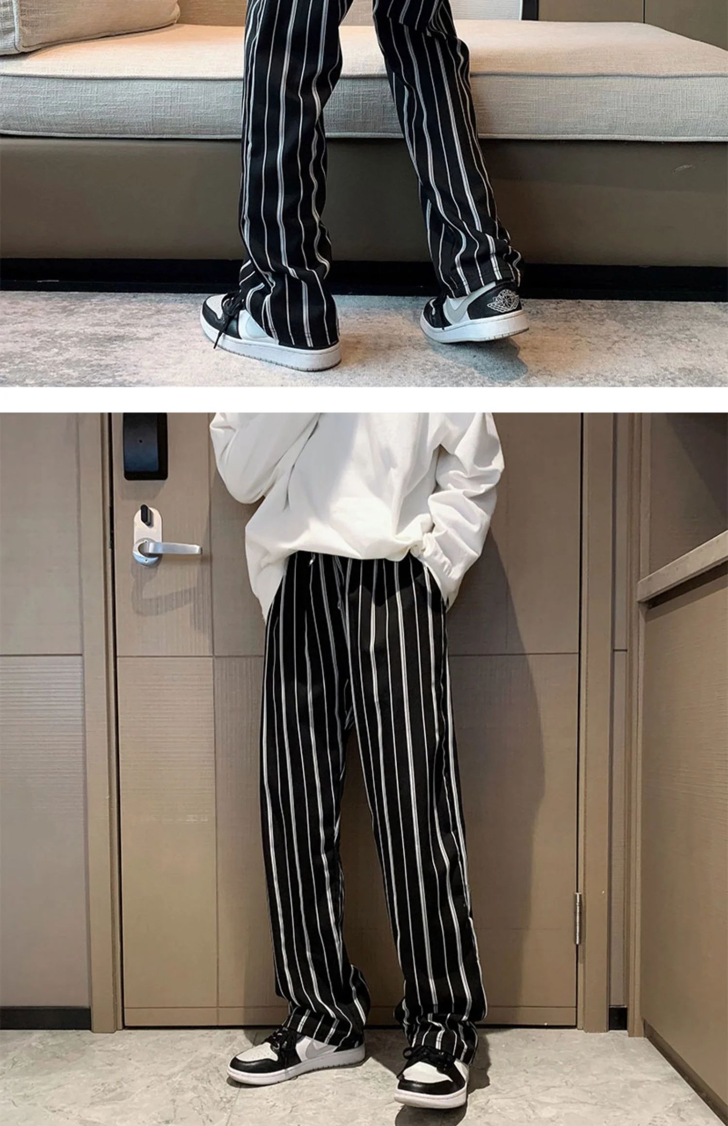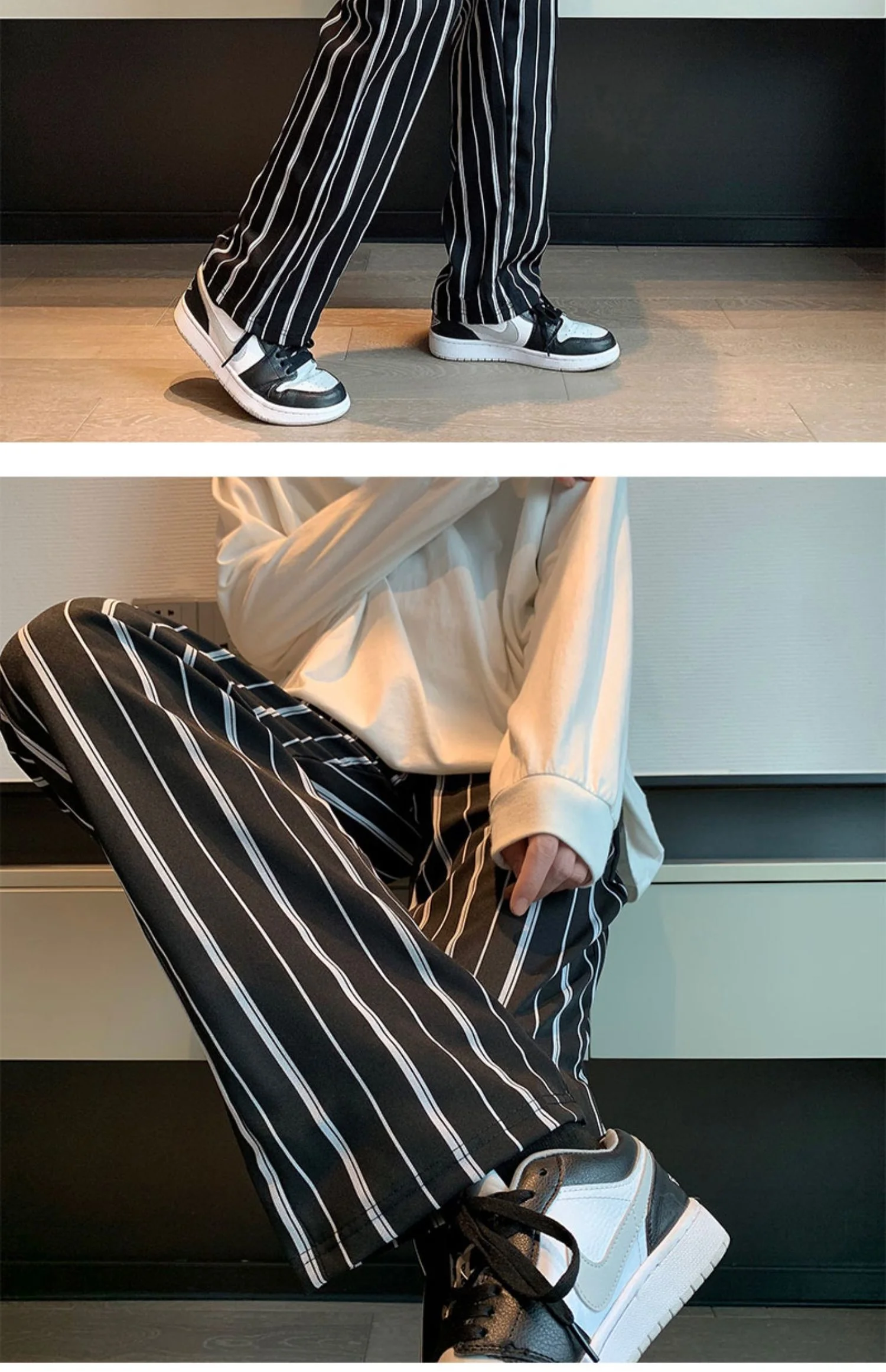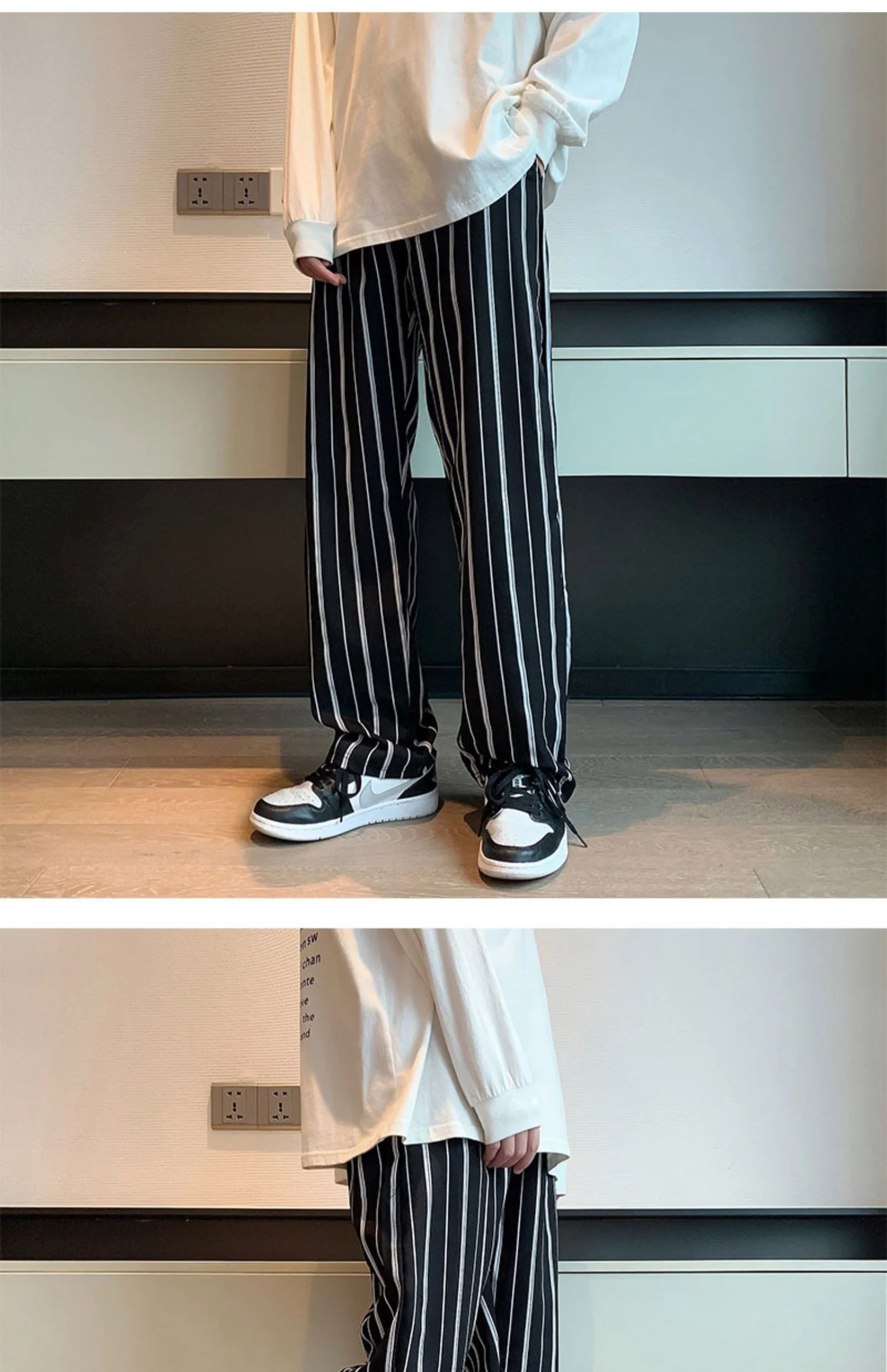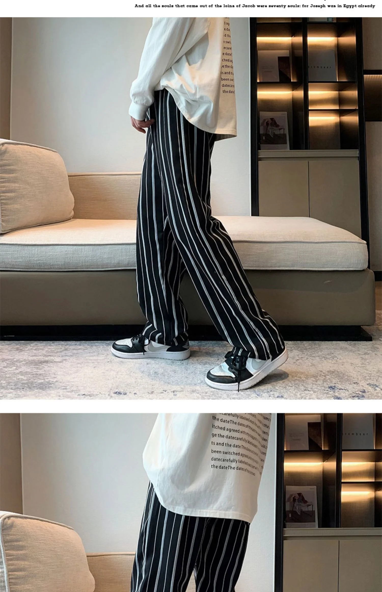saferido Loose Casual Straight Casual Pants Mens Fashion Spring Summer All-match Fashion Striped Sports Trousers Hip Hop Mopping Pants