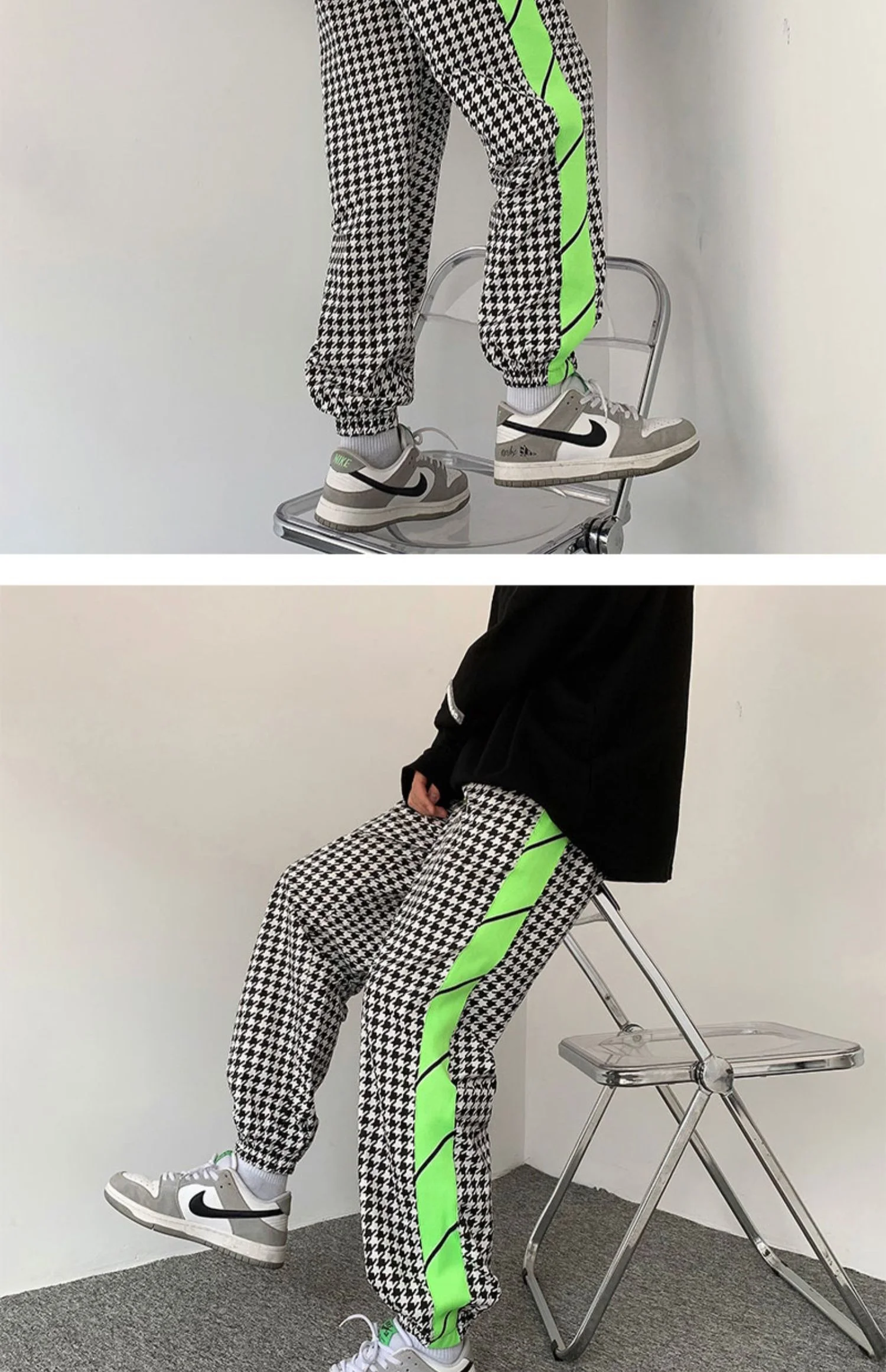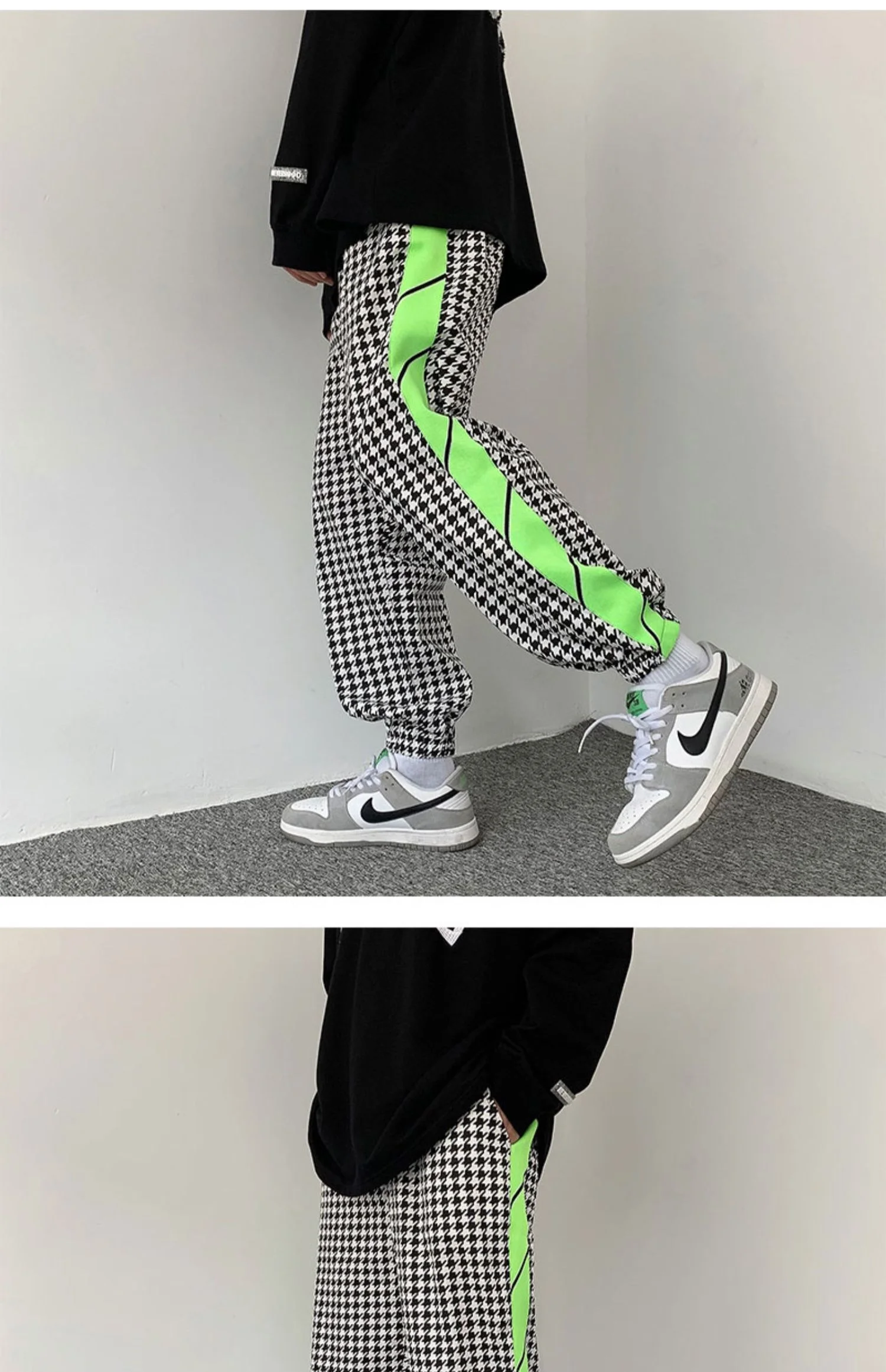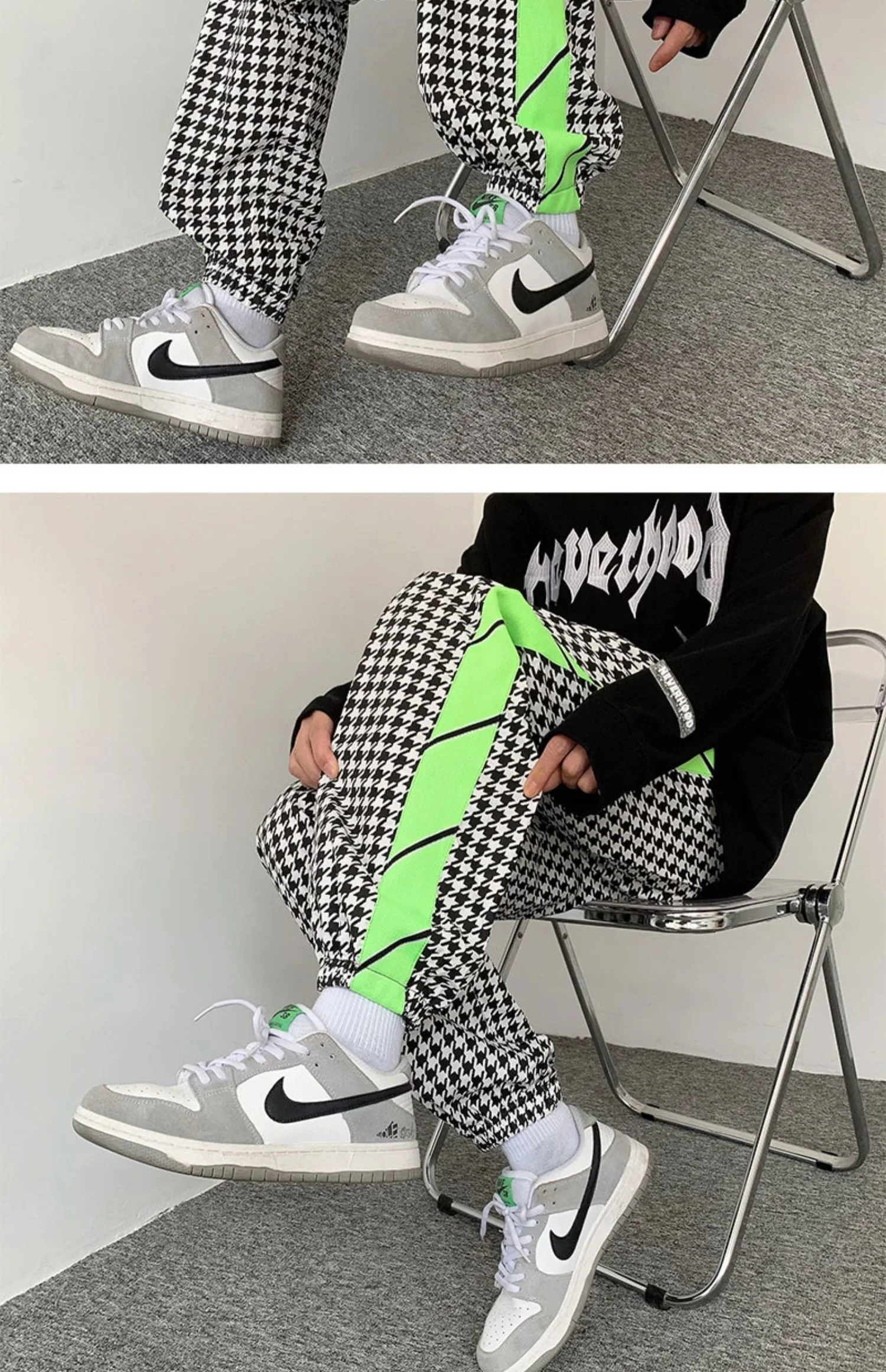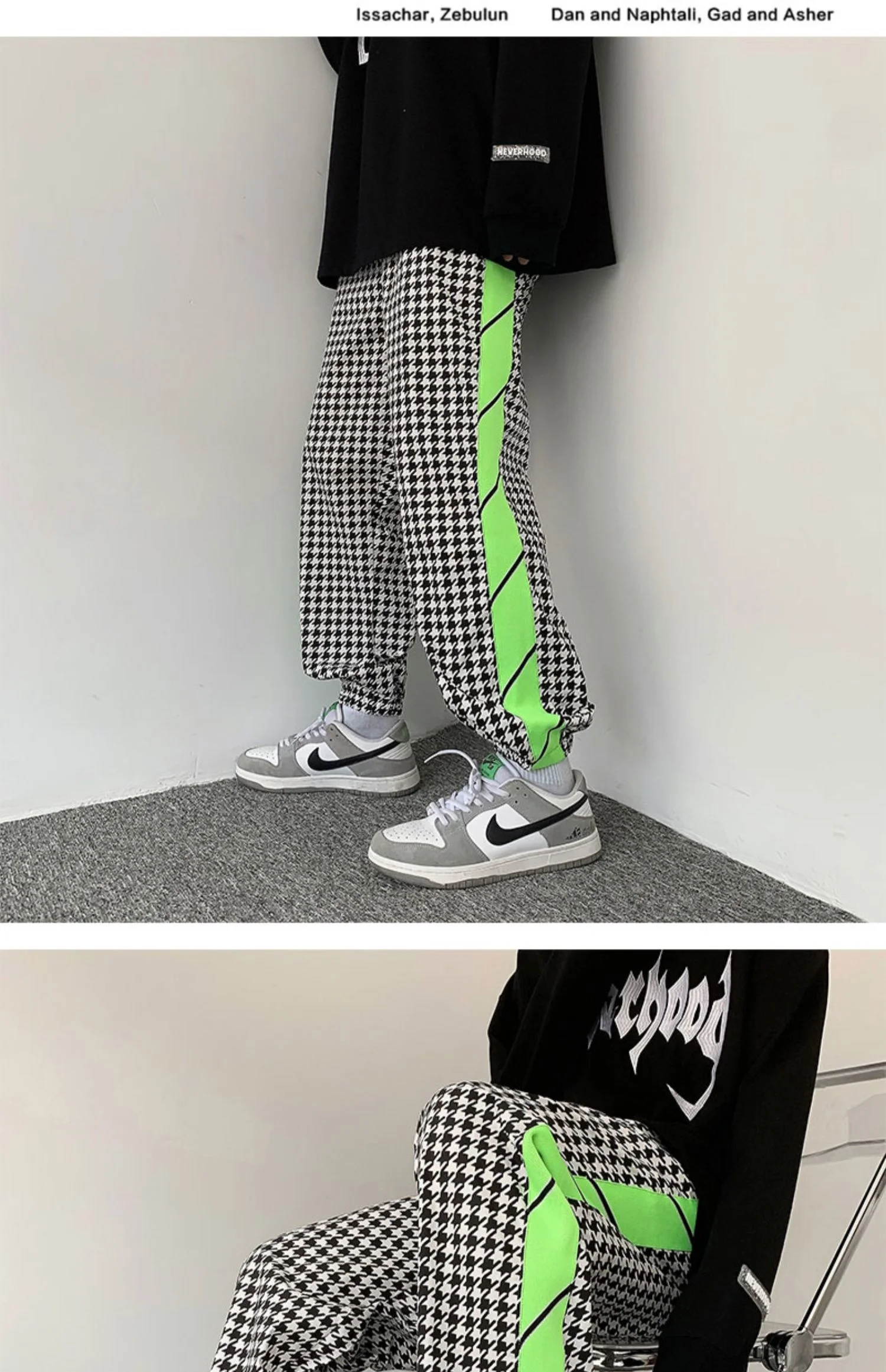 saferido Loose Trend Casual Sweatoants Men's Houndstooth Binding Feet trousers Fashion Spring and Summer Sports Contrast color Pants