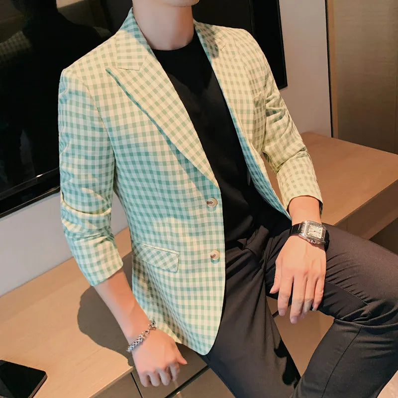 saferido Male Casual Plaid Blazers New Design Korean Version Slim-Fit Trend Business Coat High Quality Selling Fashion Suit Men 4XL