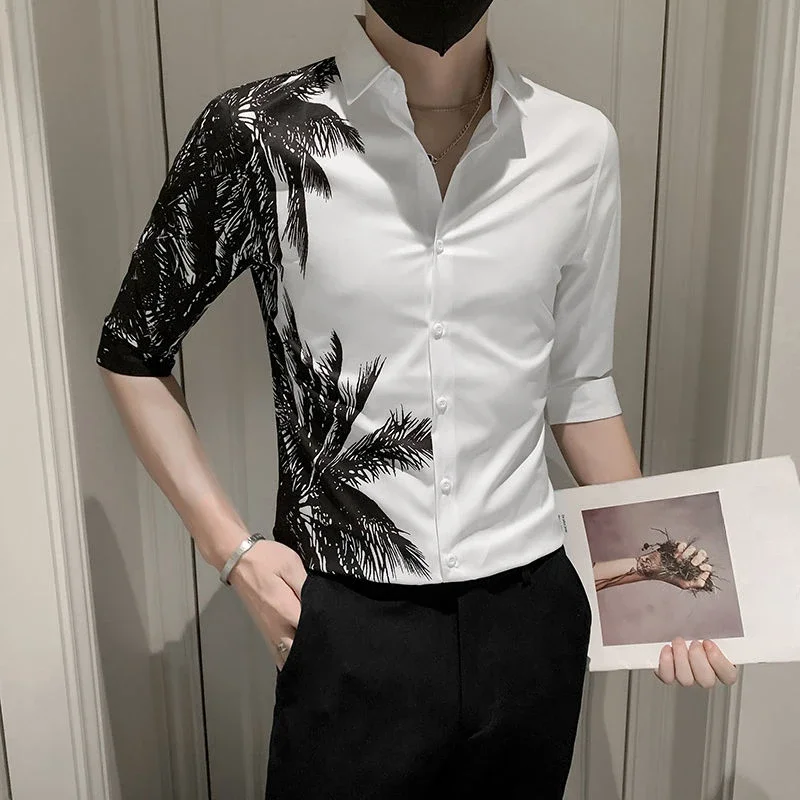saferido Male Shirts Graphic Oversize White Half Sleeve Men's Shirt with Sleeves Designer Slim Fit Normal Fashion 2024 Korean Style Xxl I