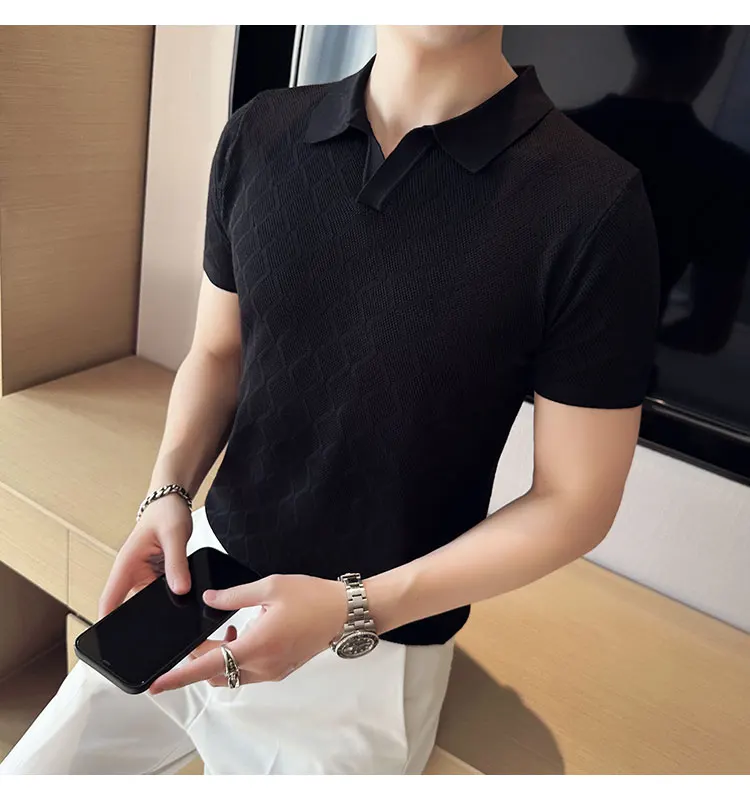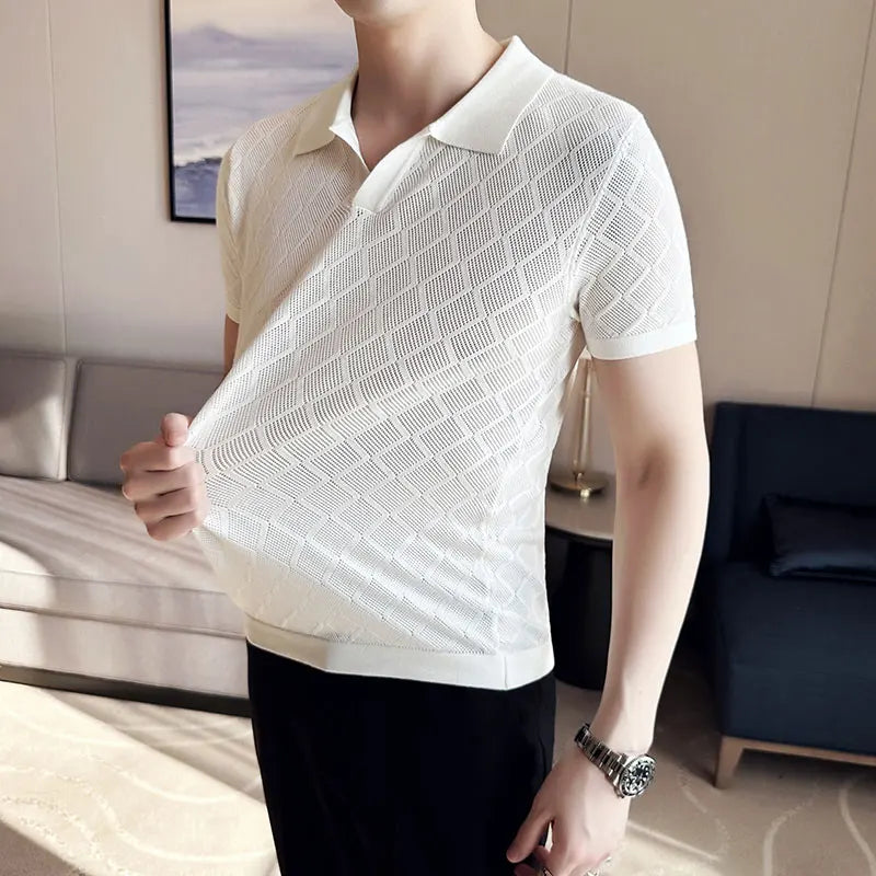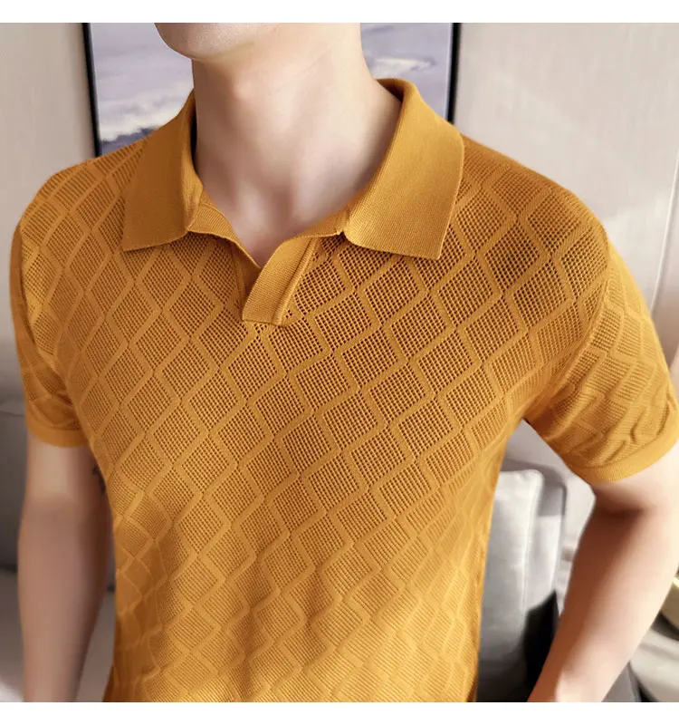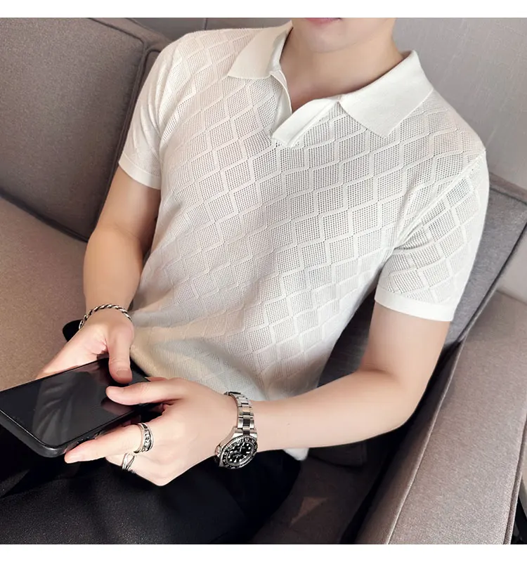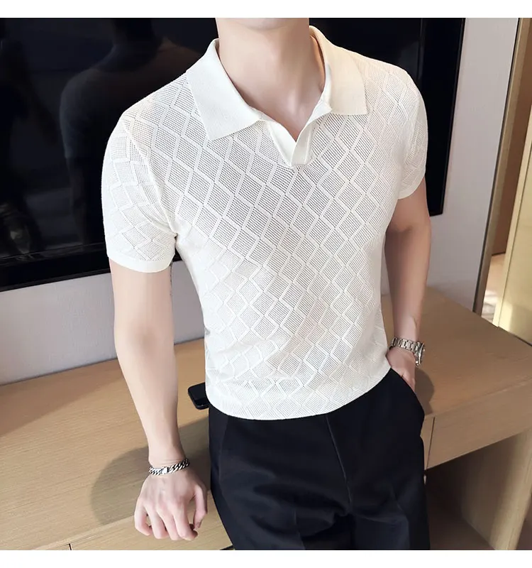 saferido Male Spring Slim Fit Knitting Polo Shirts British Style Men's Summer Casual Hollow Out Short Sleeves Polo Shirts S-3XL