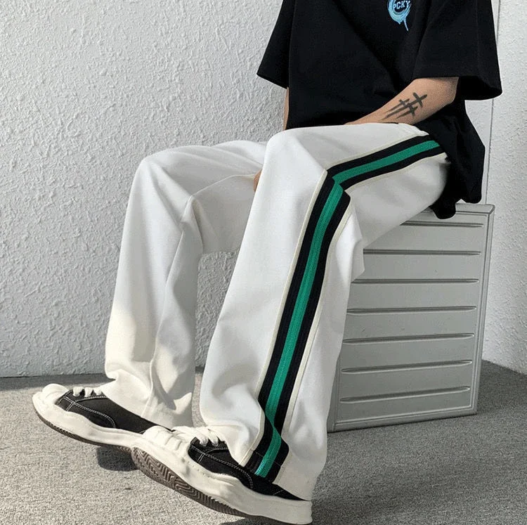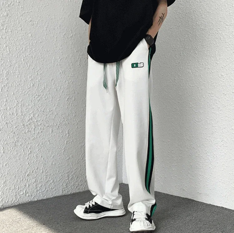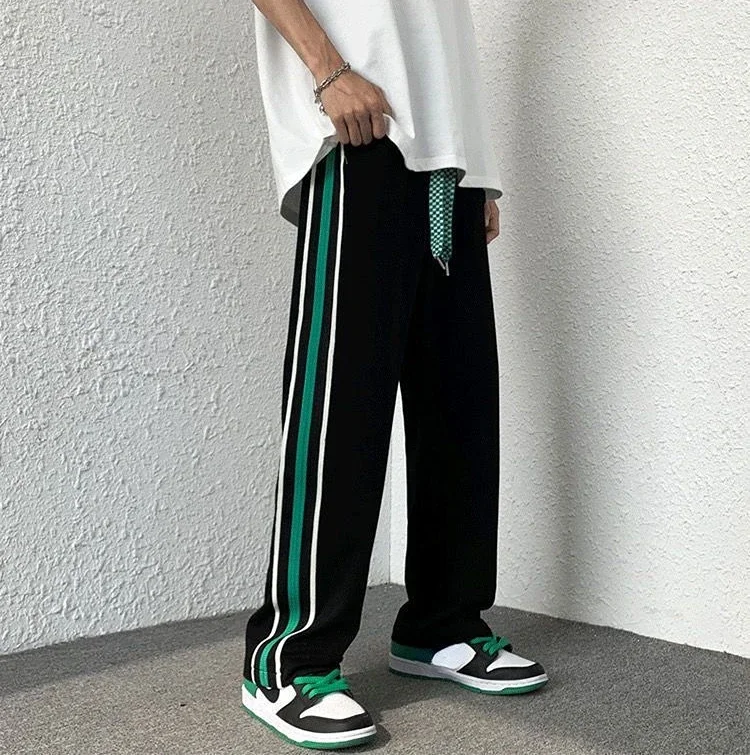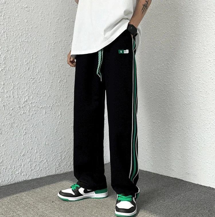 saferido Male Sweat Pants Black Sport Trousers Straight Sweatpants for Men Wide Leg Track Athletic Tracksuit Bottoms Korean Style Fashion