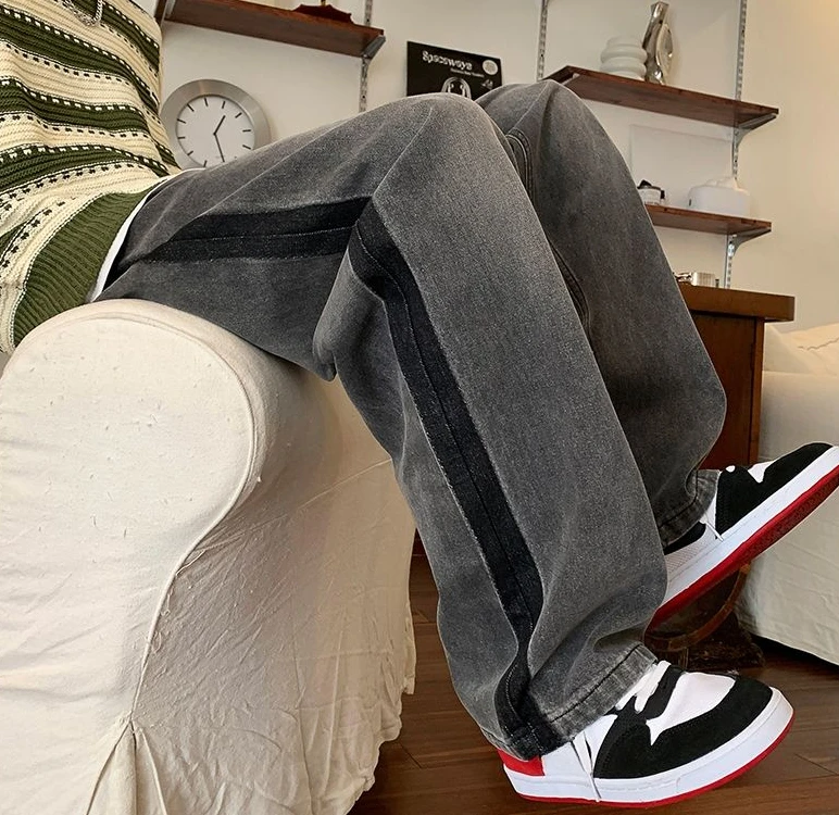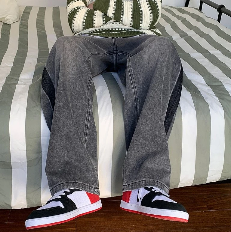 saferido Man Cowboy Pants Straight Vintage Men's Jeans Patchwork Trousers Wide Leg with Pockets Original Casual Japanese Street Style Y2k