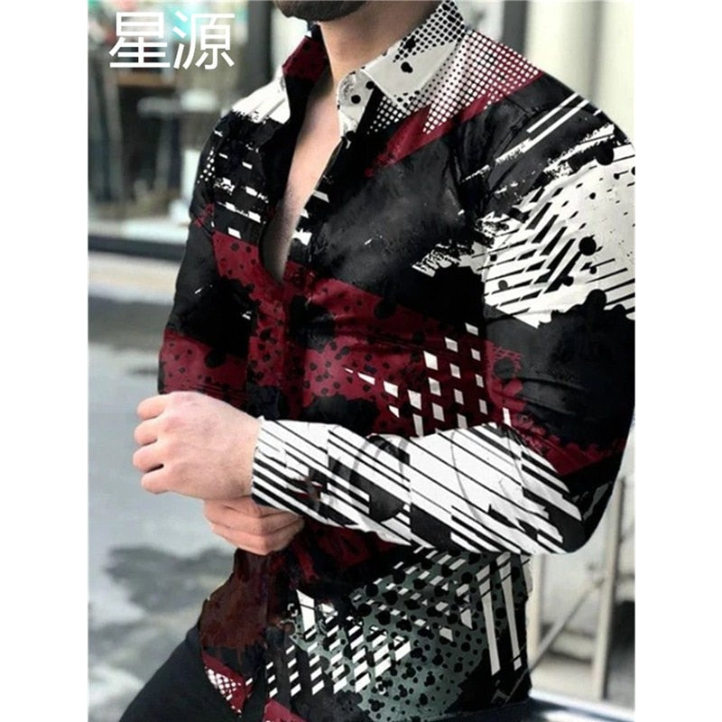 saferido Men Spring New Skull Print Shirt Men Fashion Trend Personality Casual Rhinestones Slim Long Sleeve Dress Shirt Men