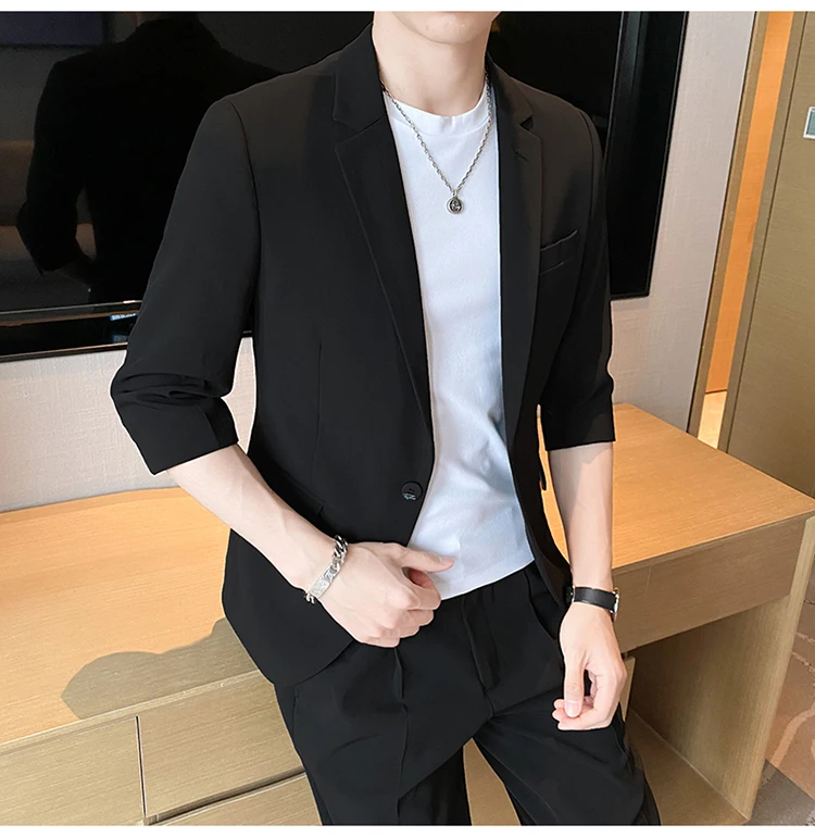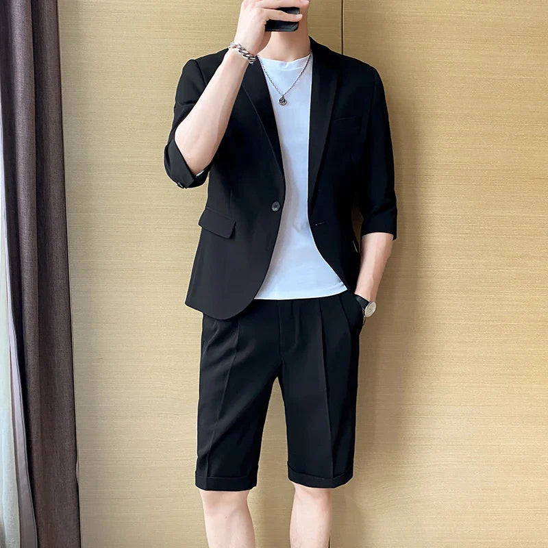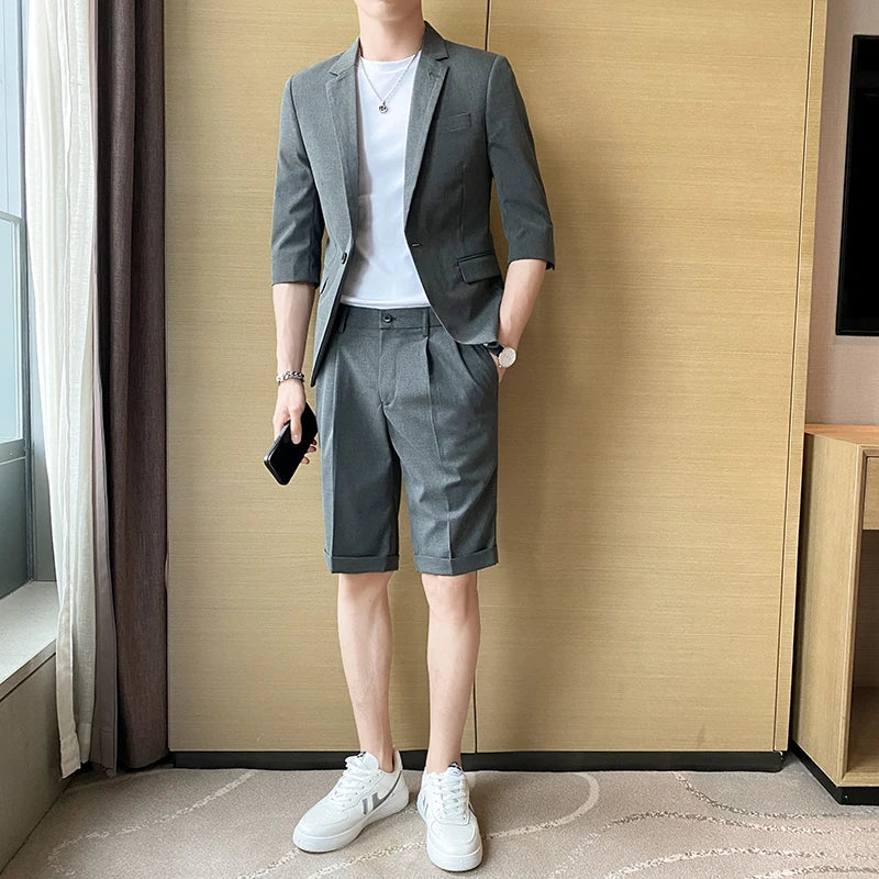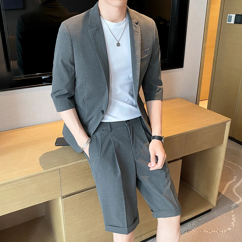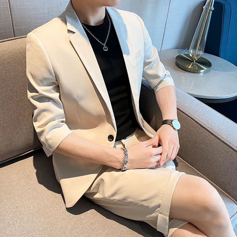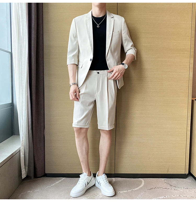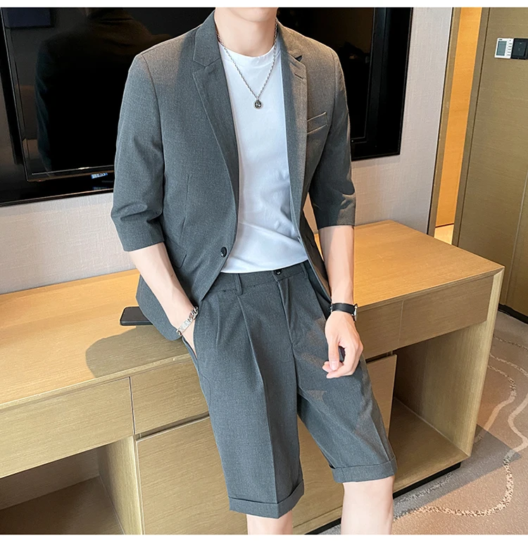 saferido Men Clothing Shorts Jacket Summer Thin High End Suit Men's Korean British Fashion Casual Mens Short Sets Sleeve Blazers M-3XL pants