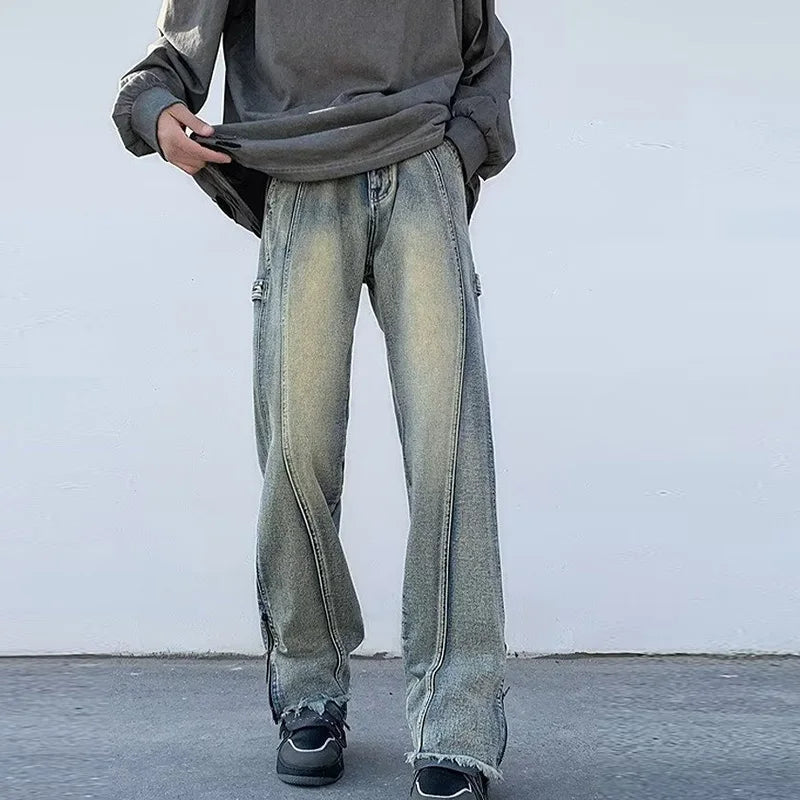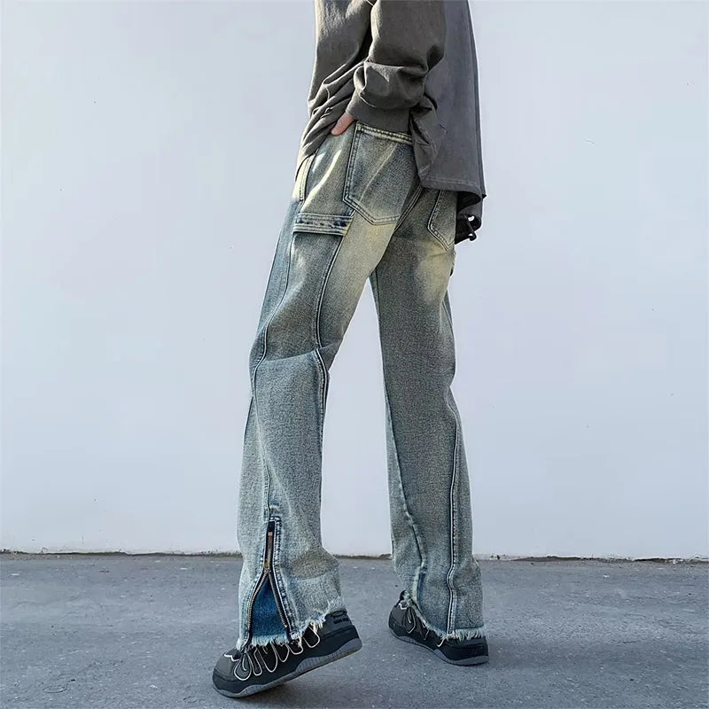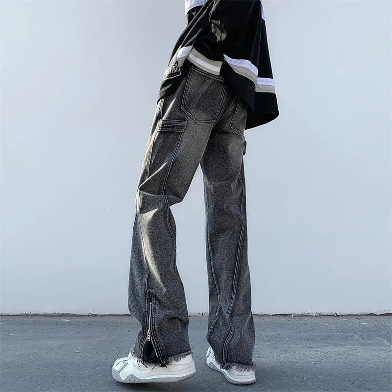 saferido Men Flared Pants Oversize Jeans Korean Fashion Casual Simple Straight Oversize Casual Straight Trousers Male Zipper Pockets Pant