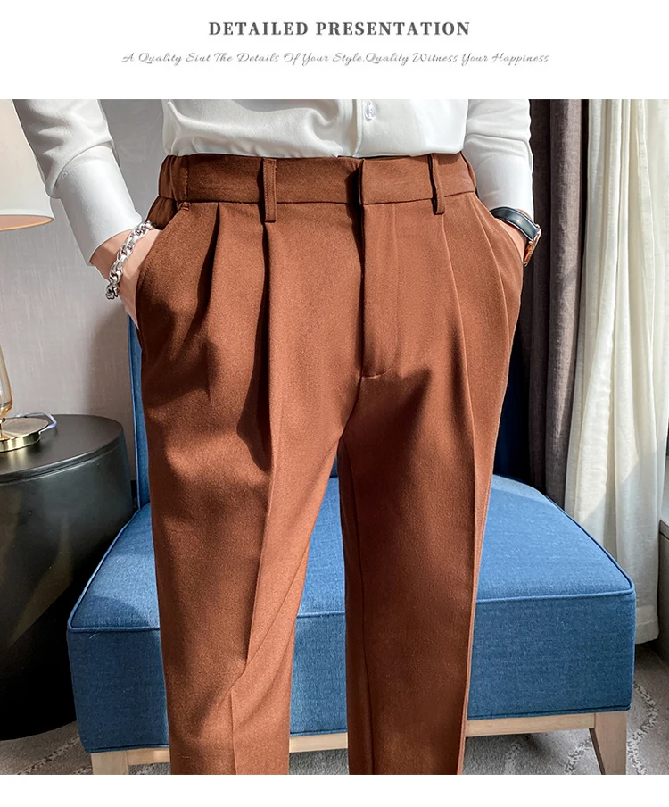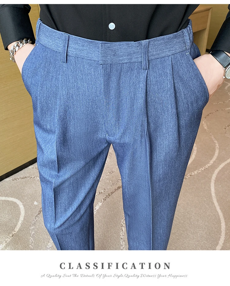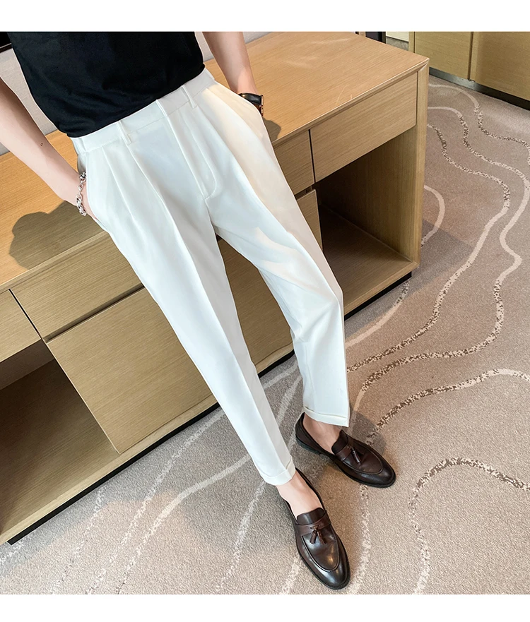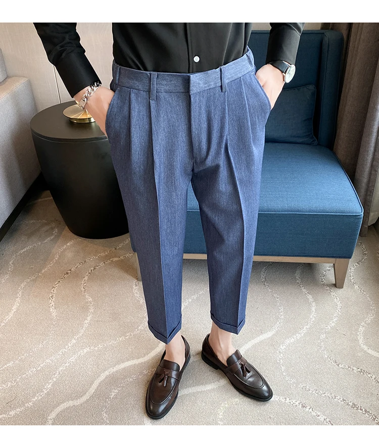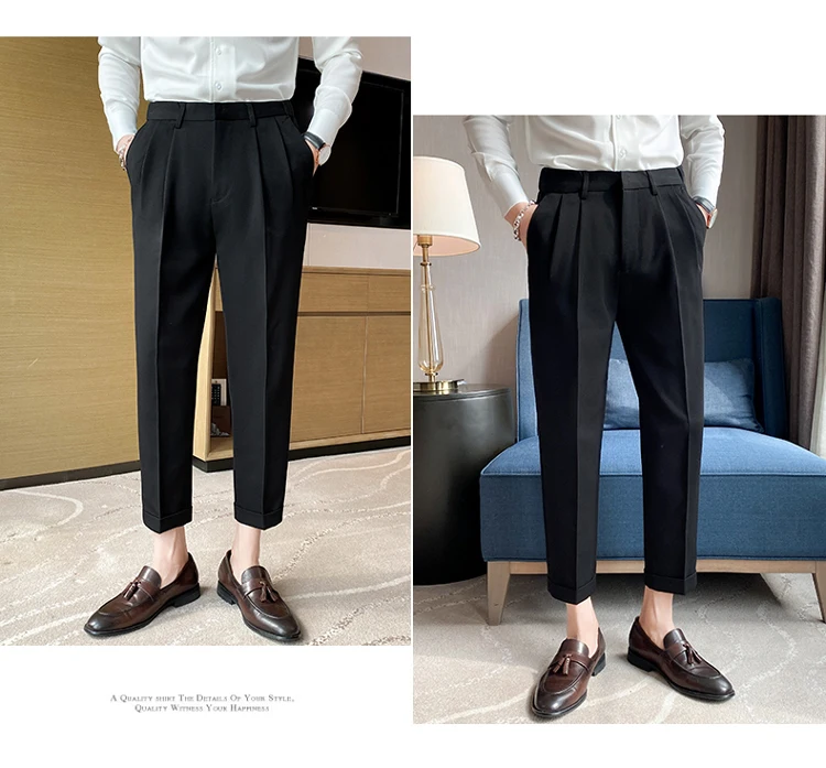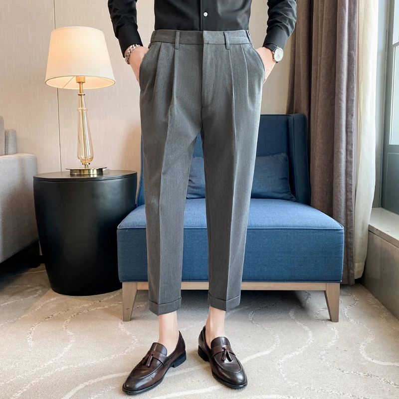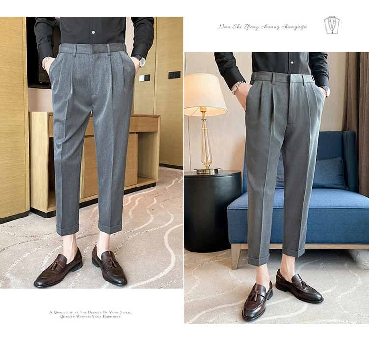 saferido Men High Quality Black Gray Dress Suit Pant Spring Man Pants Korean Slim Fit Men Casual Ankle Length Pants Streetwear 36