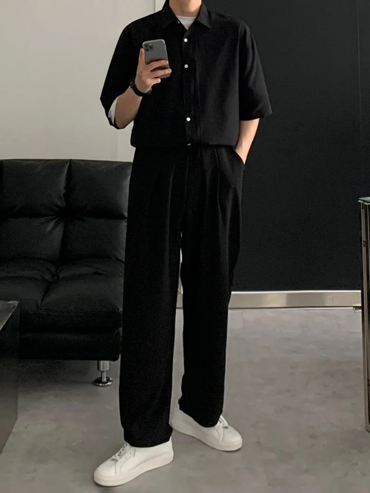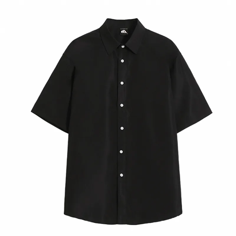 saferido Men Short Sleeve Shirt 2024 Summer New Korean Style Single Breasted Lapel Business Casual Top Solid Color Male