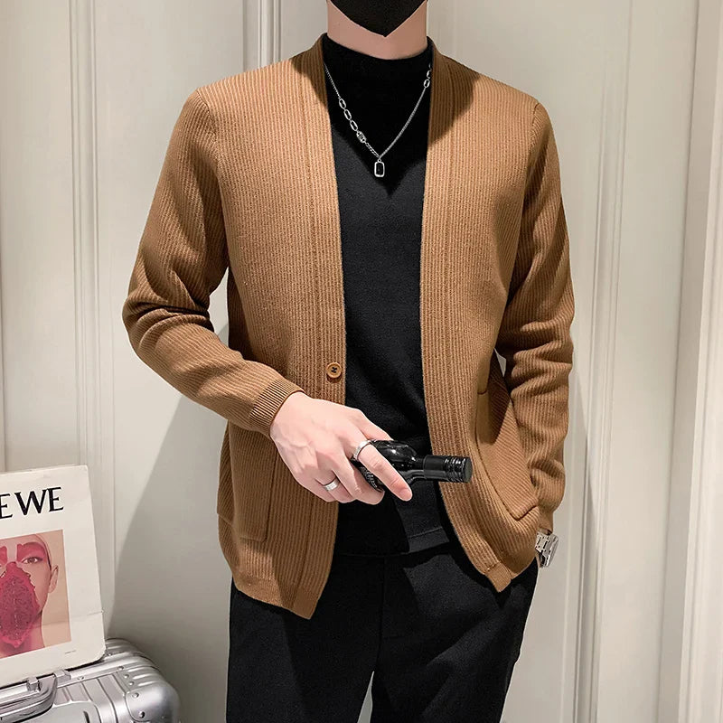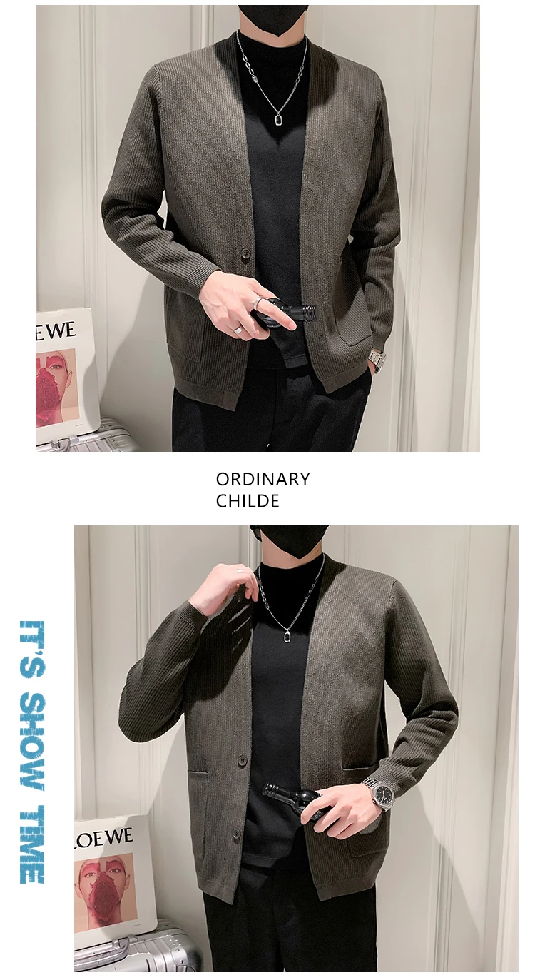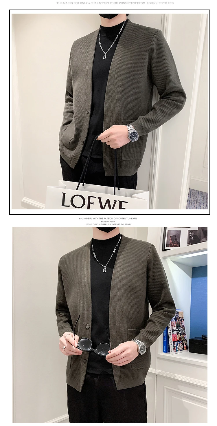 saferido Men Spring Autumn Cardigan Sweater Fashion Sim Fit Patchwork V Neck Mens Knitted Cardigan Single Breasted Casual Sweatercoat Man