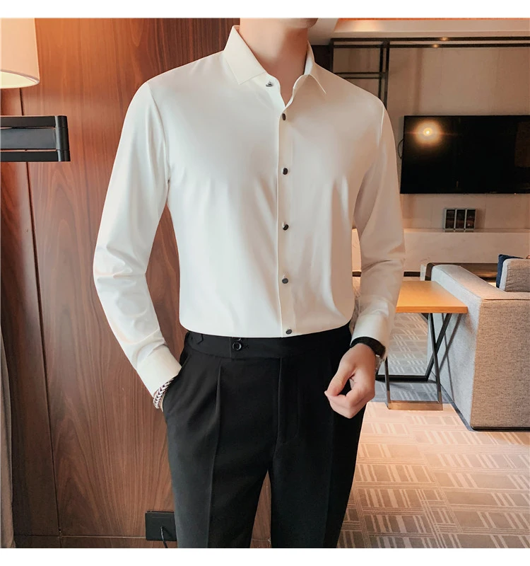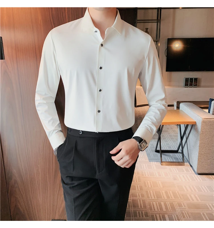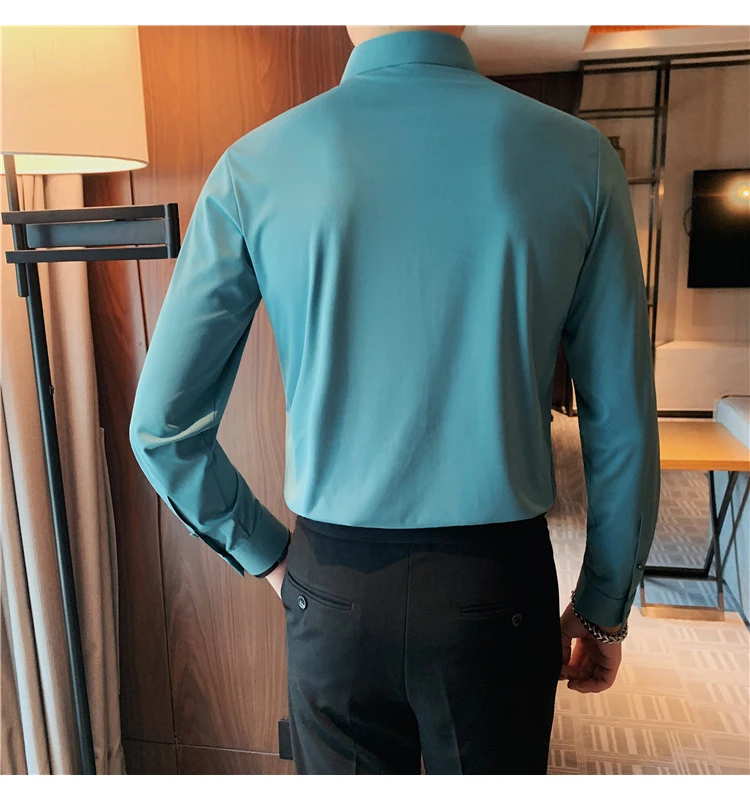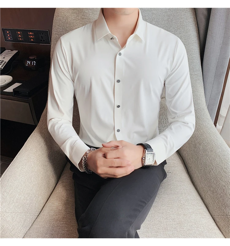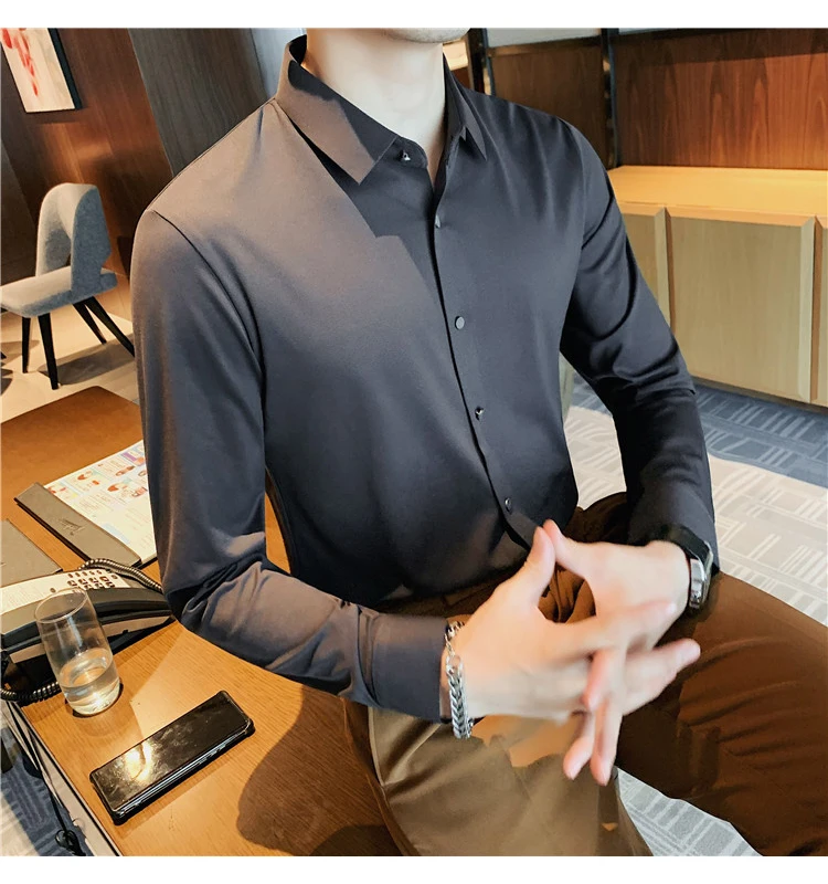 saferido Men Spring High Quality Business Shirts/Male Slim Fit Solid Color Ice silk With Long Sleeves Shirts/Man Casual Dress Shirts