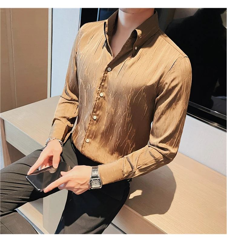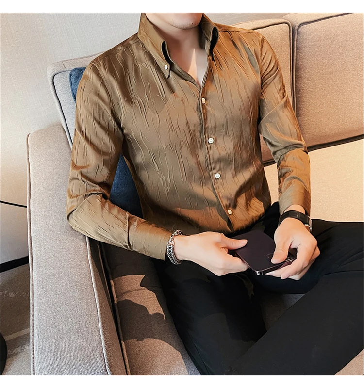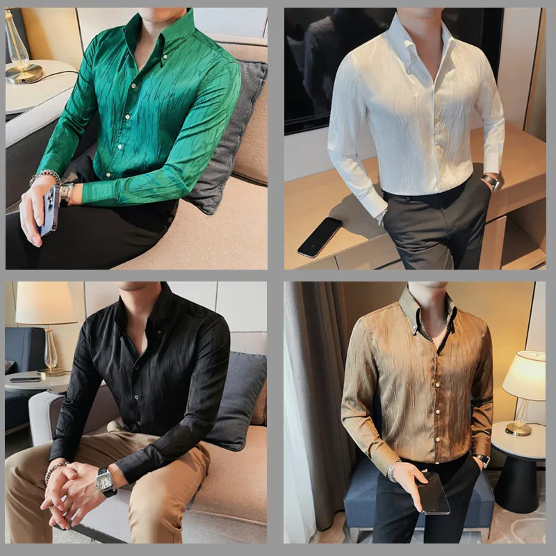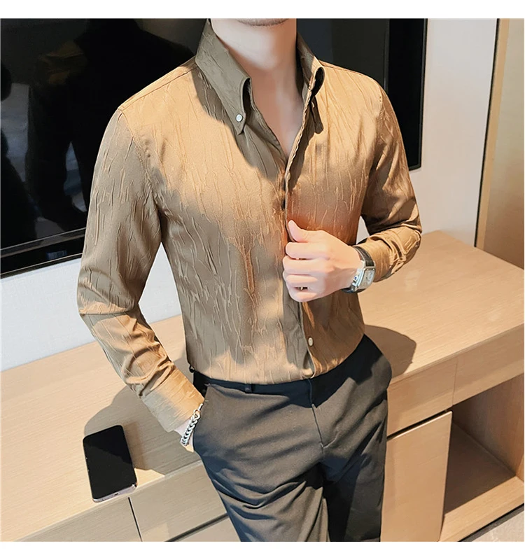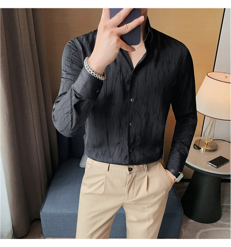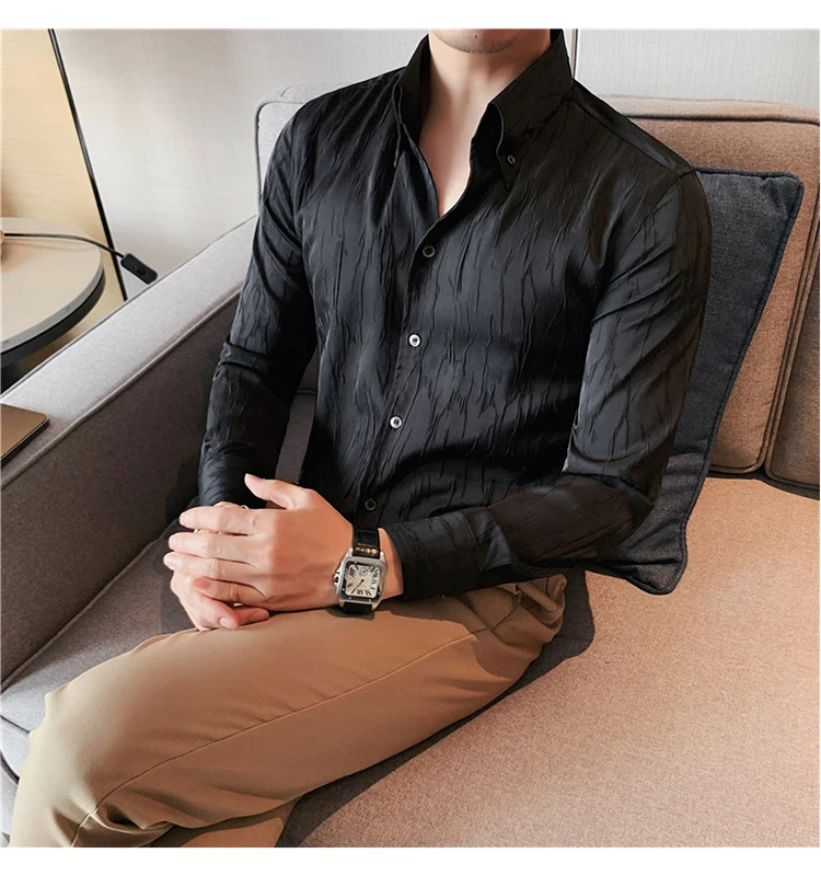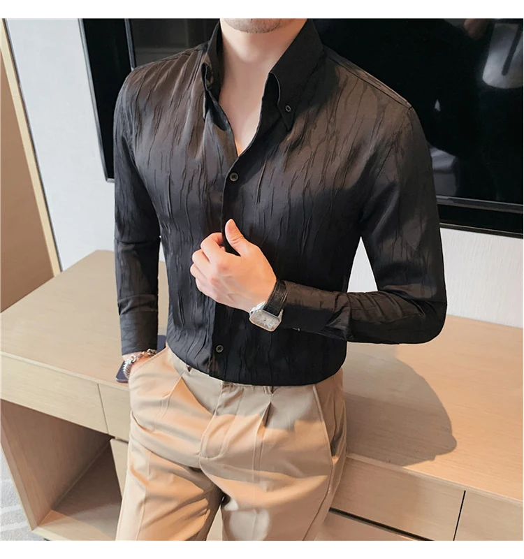 saferido Men Spring High Quality Fashion Slim Fit Long Sleeve Shirts/Male Fold Business Luxury Lapel Casual Shirts Chemise Homme S-3XL