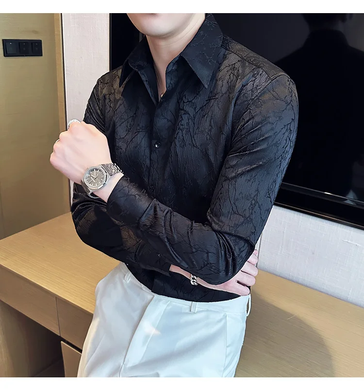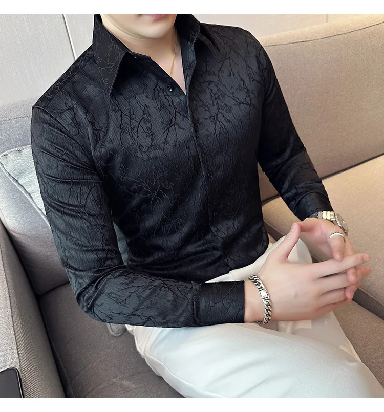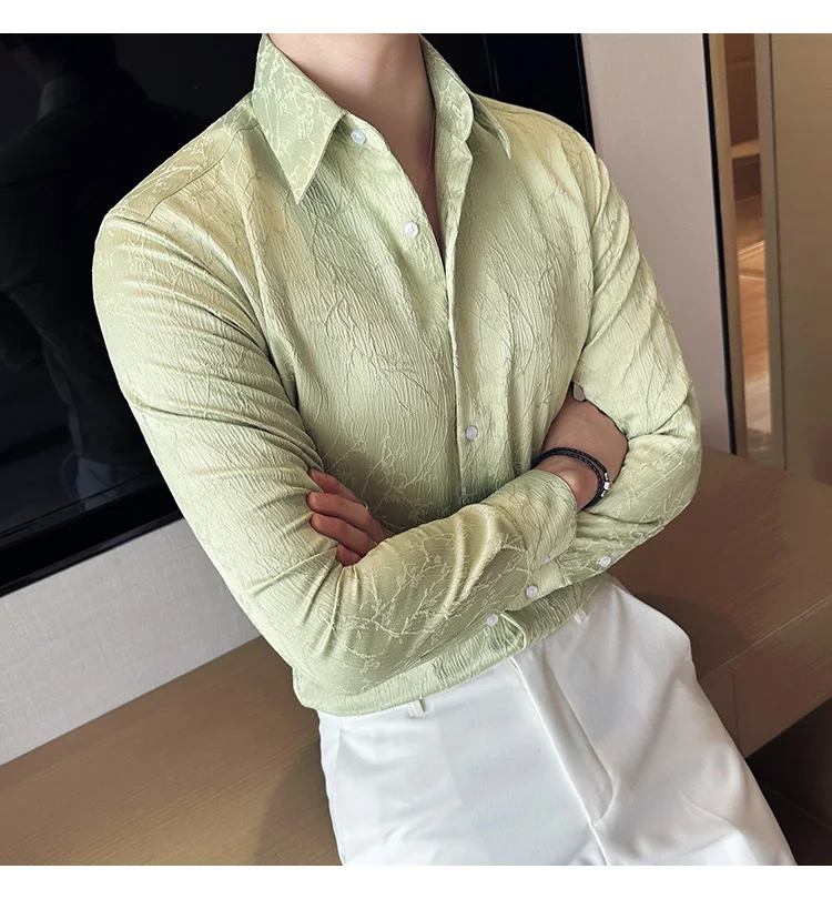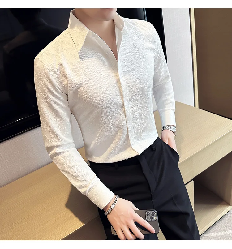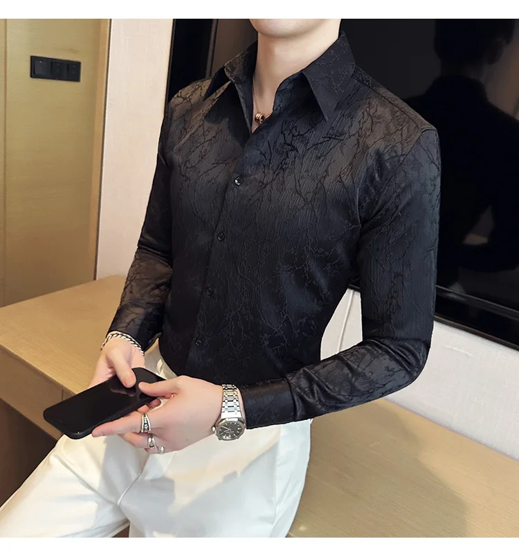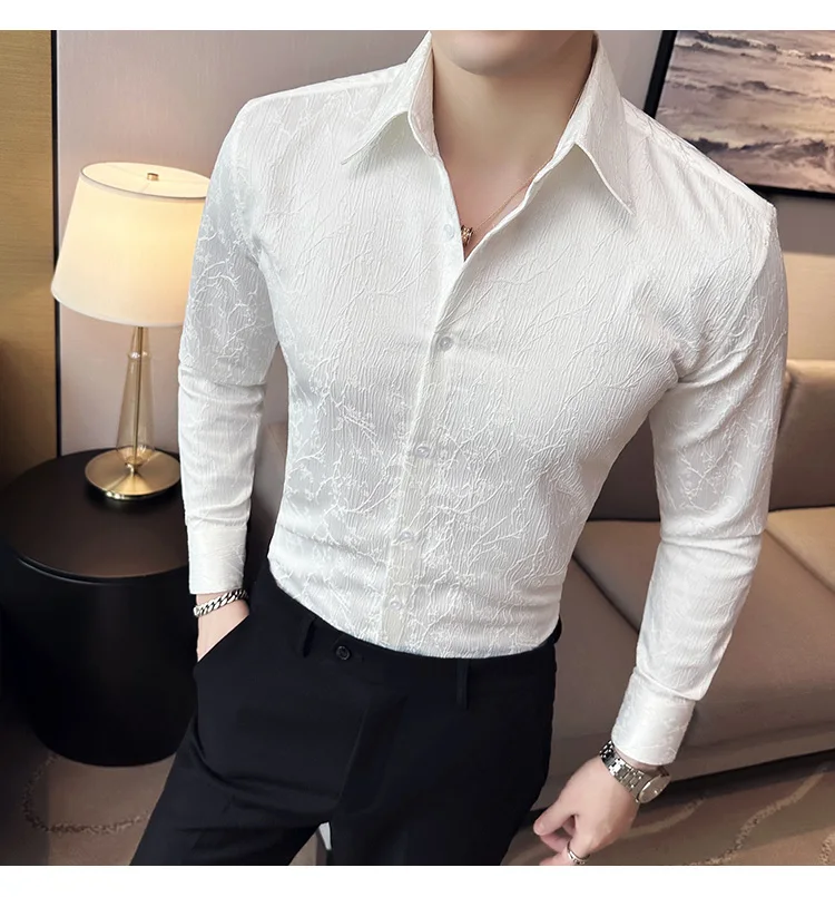 saferido Men Spring High Quality Jacquard Design Casual Long-sleeved Shirts/Male Slim Fit Lapel High Quality Business Shirt Homme