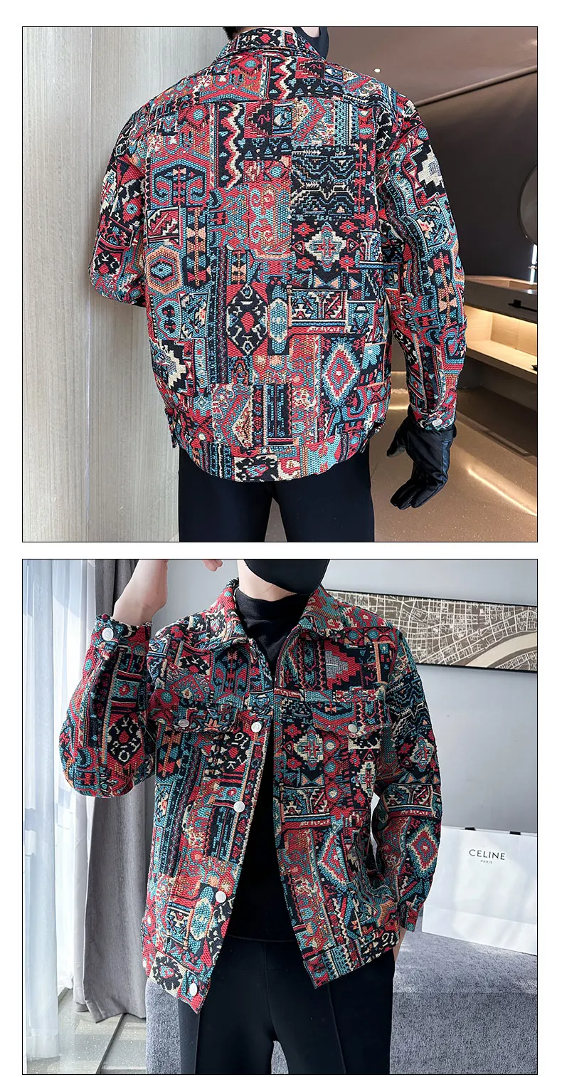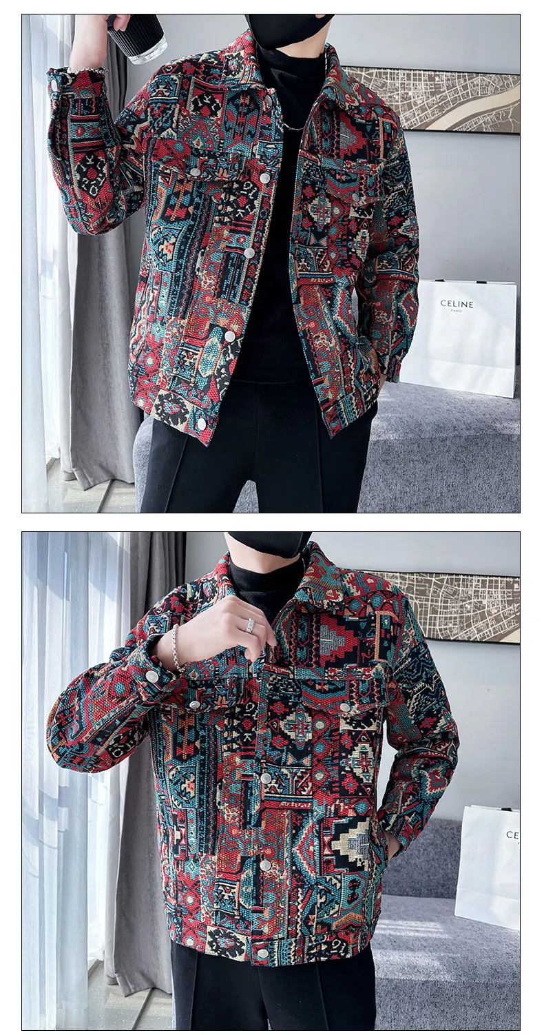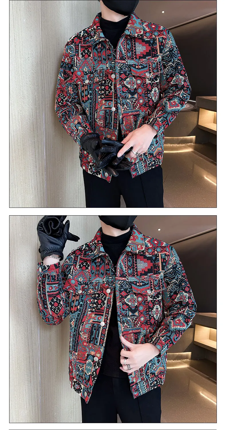 saferido Men Spring High Quality Printed Casual Denim Jackets/Male Jacquard Denim Jackets Man Slim Fit Coats