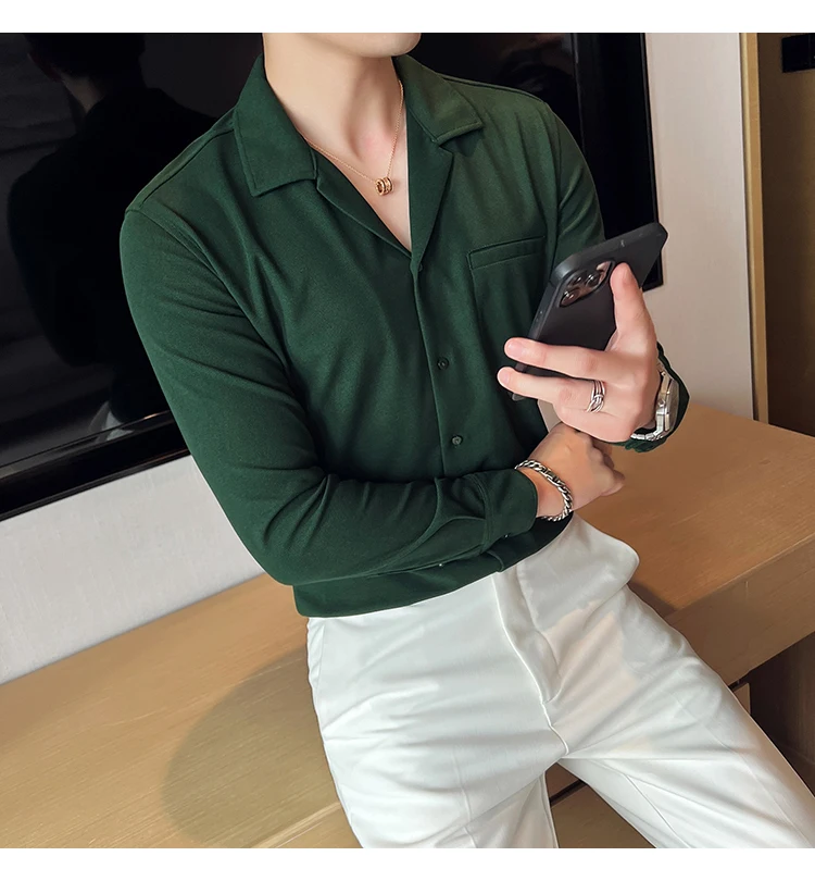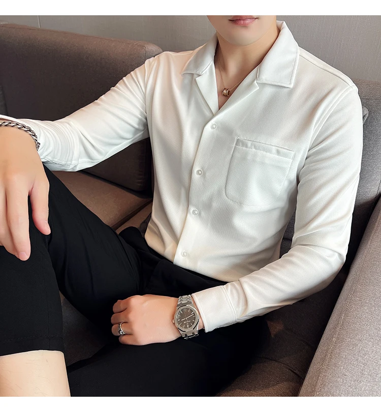 saferido Men Spring High Quality V-Neck Stylish Long-Sleeved Shirts/Male Slim Fit Business And Casual Office Dress Shirts Tops 4XL