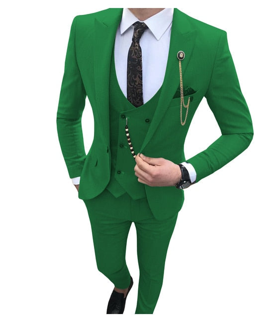 saferido Men Suit Slim Fit 3 Piece Grey Casual Prom Tuxedos Groom Peaked Lapel Business for Wedding Suits Men (Blazer+Vest+Pant)