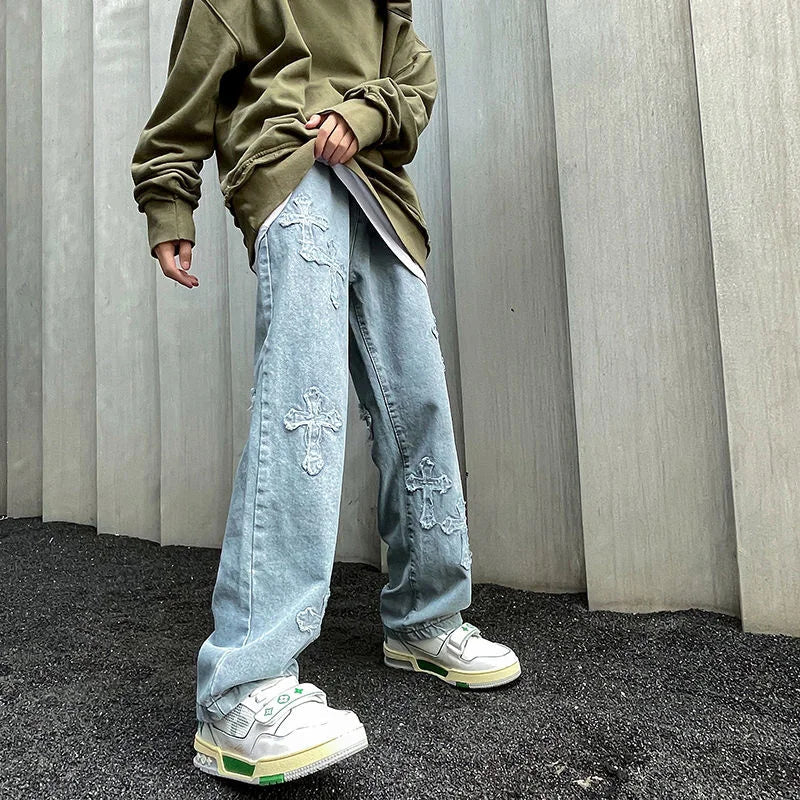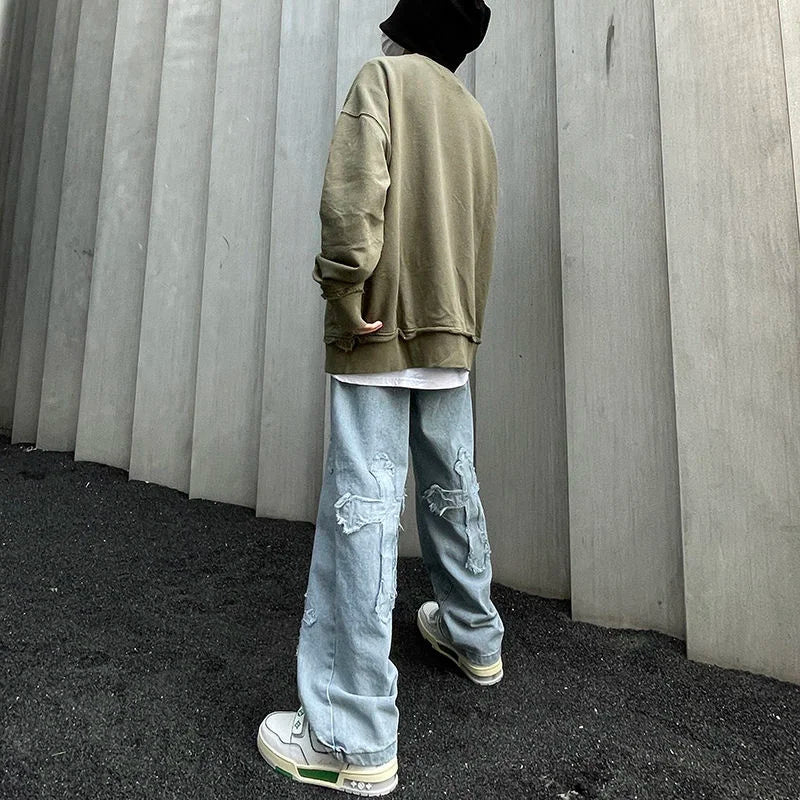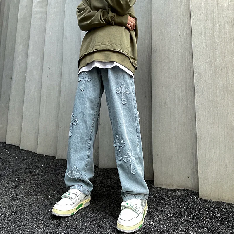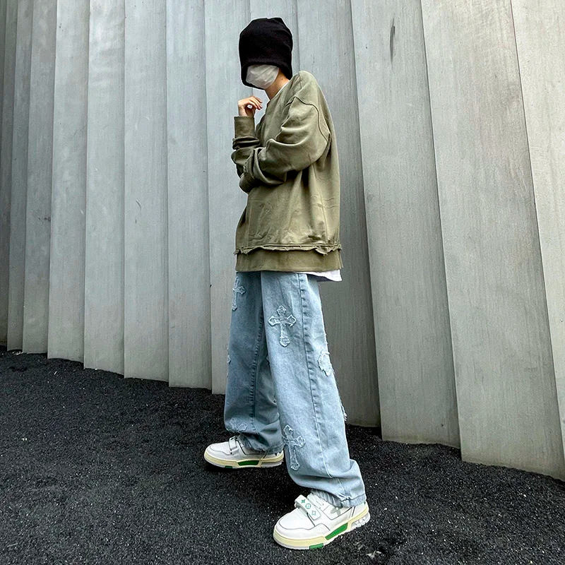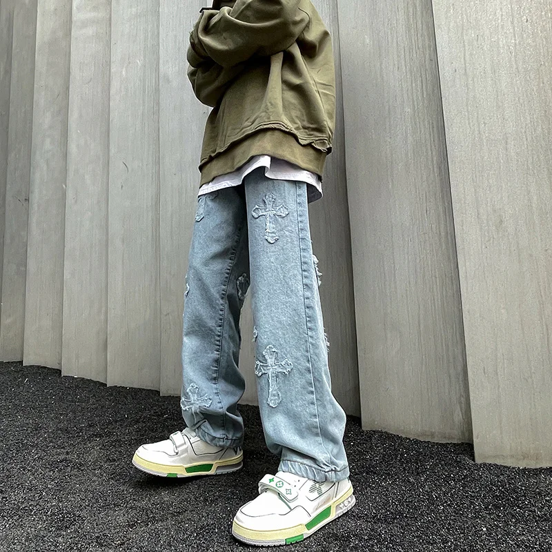 saferido Men's American High Street Hip Hop Casual Pants Baggy Homme Classic Jeans Fashion Trend Blue Color Biker Denim Trousers