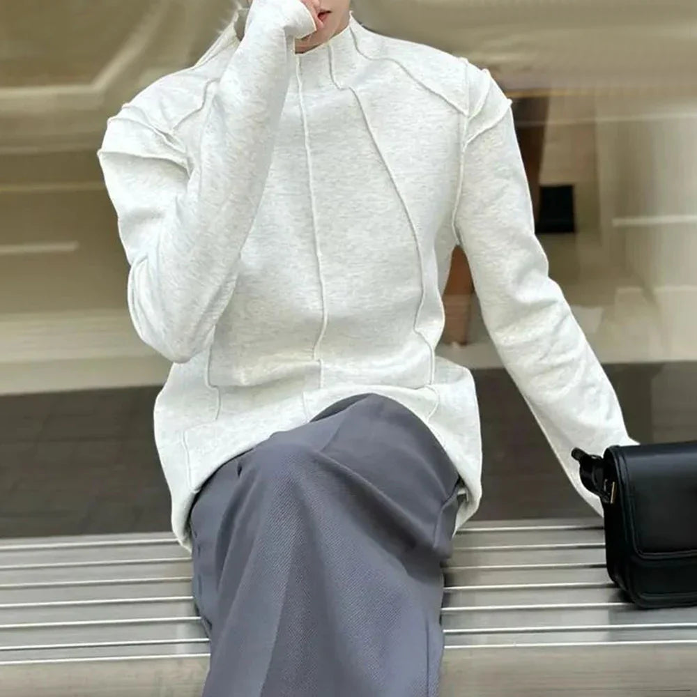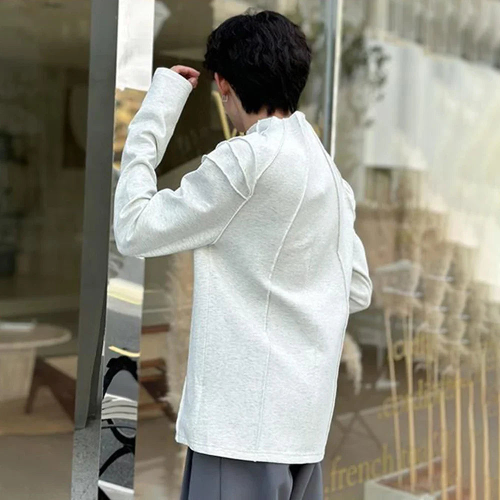 saferido Mens Autumn 100% Cotton Slim Fit Half Turtle Collar Long Sleeve T-Shirt Genderless Korean Style Contour Line Sweatshirt Unisex