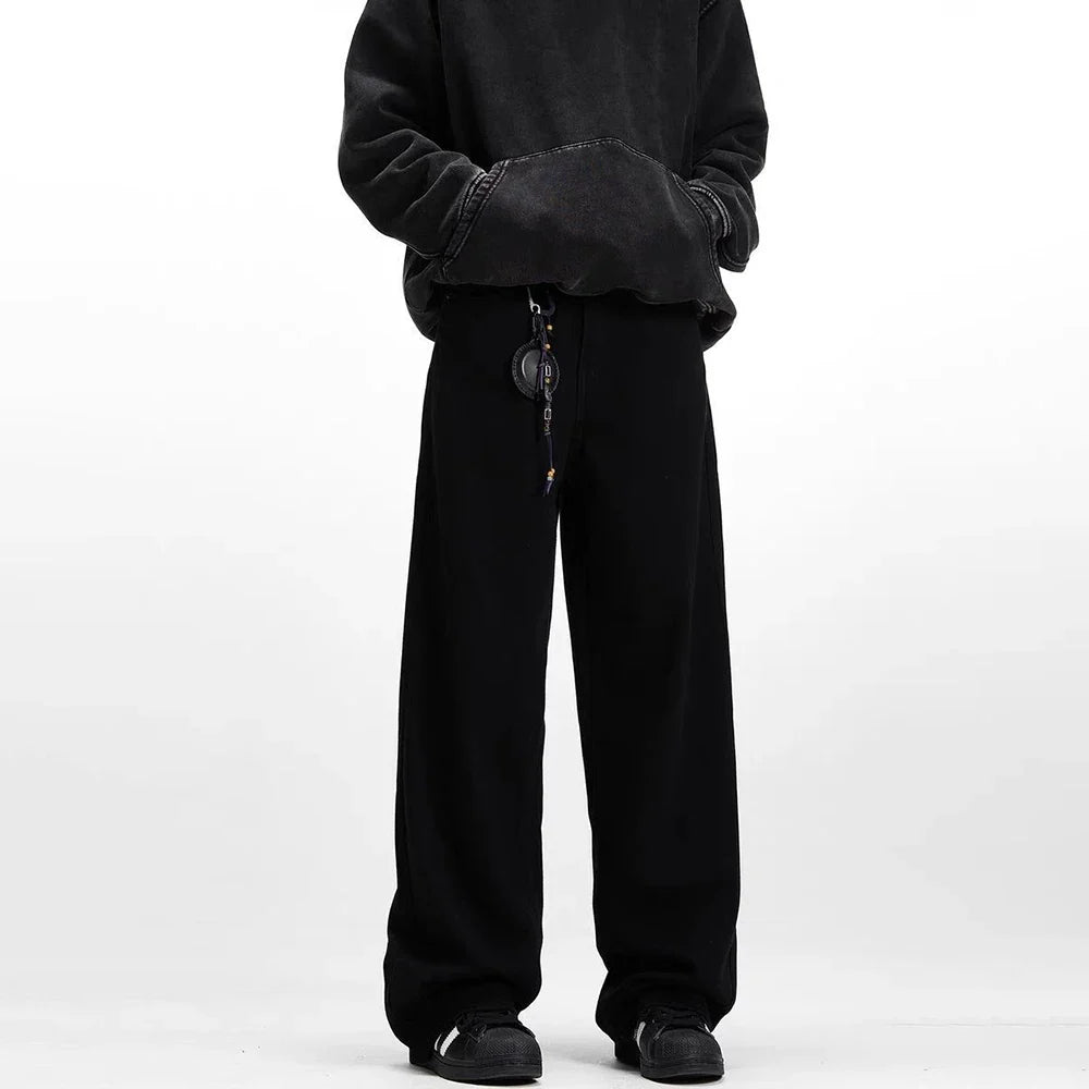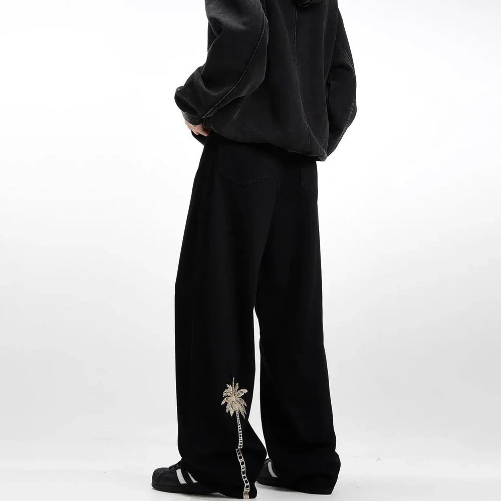 saferido Men's Autumn American Loose High-Waisted Straight-Leg Coconut Tree Embroidered Jeans Retro Simple Casual Comfort Wide-Leg Pants