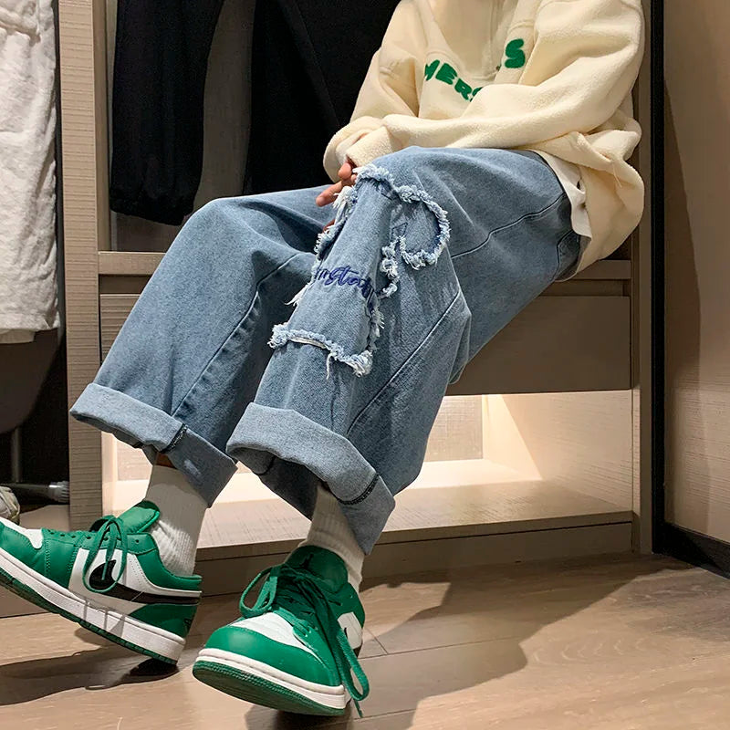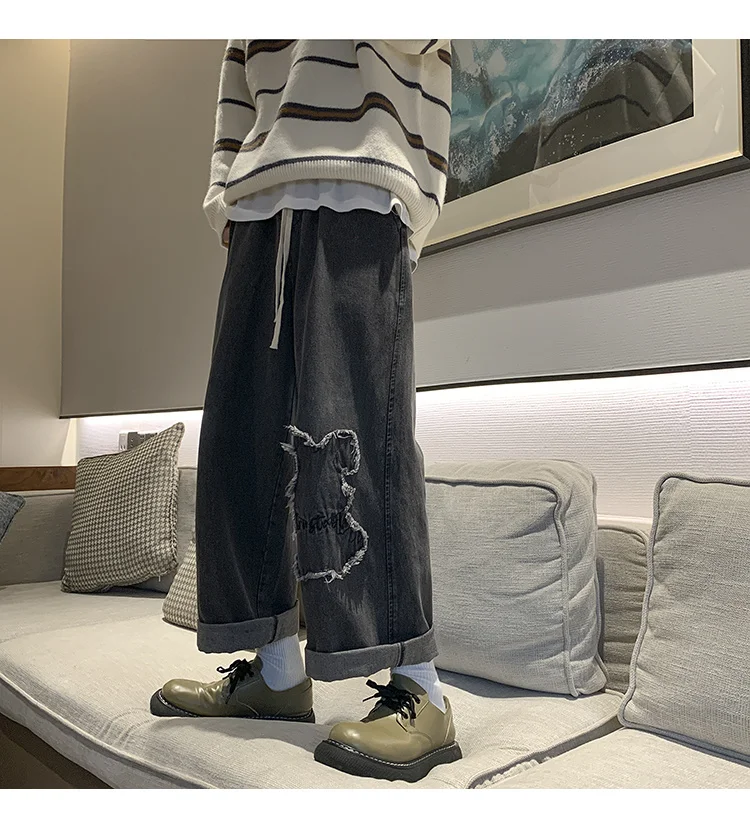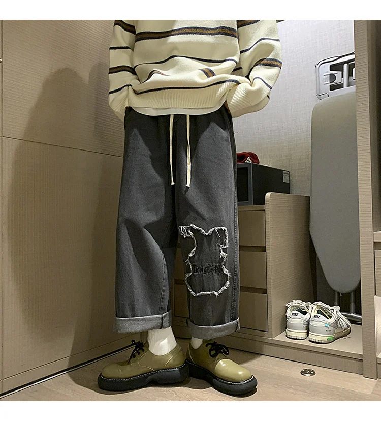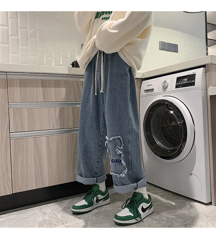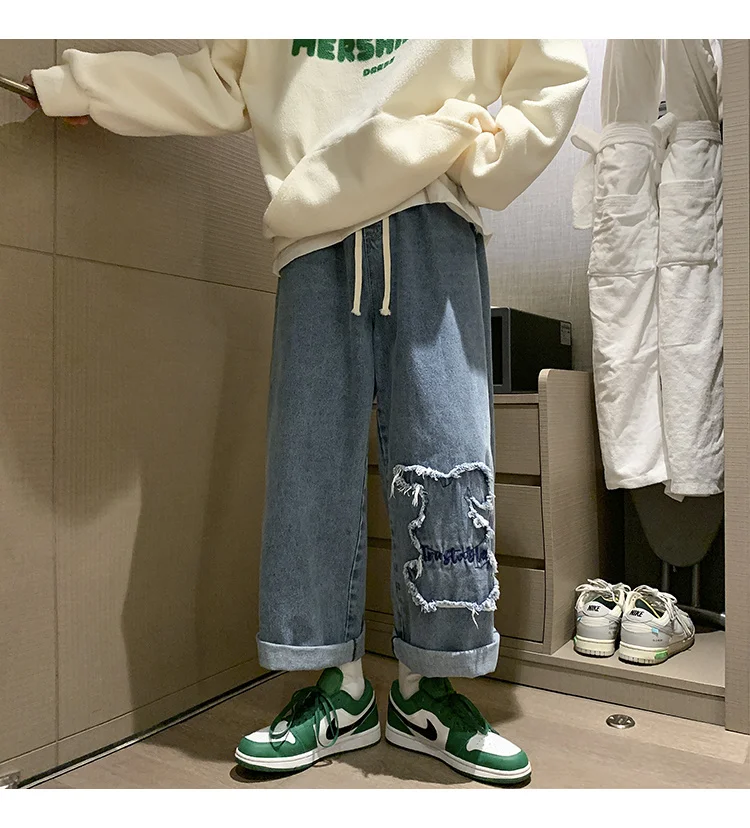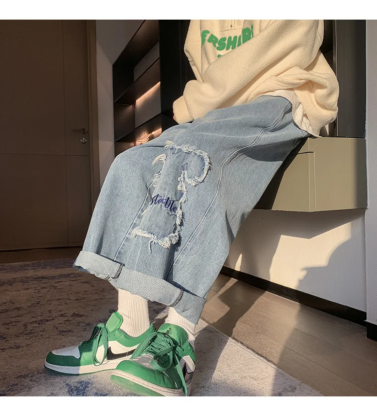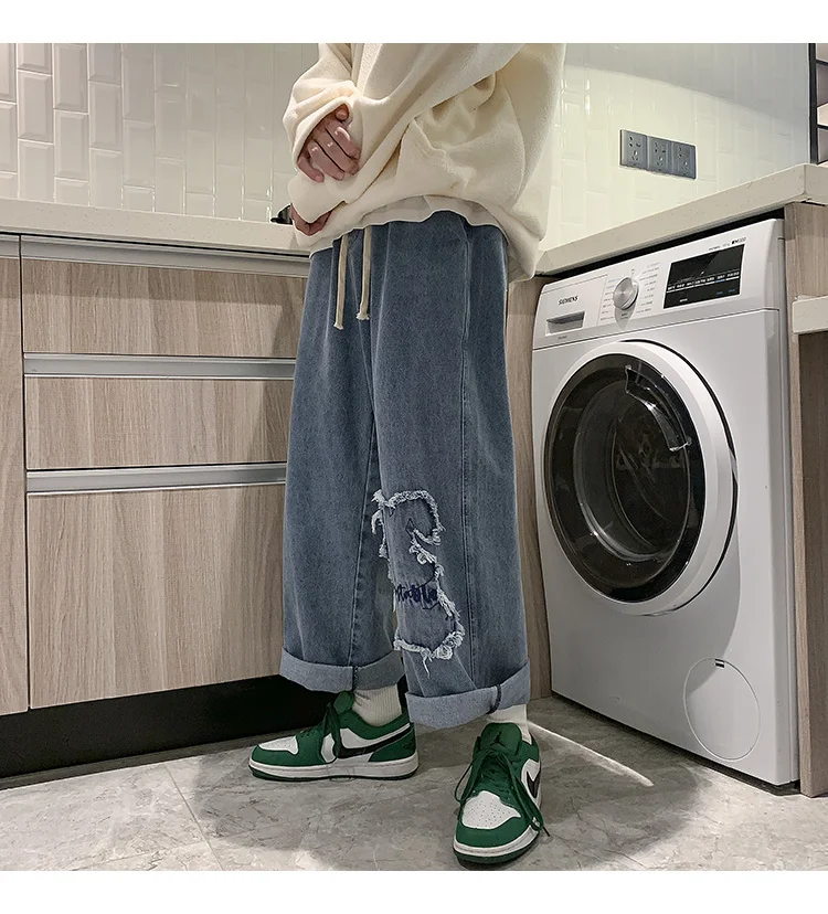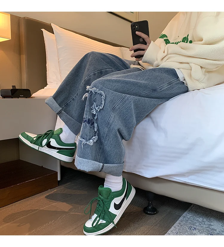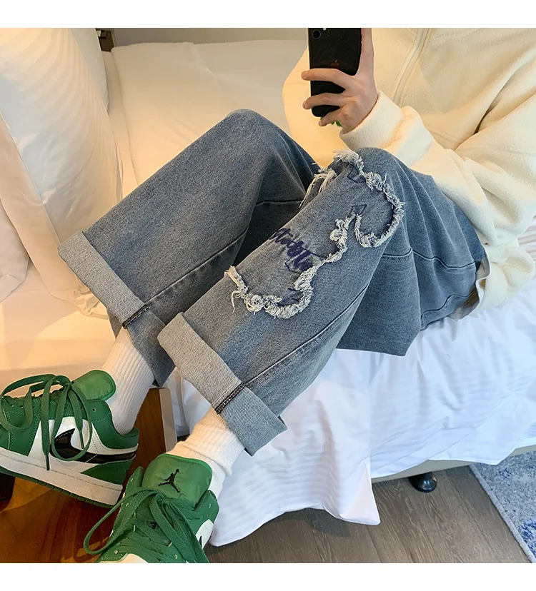 saferido Men's Baggy Homme Blue/black Color Straight Pants Cargo Pocket Printing Jeans Biker Denim Oversized Trousers Size M-5XL