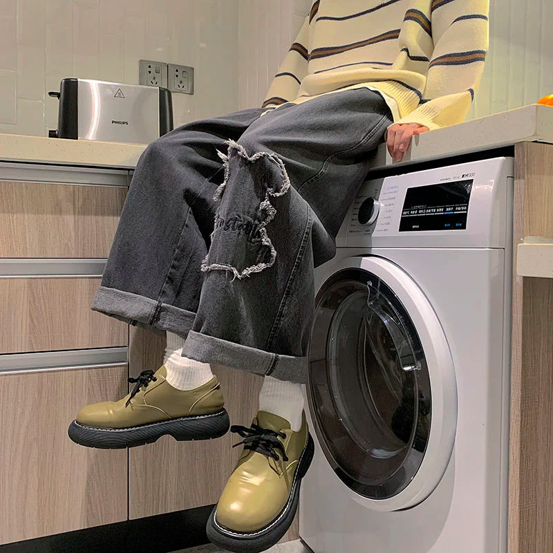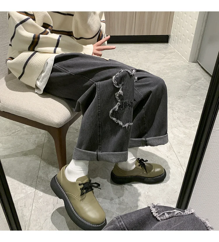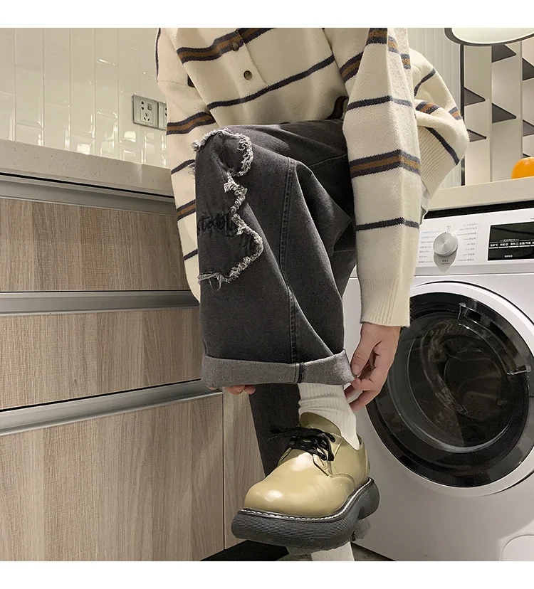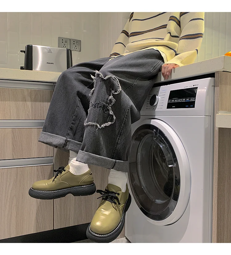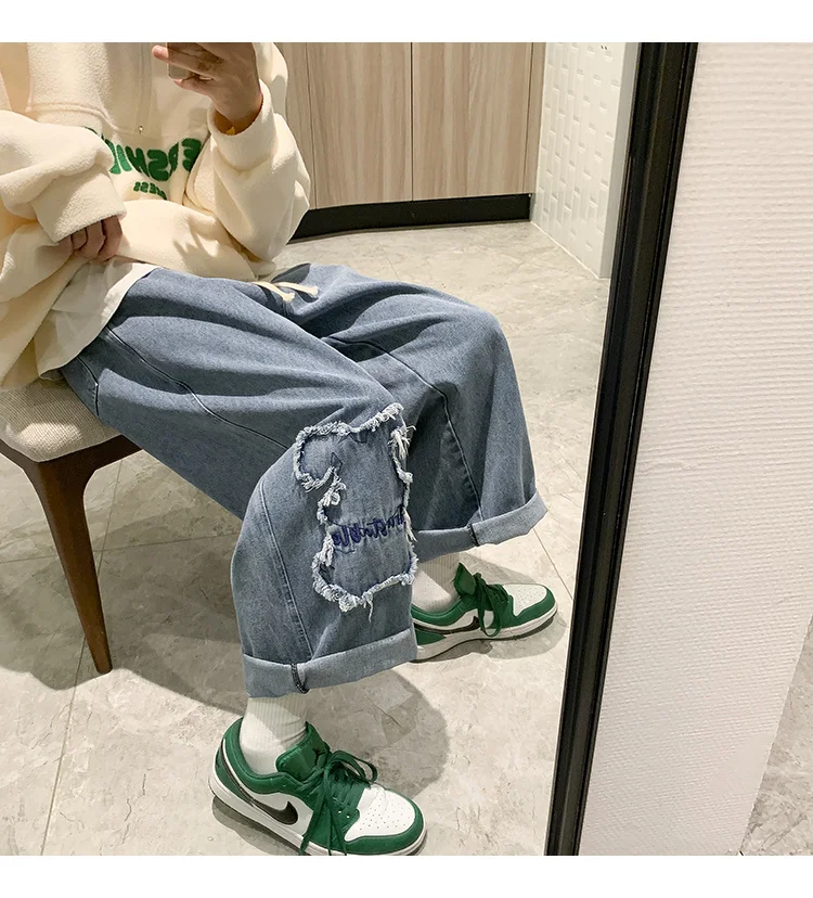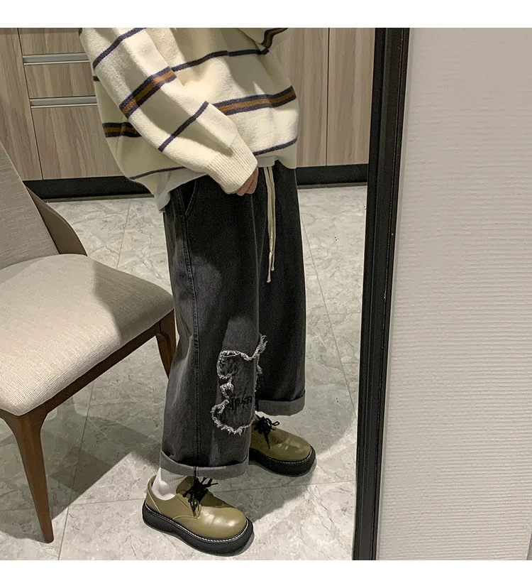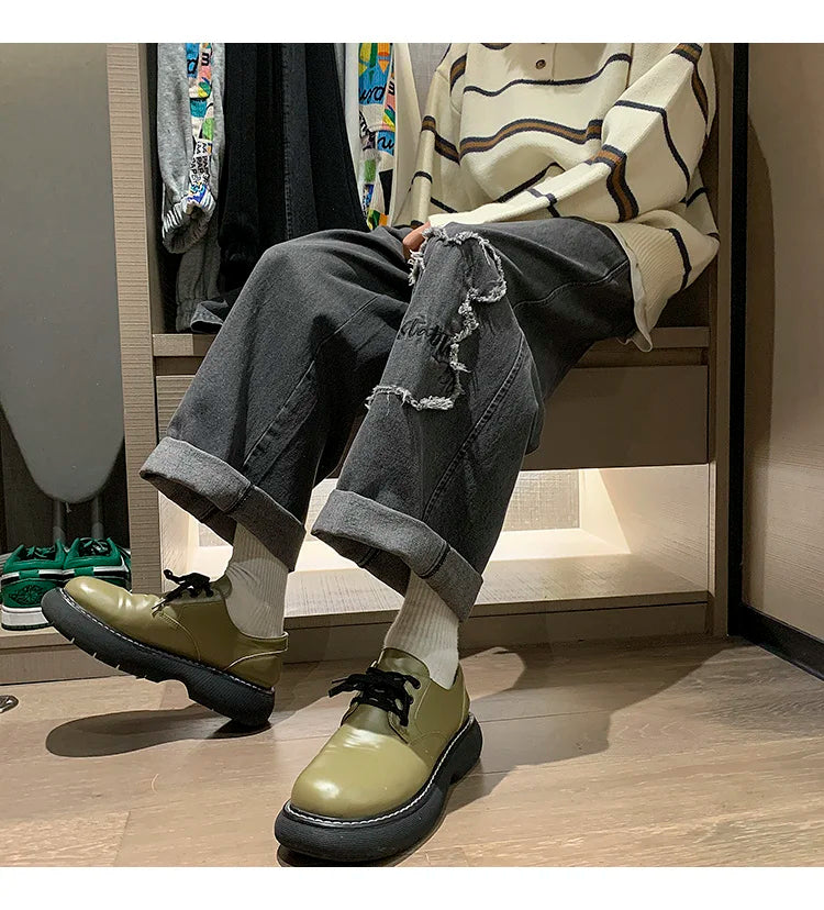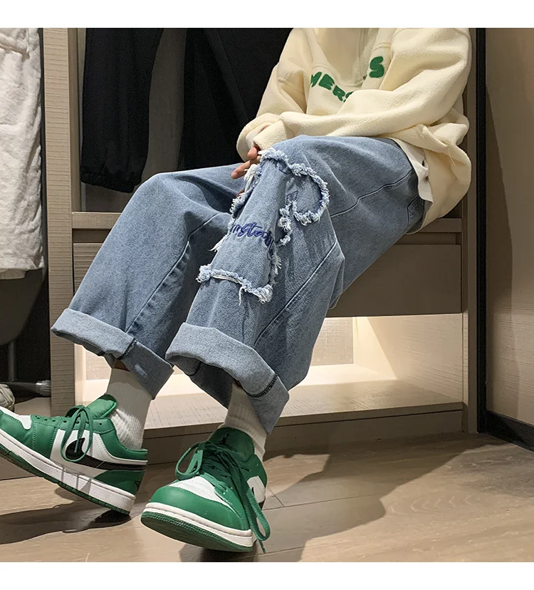 saferido Men's Baggy Homme Blue/black Color Straight Pants Cargo Pocket Printing Jeans Biker Denim Oversized Trousers Size M-5XL