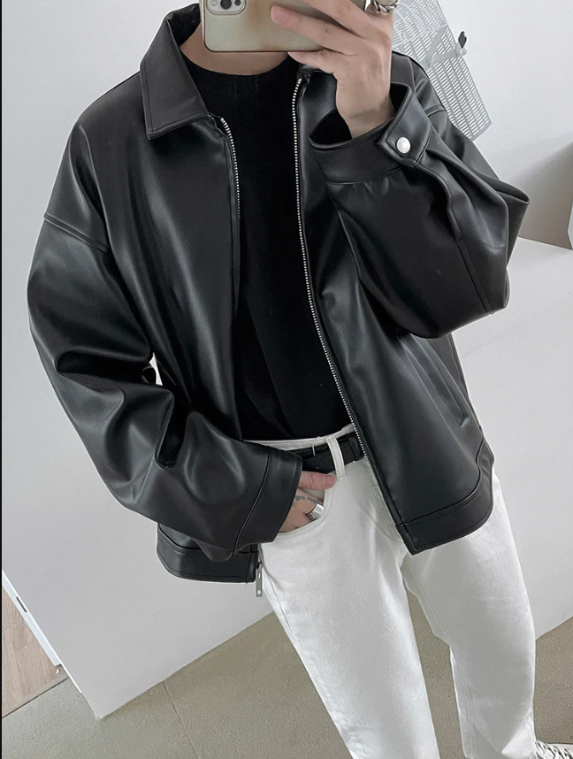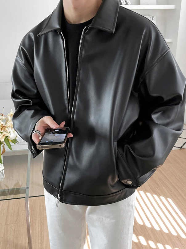 saferido Streetwear Trendy Loose-fit Leather Jacket Autumn Spring Japanese Style Casual Biker Jacket For Students Lapel Motorcycle Clothing