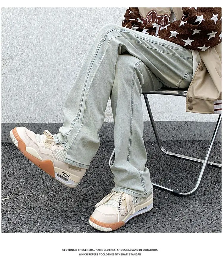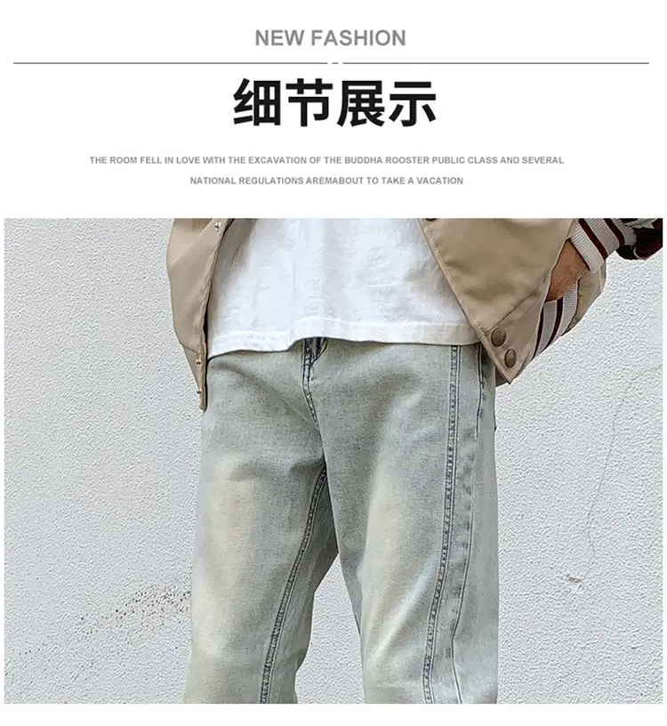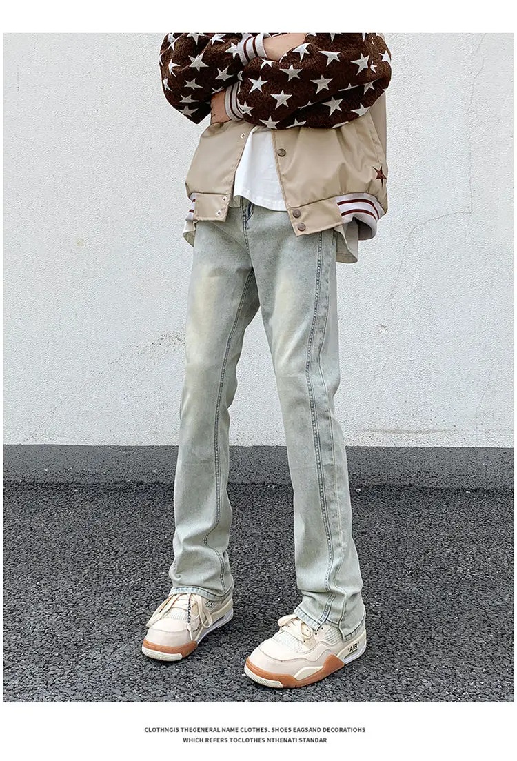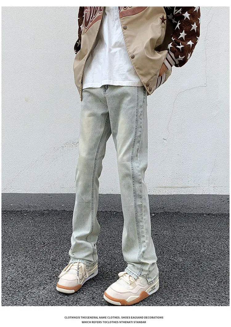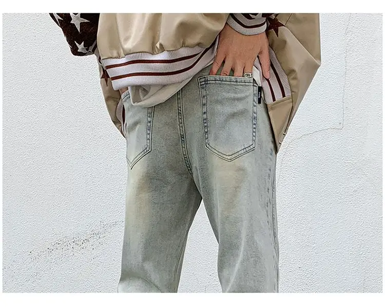 saferido Men's Blue High Street Micro La Jeans Fashion Men's Autumn New American Ruffian and Handsome Slim Long Pants