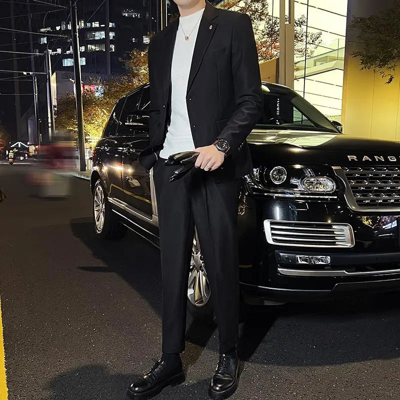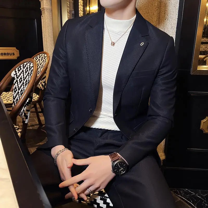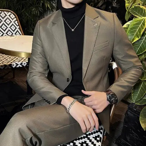 saferido Men's British Style Two-Piece Casual Suit - Slim Fit, High-End, Suit or Blazer/Trousers Sold Separately -Male Suit for Wedding