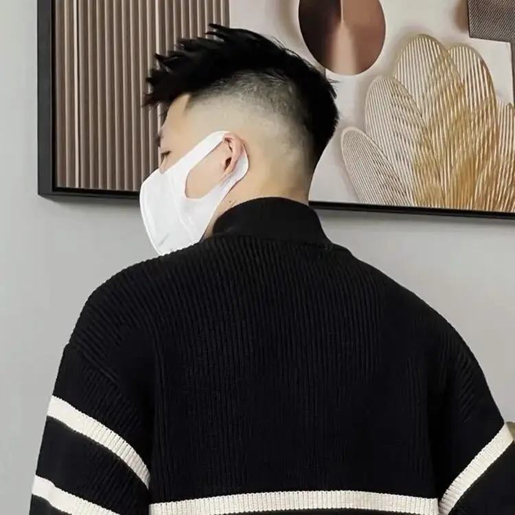 saferido Men's Business Zip-up Knit Sweater Male Coat Zipper Striped Jacket Collared Pullovers Casual T Shirt Korean Fashion Neck