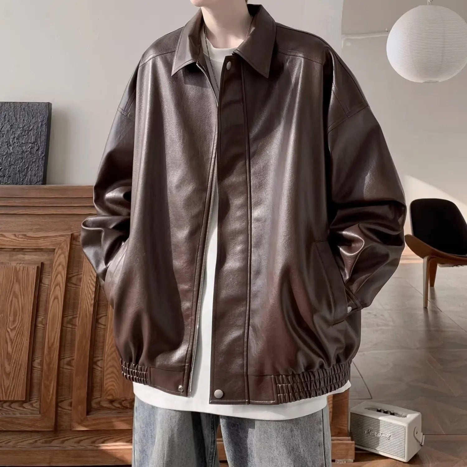 Men's Clothing Leather Jacket Korean Reviews Many Clothes Outer Spring New Motorcycle Leather Coat Casual Retro PU Rider Jacket
